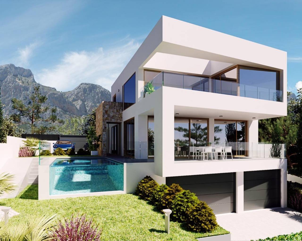 Villas independientes con vistas al mar y la montaña en parte alta de Polop, a los pies del monte Ponoig.Todas incluyen 3 dormitorios, 3 baños, salón con cocina equipada, vestidor, garaje en planta sótano, amplias terrazas, jardín y piscina privada.Construidas con excelente calidades que incluyen: pavimentos de gres porcelánico, carpintería exterior de aluminio con rotura del puente térmico y cristales dobles, puerta de entrada acorazada, armarios empotrados, cocina equipada con electrodomésticos, agua caliente mediante aerotermia, climatización por conductos, calefacción mediante suelo radiante, persianas motorizadas, domótica y sistema de alarma, chimenea decorativa con bioetanol, piscina desbordante con frontal de cristal, etc.Situadas en la zona alta de Polop, rodeadas de naturaleza, árboles, montaña y con vistas al mar. Una zona tranquila, pero bien comunicada mediante la carretera CV-70. A solo 5 minutos de las poblaciones de La Nucia y Polop, con todo tipo de comercios y servicios, y a 15 minutos de Benidorm, sus playas, y la autopista AP7 que comunica con toda la Costa Blanca.