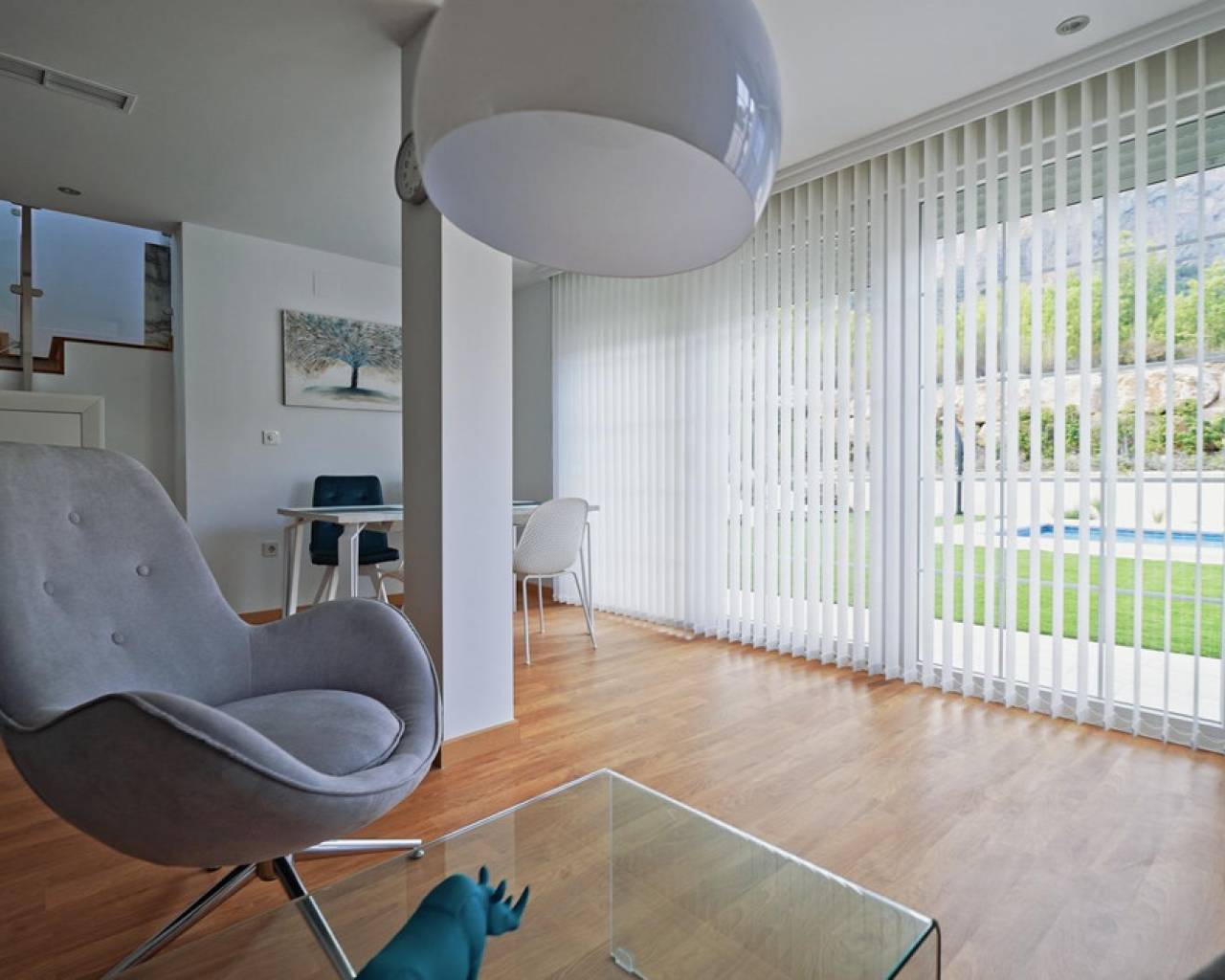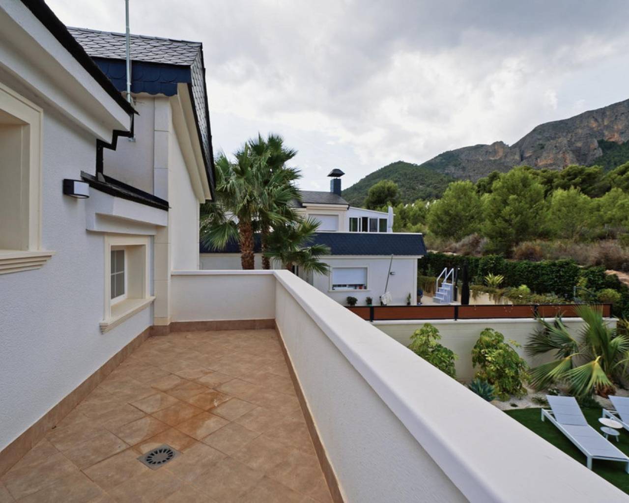 Preciosa villa de dos plantas con un diseño exquisito, una superficie de 145m2 y una ubicación envidiable que ofrece una experiencia de vida excepcional. Esta propiedad cuenta con una serie de características que la hacen destacar entre las demás, brindando comodidad, belleza y lujo a partes iguales.**Descripción de la villa:**Ubicada en una parcela de 500m2, esta villa se encuentra inmersa en un entorno natural que ofrece unas vistas impresionantes. Desde majestuosas montañas hasta frondosos bosques verdes y el inmenso mar azul, cada ventana y terraza de esta casa te regala un paisaje de postal.**Planta baja:**- Un amplio salón comedor, inundado de luz natural, con ventanales que conectan de manera fluida con el jardín. Este espacio es perfecto para el entretenimiento y la relajación.- Una cocina de diseño con una isla central y ventanas que enmarcan las vistas al valle, convirtiendo la preparación de comidas en una experiencia única.- Un dormitorio doble que ofrece comodidad y espacio.- Un baño para invitados que combina funcionalidad y estilo.- Una moderna escalera de madera que te lleva a la segunda planta.**Planta superior:**- Dos dormitorios dobles, cada uno con su propio baño en suite, lo que garantiza la privacidad y el confort de los residentes.- Una terraza que rodea prácticamente toda la villa, desde donde podrás disfrutar de vistas panorámicas de día y de noches estrelladas.**Características adicionales:**- Una despensa que proporciona espacio adicional para el almacenamiento.- Plaza de parking cubierta para proteger tu vehículo.- Equipada con placas solares y aerotermia, lo que garantiza eficiencia energética.- Aire acondicionado en todas las habitaciones, lo que permite mantener un clima agradable en cualquier temporada.- Armarios empotrados que maximizan el espacio de almacenamiento.- Persianas eléctricas para mayor comodidad y seguridad.- Electrodomésticos y muebles de diseño que añaden un toque de elegancia y sofisticación a la propiedad.El exterior de esta villa es un paraíso con una hermosa pérgola y una piscina privada de 30m2, rodeada de exuberantes jardines donde crecen árboles frutales y flores durante todo el año, gracias a un sistema de riego automático y una iluminación que realza su belleza por la noche.Esta villa representa el equilibrio perfecto entre lujo y naturaleza, ofreciendo una vida cómoda y elegante en un entorno de ensueño. Si estás buscando una residencia que satisfaga todos tus deseos y necesidades, esta es la oportunidad que estabas esperando. No dudes en ponerte en contacto con nosotros para obtener más información o programar una visita. ¡No querrás perder la oportunidad de vivir en este oasis de belleza y confort!