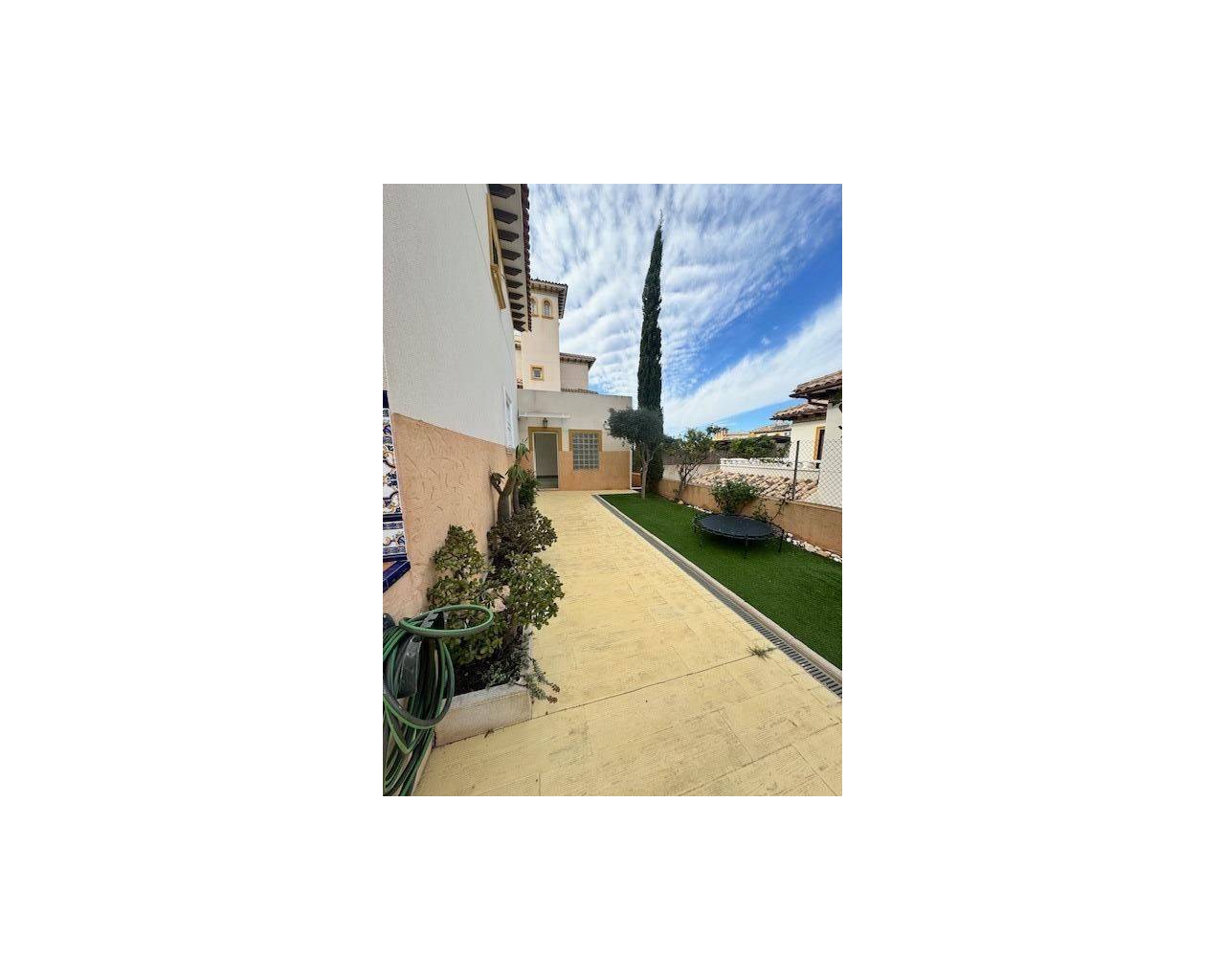 Espectacular villa situada en la zona Montezenia, Orihuela Costa. Con una superficie de 123 m2, esta propiedad cuenta con 4 habitaciones dobles y 4 habitaciones sencillas, perfectas para alojar a toda la familia o amigos. La casa ha sido completamente reformada y equipada con una cocina moderna. Su orientación suroeste permite disfrutar del sol durante todo el día. Además, ofrece extras como aire acondicionado central, armarios empotrados, piscina privada y comunitaria, sauna propia e incluso un garaje doble incluido.Además de todas estas comodidades interiores y exteriores que hacen única a esta vivienda exclusiva se pueden apreciar vistas al mar desde sus terrazas amplias donde también puedes encontrar espacio suficiente para hacer barbacoas los fines semana; Sin duda alguna es ideal tanto por dentro como por fuera.