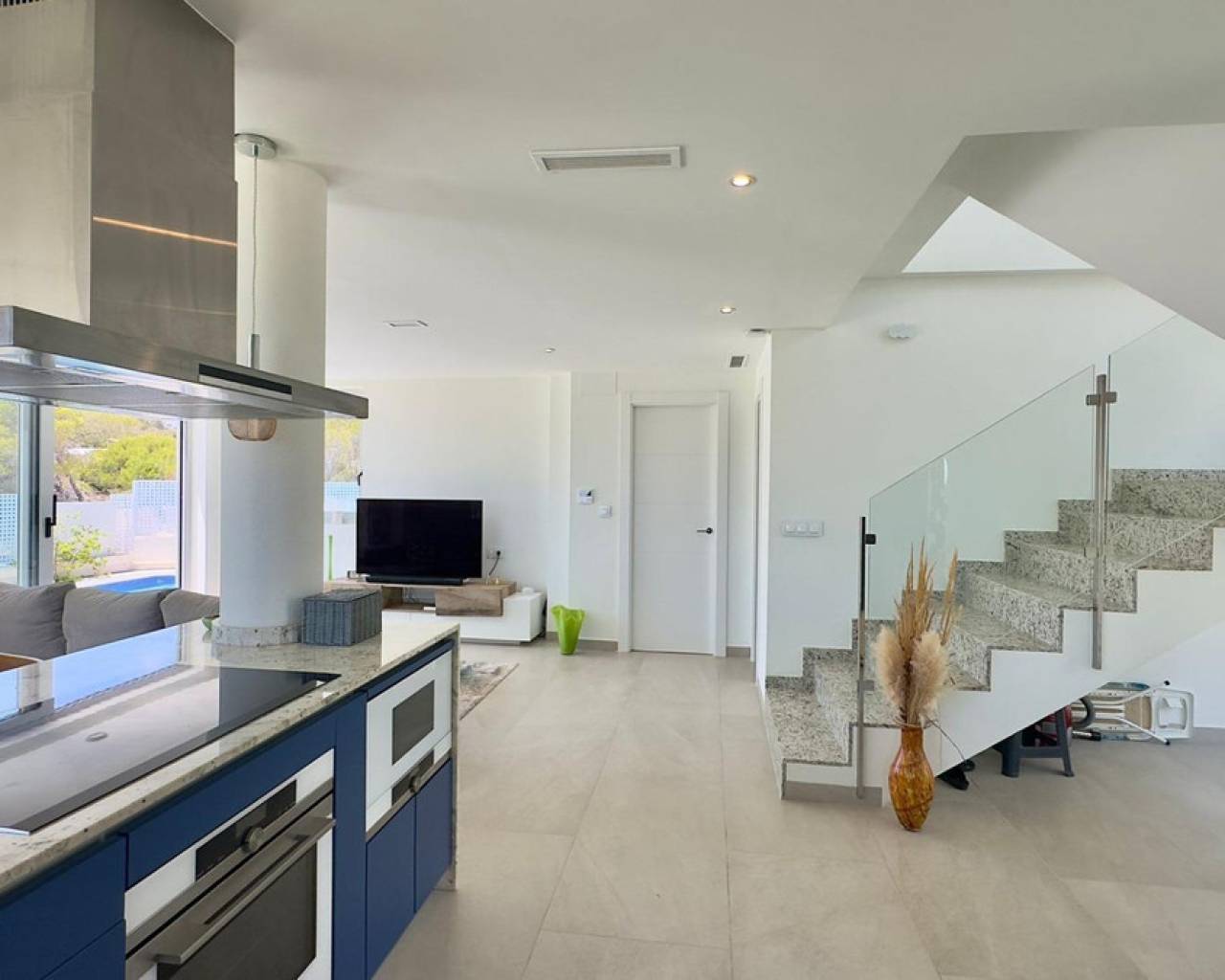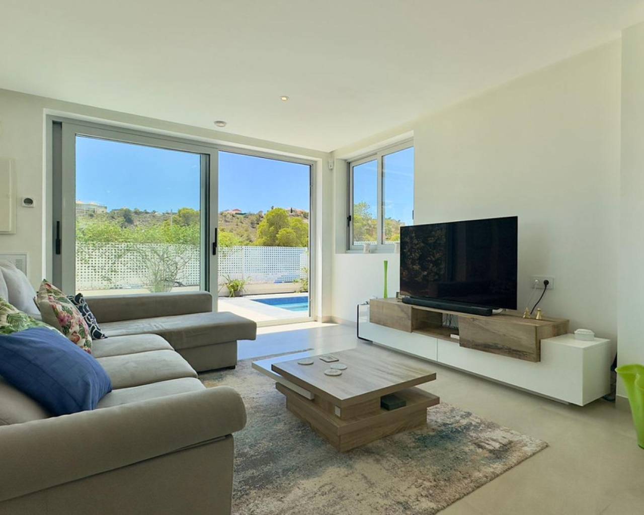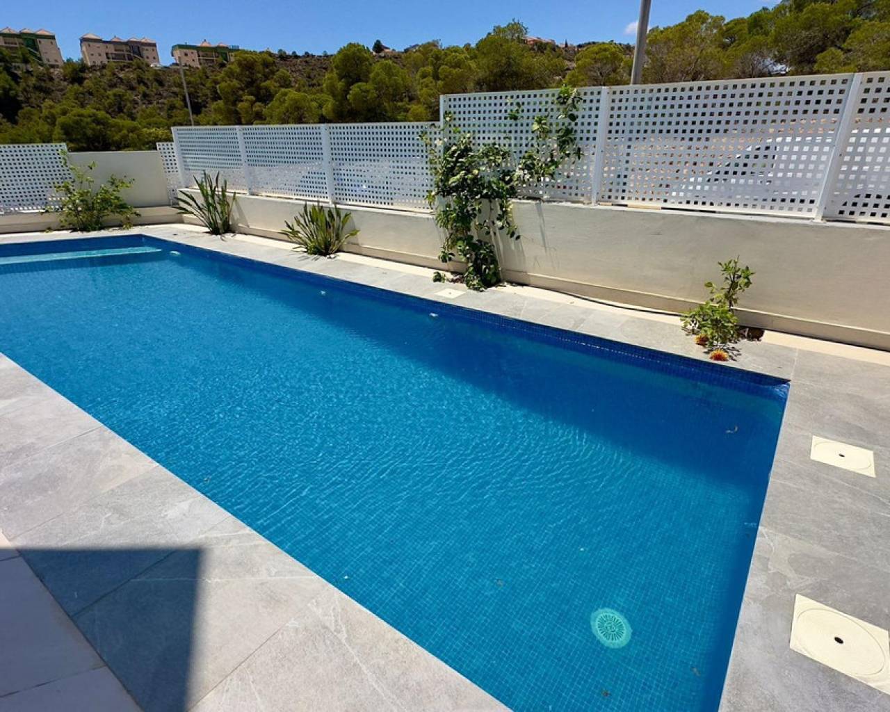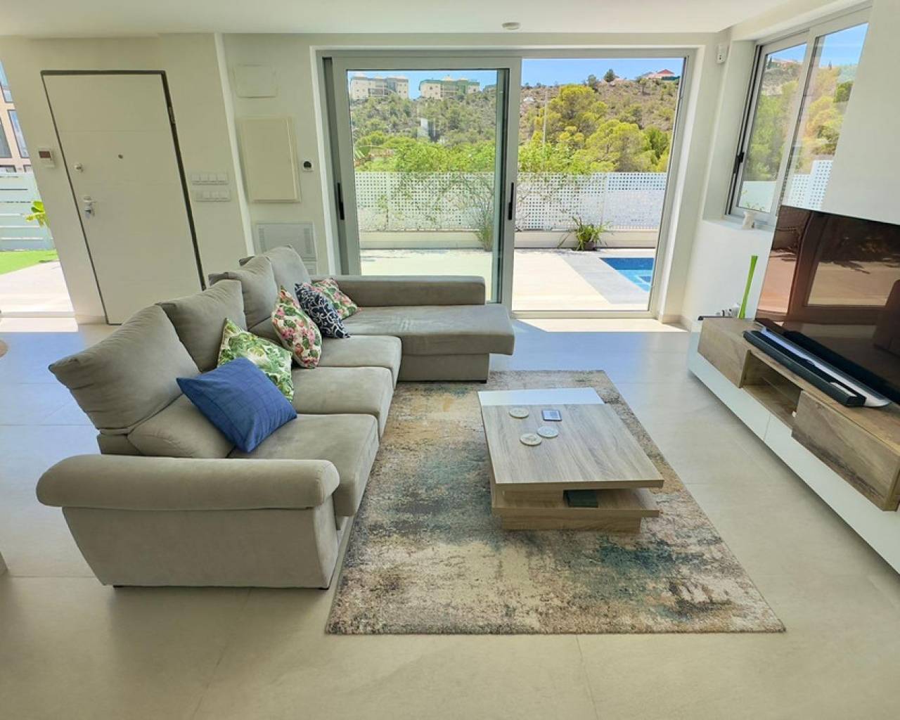 Gran Villa en Balcón de Finestrat con vistas al marDescubre esta impresionante villa de lujo, ubicada en la prestigiosa zona residencial de Balcón de Finestrat. Construida en 2022, esta propiedad ofrece lo último en diseño moderno y comodidad, con un total de 180 m² de espacio habitable y un terreno de 800 m².Tres Plantas Exquisitamente Diseñadas:Primera Planta:Un amplio y luminoso espacio perfecto para reuniones familiares y entretenimiento.Dormitorio Principal,Equipado con baño en suite, armarios empotrados y aire acondicionado. Acceso directo a una gran terraza y al jardín.Un baño adicional para comodidad de los invitados.Gran Terraza: Espacio ideal para disfrutar del aire libre y vistas panorámicas.Jardín Privado:Un hermoso jardín con una gran piscina y árboles frutales, ofreciendo un oasis de tranquilidad y privacidad.Segunda Planta: - Dos Dormitorios Master:Cada uno con baño en suite, armarios empotrados y aire acondicionado. Ambos dormitorios tienen acceso a una gran terraza con vistas impresionantes al valle, Benidorm y el mar Mediterráneo.Tercera Planta: Cuarta Habitación: Ideal para una oficina, con acceso directo al gran solárium. Este espacio es perfecto para trabajar desde casa mientras disfrutas de las vistas panorámicas.Detalles Adicionales:- Aire Acondicionado y suelos radiantes:En todos los dormitorios para asegurar el máximo confort.- Armarios Empotrados:En todas las habitaciones, proporcionando amplio espacio de almacenamiento.- Terrazas y Solárium:Múltiples terrazas y un gran solárium para disfrutar del sol y las vistas espectaculares en diferentes niveles de la villa.- Piscina y Jardín:Una gran piscina rodeada de un cuidado jardín con árboles frutales, creando un entorno perfecto para relajarse y disfrutar del estilo de vida mediterráneo.Esta villa de lujo en Balcón de Finestrat ofrece una combinación única de elegancia, comodidad y ubicación privilegiada. Con sus modernas instalaciones y vistas impresionantes, es una propiedad ideal para aquellos que buscan un hogar exclusivo en la Costa Blanca.No pierdas la oportunidad de vivir en este paraíso. Para más información o para programar una visita, no dudes en contactarnos.