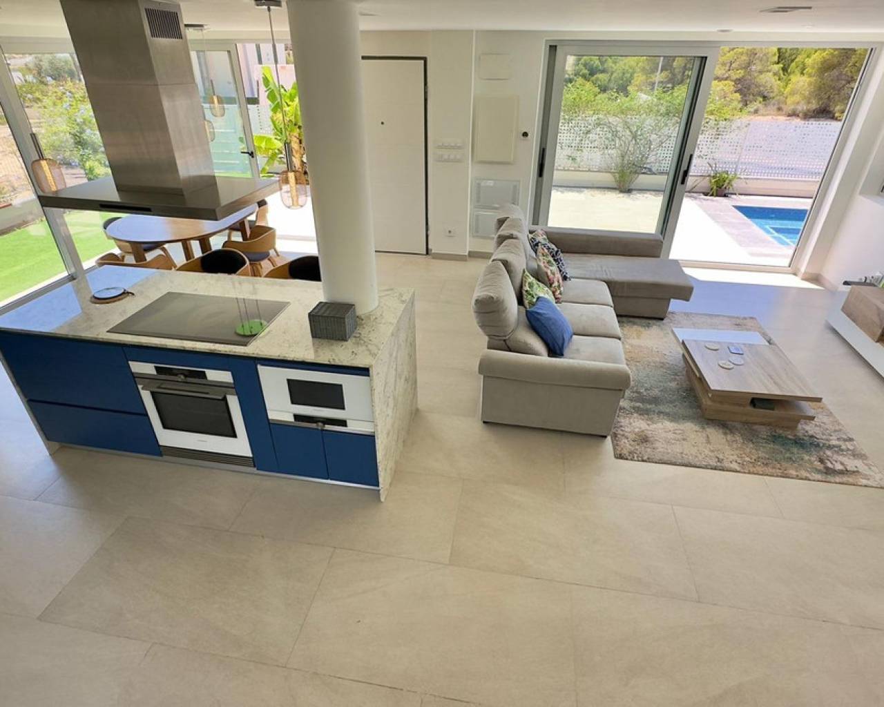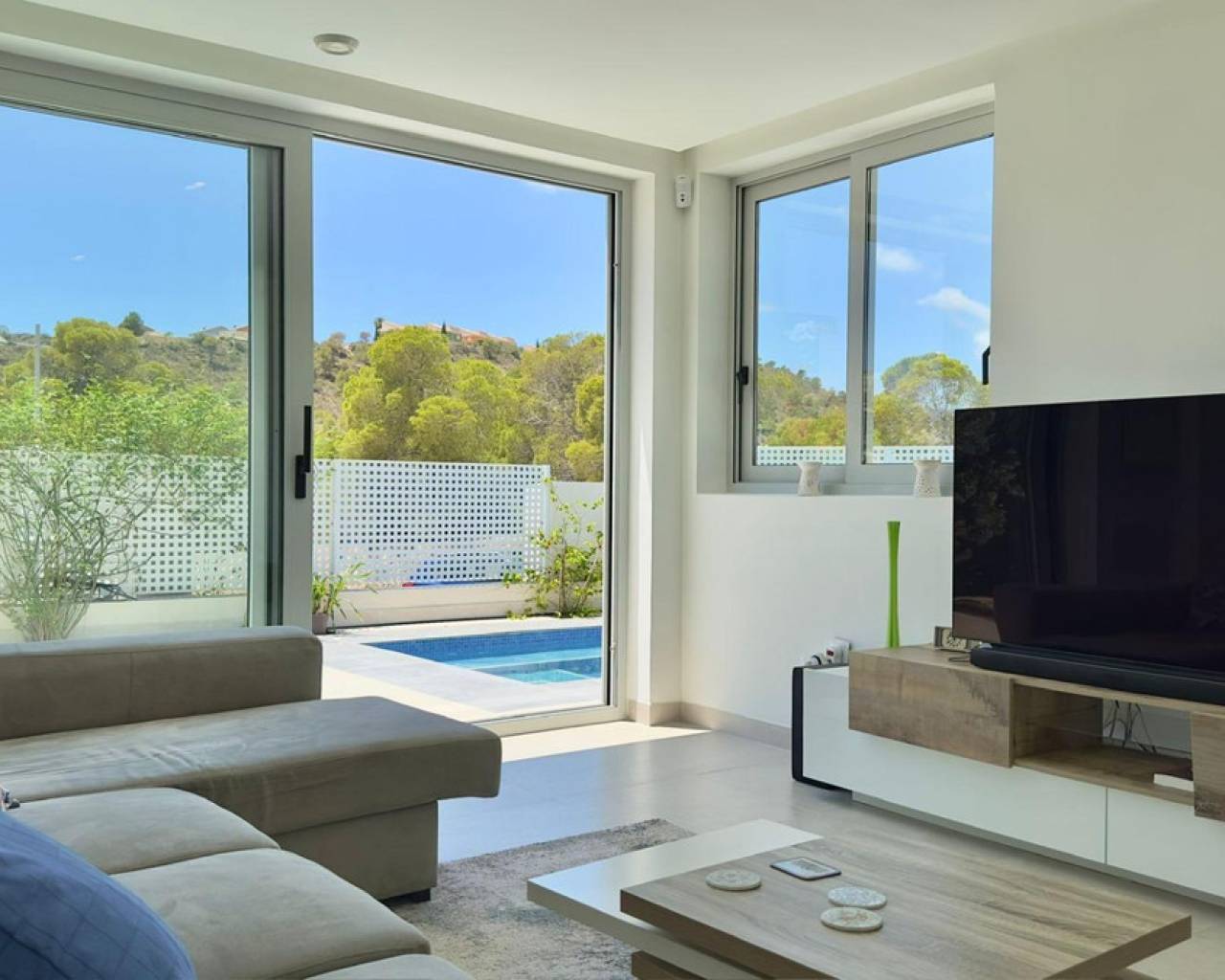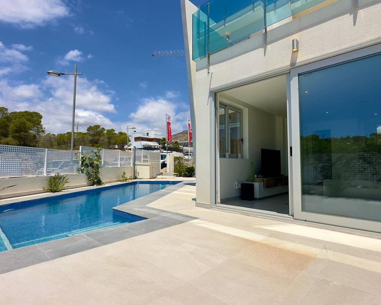 Gran Villa en Balcón de Finestrat con vistas al marDescubre esta impresionante villa de lujo, ubicada en la prestigiosa zona residencial de Balcón de Finestrat. Construida en 2022, esta propiedad ofrece lo último en diseño moderno y comodidad, con un total de 180 m² de espacio habitable y un terreno de 800 m².Tres Plantas Exquisitamente Diseñadas:Primera Planta:Un amplio y luminoso espacio perfecto para reuniones familiares y entretenimiento.Dormitorio Principal,Equipado con baño en suite, armarios empotrados y aire acondicionado. Acceso directo a una gran terraza y al jardín.Un baño adicional para comodidad de los invitados.Gran Terraza: Espacio ideal para disfrutar del aire libre y vistas panorámicas.Jardín Privado:Un hermoso jardín con una gran piscina y árboles frutales, ofreciendo un oasis de tranquilidad y privacidad.Segunda Planta: - Dos Dormitorios Master:Cada uno con baño en suite, armarios empotrados y aire acondicionado. Ambos dormitorios tienen acceso a una gran terraza con vistas impresionantes al valle, Benidorm y el mar Mediterráneo.Tercera Planta: Cuarta Habitación: Ideal para una oficina, con acceso directo al gran solárium. Este espacio es perfecto para trabajar desde casa mientras disfrutas de las vistas panorámicas.Detalles Adicionales:- Aire Acondicionado y suelos radiantes:En todos los dormitorios para asegurar el máximo confort.- Armarios Empotrados:En todas las habitaciones, proporcionando amplio espacio de almacenamiento.- Terrazas y Solárium:Múltiples terrazas y un gran solárium para disfrutar del sol y las vistas espectaculares en diferentes niveles de la villa.- Piscina y Jardín:Una gran piscina rodeada de un cuidado jardín con árboles frutales, creando un entorno perfecto para relajarse y disfrutar del estilo de vida mediterráneo.Esta villa de lujo en Balcón de Finestrat ofrece una combinación única de elegancia, comodidad y ubicación privilegiada. Con sus modernas instalaciones y vistas impresionantes, es una propiedad ideal para aquellos que buscan un hogar exclusivo en la Costa Blanca.No pierdas la oportunidad de vivir en este paraíso. Para más información o para programar una visita, no dudes en contactarnos.