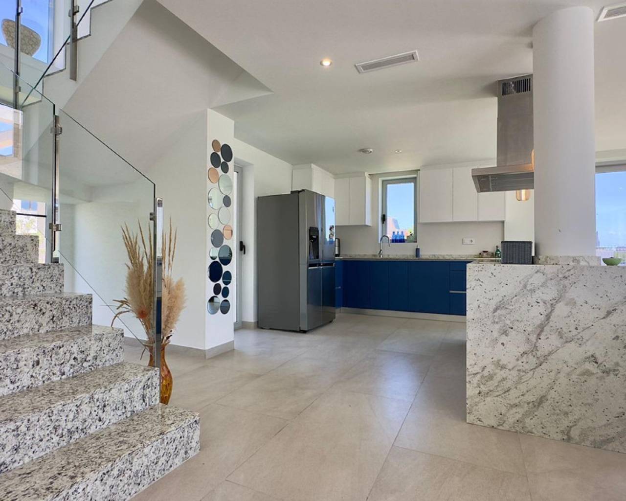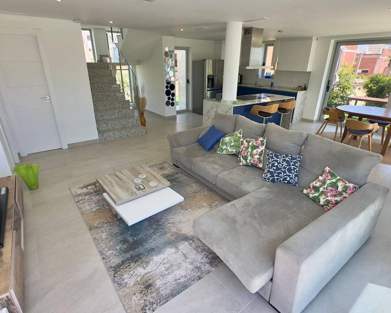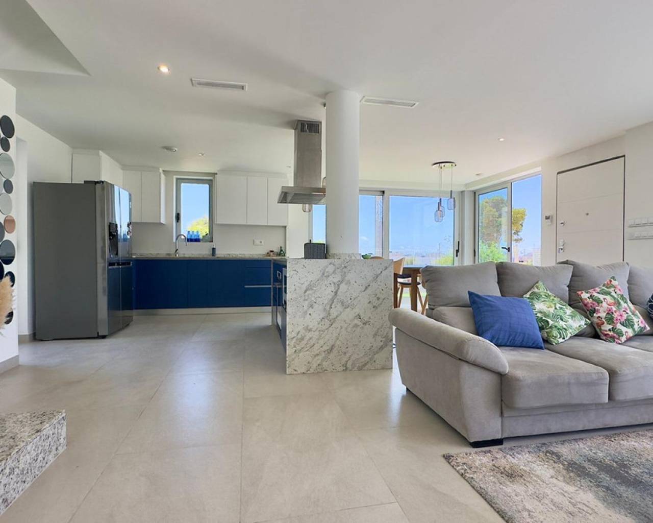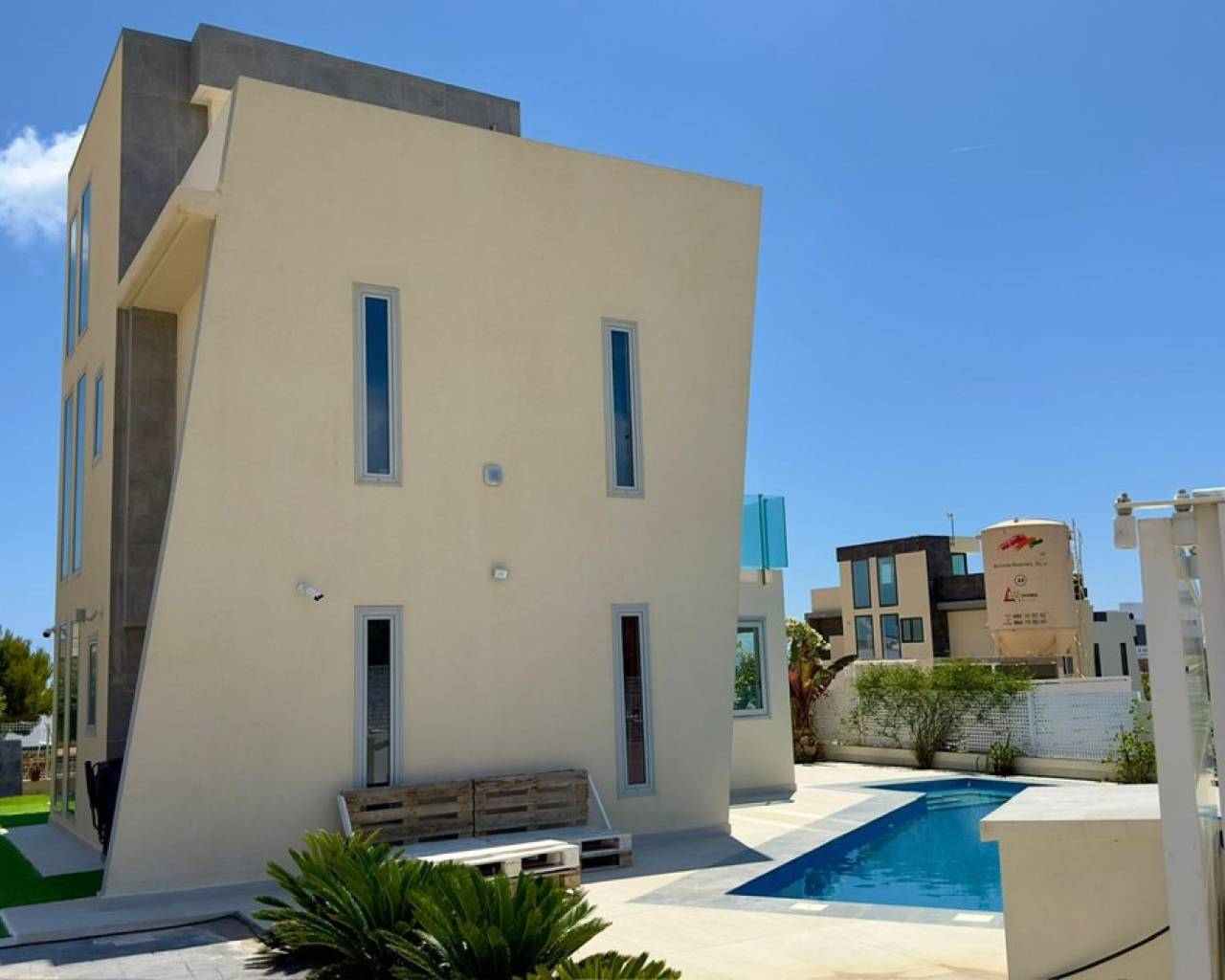 Gran Villa en Balcón de Finestrat con vistas al marDescubre esta impresionante villa de lujo, ubicada en la prestigiosa zona residencial de Balcón de Finestrat. Construida en 2022, esta propiedad ofrece lo último en diseño moderno y comodidad, con un total de 180 m² de espacio habitable y un terreno de 800 m².Tres Plantas Exquisitamente Diseñadas:Primera Planta:Un amplio y luminoso espacio perfecto para reuniones familiares y entretenimiento.Dormitorio Principal,Equipado con baño en suite, armarios empotrados y aire acondicionado. Acceso directo a una gran terraza y al jardín.Un baño adicional para comodidad de los invitados.Gran Terraza: Espacio ideal para disfrutar del aire libre y vistas panorámicas.Jardín Privado:Un hermoso jardín con una gran piscina y árboles frutales, ofreciendo un oasis de tranquilidad y privacidad.Segunda Planta: - Dos Dormitorios Master:Cada uno con baño en suite, armarios empotrados y aire acondicionado. Ambos dormitorios tienen acceso a una gran terraza con vistas impresionantes al valle, Benidorm y el mar Mediterráneo.Tercera Planta: Cuarta Habitación: Ideal para una oficina, con acceso directo al gran solárium. Este espacio es perfecto para trabajar desde casa mientras disfrutas de las vistas panorámicas.Detalles Adicionales:- Aire Acondicionado y suelos radiantes:En todos los dormitorios para asegurar el máximo confort.- Armarios Empotrados:En todas las habitaciones, proporcionando amplio espacio de almacenamiento.- Terrazas y Solárium:Múltiples terrazas y un gran solárium para disfrutar del sol y las vistas espectaculares en diferentes niveles de la villa.- Piscina y Jardín:Una gran piscina rodeada de un cuidado jardín con árboles frutales, creando un entorno perfecto para relajarse y disfrutar del estilo de vida mediterráneo.Esta villa de lujo en Balcón de Finestrat ofrece una combinación única de elegancia, comodidad y ubicación privilegiada. Con sus modernas instalaciones y vistas impresionantes, es una propiedad ideal para aquellos que buscan un hogar exclusivo en la Costa Blanca.No pierdas la oportunidad de vivir en este paraíso. Para más información o para programar una visita, no dudes en contactarnos.