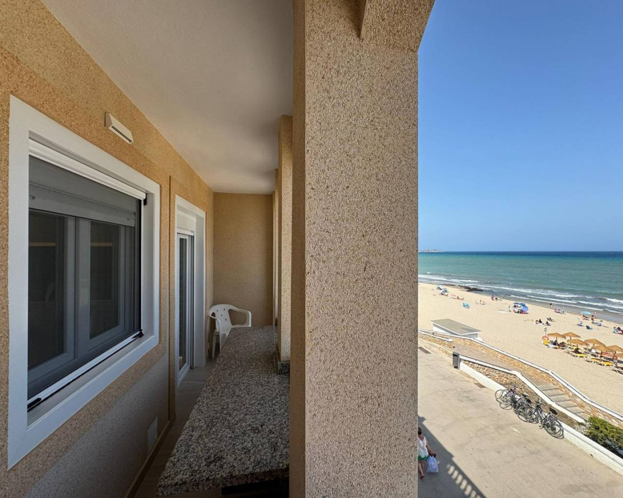 Descubre este magnífico ático ubicado en Pilar de la Horadada, dentro de la encantadora zona de La Torre de la Horadada. Con una superficie construida de 57 m² y situado a tan solo 10 metros (¡sí, has leído bien!) de las hermosas playas mediterráneas y la de Mil Palmeras es una de las mas prestigiosas!, Esta propiedad es el refugio perfecto para disfrutar del sol y el mar. El inmueble cuenta con dos acogedoras habitaciones con muebles hechos a medida y lacados en blanco , y zona office para el ordenador en una de ellas.Tambien un baño moderno que ha sido reformado recientemente. Su cocina completamente equipada con todos los electrodomesticos de marca Boch ,¡y Siemens, te permitirá preparar tus platos favoritos mientras disfrutas vistas al mar .Entre sus numerosas características destacan los suelos porcelánicos que aportan elegancia al ambiente; así como carpintería exterior con doble cristal para mayor aislamiento térmico y acústico. Además, dispone de aire acondicionado central frío/calor garantizando tu confort durante todo el año.Los armarios empotrados hechos a medida ofrecen soluciones prácticas sin sacrificar espacio ni estilo; además se vende amueblado y con todo a estrenar lo cual facilita mudarte inmediatamente sin preocupaciones adicionales por decoración o compra.El acceso al edificio incluye áreas comunes tales como un espectacular solárium desde donde podrás admirar impresionantes vistas al mar cuando quieras , y desde donde tienes el primer acceso a la vivienda , asi como ha tu propio armario que funciona como trastero para guardar lo que necesites .Mientras que si vienes desde la playa podras subir dos plantas en escaleras hasta el atico Ubicado cerca de centros comerciales vitales,cercanos colegios ,centros médicos,puntos estratégicos transporte público facilitando desplazamientos diarios . Los gastos mensuales son asequibles sumando solamente €20 comunidad -una oportunidad inmejorable- ¿qué más necesitas? No esperes más e invierte hoy mismo aquí!