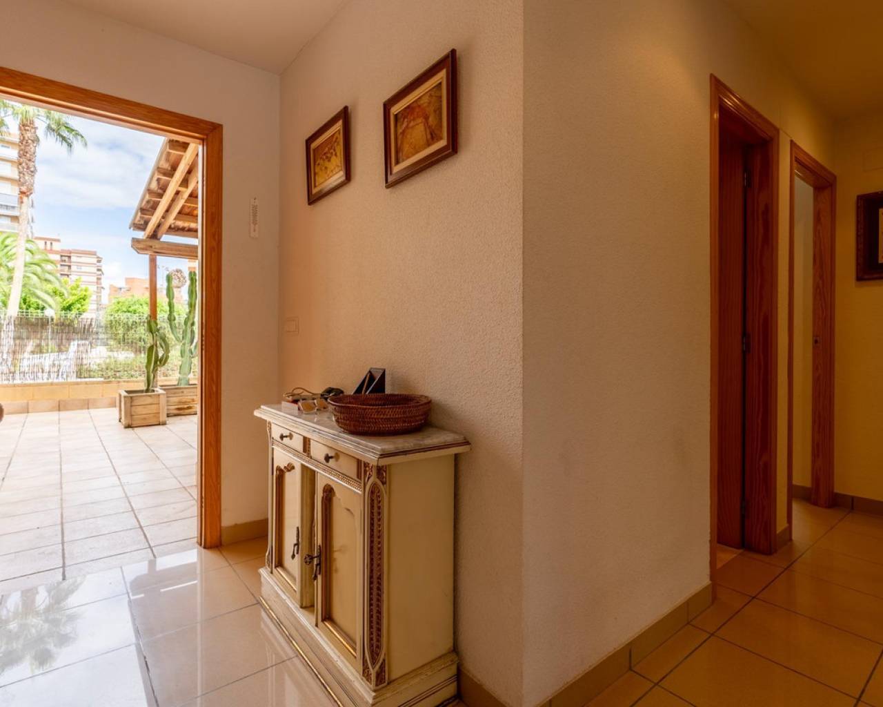 Excelente apartamento en venta en edificio de 12 apartamentos, en planta baja con gran parcela propia a 100 metros de la mejor playa de la Costa Blanca - San Juan. Vivienda de 109 metros cuadrados con tres dormitorios, amplio salón, dos cuartos de baños -uno incorporado al dormitorio principal-, hall de entrada y una cocina con galería cubierta para la lavadora y secadora. La vivienda es toda exterior -bordeada por la gran terraza- excepto la pared medianera del salón y de la cocina. La parcela tiene 102 metros cuadrados y un jardín de 17 metros de uso exclusivo, junto a otra terraza que comunica con el salón de la vivienda a la que se le puede incorporar de manera fácil.La vivienda está ubicada a menos de cien pasos de la playa de Muchavista y cuenta con dos servicios de transporte que facilitan el desplazamiento a Alicante y otras ciudades de las costa: el Tram con la parada de Carrabiners -a 100 metros- y un autobús urbano en la misma puerta del edificio que comunica con el Mercado Central de Alicante, la Plaza de los Luceros y la estación del AVE.Muy cerca hay todo lo necesario para una vida cómoda: farmacias 24 horas, supermercados, restaurantes, guarderías y colegios. El centro de Alicante está a 30 minutos en coche.El apartamento es perfecto tanto para vivienda permanente como para vacaciones.