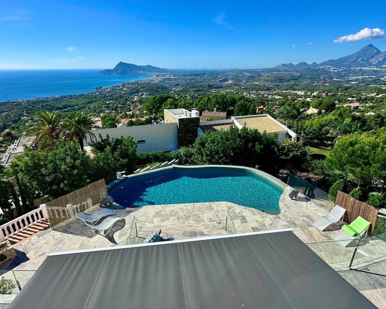 Elegante Villa con Vistas al Mar y Altea la Vella ????✨Esta impresionante villa de 380 m² construidos sobre una parcela de 2.200 m² se encuentra en una de las zonas más exclusivas de Altea la Vella, ofreciendo unas vistas espectaculares al mar y al valle de Altea desde cualquier ángulo. ????️????La propiedad está distribuida en dos plantas y cuenta con: - 3 amplios dormitorios, perfectos para el descanso. - Un despacho para trabajar desde casa con estilo. - Una gran cocina totalmente equipada. - Un salón-comedor espacioso con chimenea, ideal para reuniones familiares o momentos de relax. La villa dispone de varias terrazas que invitan a disfrutar del aire libre y de una piscina climatizada para disfrutarla durante todo el año. Además, cuenta con espacios adicionales como cuartos de lavandería, galería y almacén, y ofrece la posibilidad de añadir más habitaciones si se desea.Entre sus características destacan los suelos radiantes en toda la casa para mayor confort, placas solares para eficiencia energética, y un garaje para 3 coches más espacio para aparcar otros 4 vehículos. ????????????El jardín, con diseño exquisito, rodea la propiedad, mientras que la entrada cuenta con puerta automática para mayor comodidad y seguridad. Todo en esta villa ha sido diseñado con un gusto excepcional, ofreciendo la combinación perfecta de lujo, confort y estilo. ✨????Una oportunidad única para disfrutar de una vida de ensueño con las mejores vistas al Mediterráneo y a un paso de la naturaleza y la tranquilidad de Altea la Vella.
