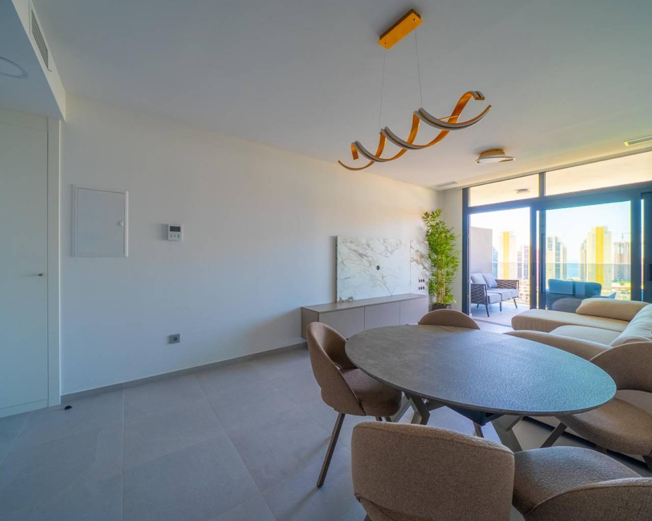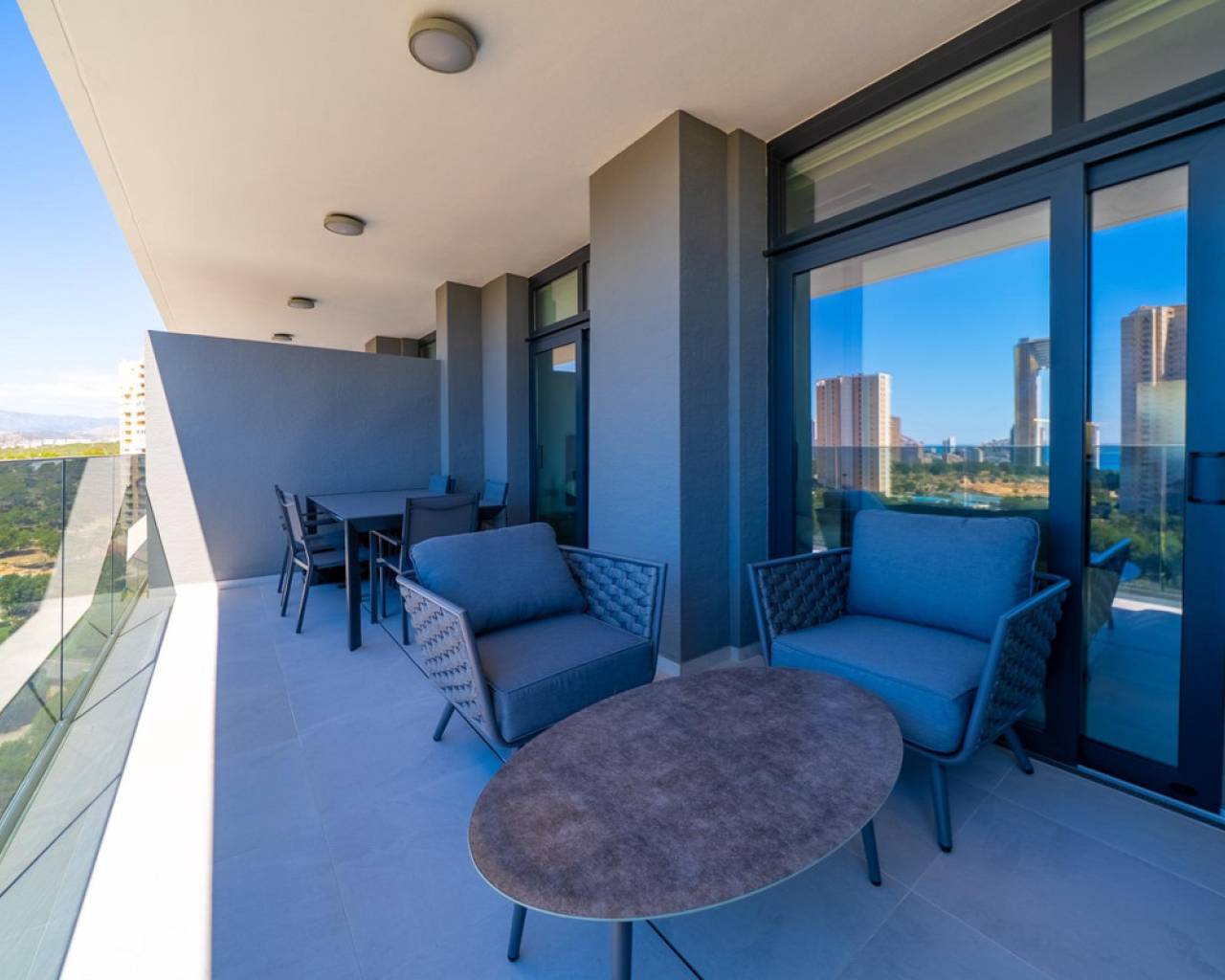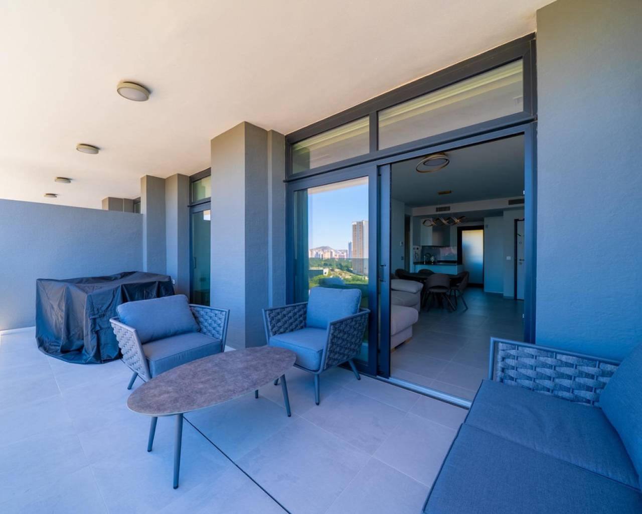 Una vivienda ideal en el moderno complejo residencial Eagle Tower, ubicado en una de las zonas más prestigiosas y en crecimiento de Benidorm.???? UBICACIÓN:Situado junto al campo de golf, rodeado de naturaleza y con fácil acceso a todos los servicios: colegios, supermercados, restaurantes y transporte público. Una de las mejores playas de Benidorm está a solo unos minutos en coche.⸻???? CARACTERÍSTICAS PRINCIPALES:•???? 2 dormitorios espaciosos•???? 2 baños completos•???? Terraza panorámica con vistas espectaculares al mar, a la ciudad de Benidorm y a las montañas•???? Situado en la 8ª planta de un edificio moderno con ascensor•???? Totalmente amueblado – muebles modernos incluidos en el precio•???? Excelente orientación y mucha luz natural•???? Todo absolutamente nuevo, listo para entrar a vivir⸻???? ZONAS COMUNES DEL COMPLEJO:•????♂️ Piscina al aire libre•???? Zona infantil de juegos•???? Pista de pádel•????️ Zona deportiva al aire libre•???? Áreas ajardinadas y zonas de descanso•???? Videovigilancia y control de acceso⸻Este apartamento es la combinación perfecta de estilo, comodidad y funcionalidad. Ideal tanto para residencia habitual como para vacaciones o inversión.???? Contáctanos para más información o para concertar una visita.