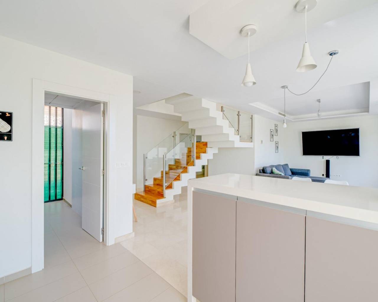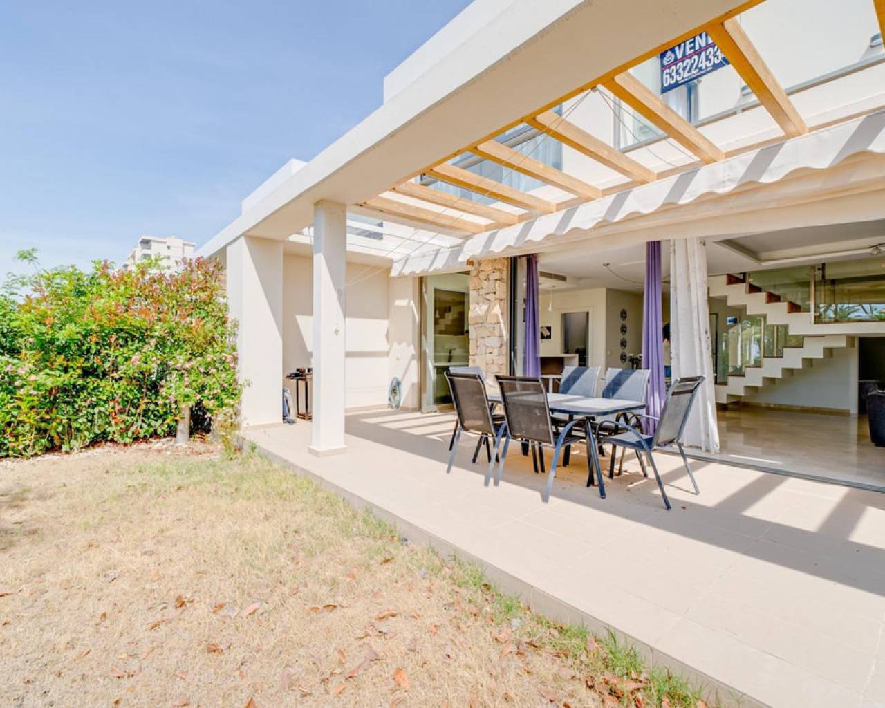 Adosado en primera línea de playa en VillajoyosaEste encantador adosado se encuentra a tan solo 50 metros de las aguas cristalinas de la mejor playa de Villajoyosa, "Paradiso". Con una superficie total de 156,02 metros cuadrados, se distribuye en dos plantas y jardín.En la planta baja, encontrará un amplio y luminoso salón-comedor, una cocina totalmente equipada con isla, dos dormitorios y un baño. Además, hay una terraza de 30 metros cuadrados, perfecta para disfrutar de comidas y reuniones al aire libre.Arriba, hay otro dormitorio con grandes ventanales y un baño en suite. Además, una terraza de 46 metros cuadrados ofrece impresionantes vistas al mar, ideal para disfrutar del amanecer y el atardecer.Esta casa adosada también viene con un garaje y un trastero para su comodidad. La urbanización dispone de acceso privado a la playa y varias piscinas, zonas verdes y seguridad 24 horas para la tranquilidad de los residentes. No pierdas esta oportunidad de poseer un pedazo de paraíso en Villajoyosa.