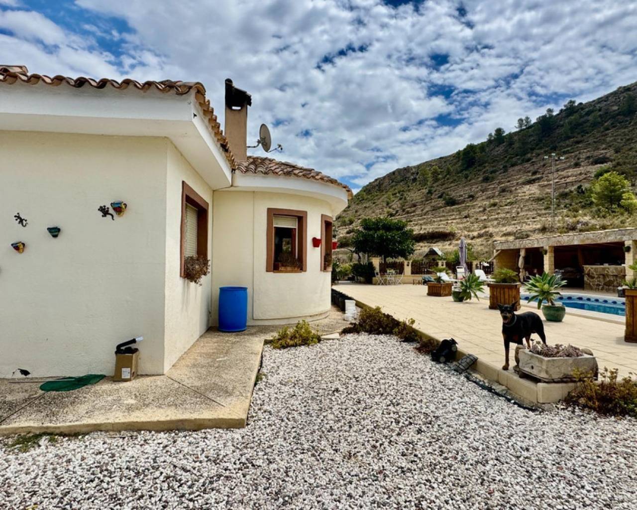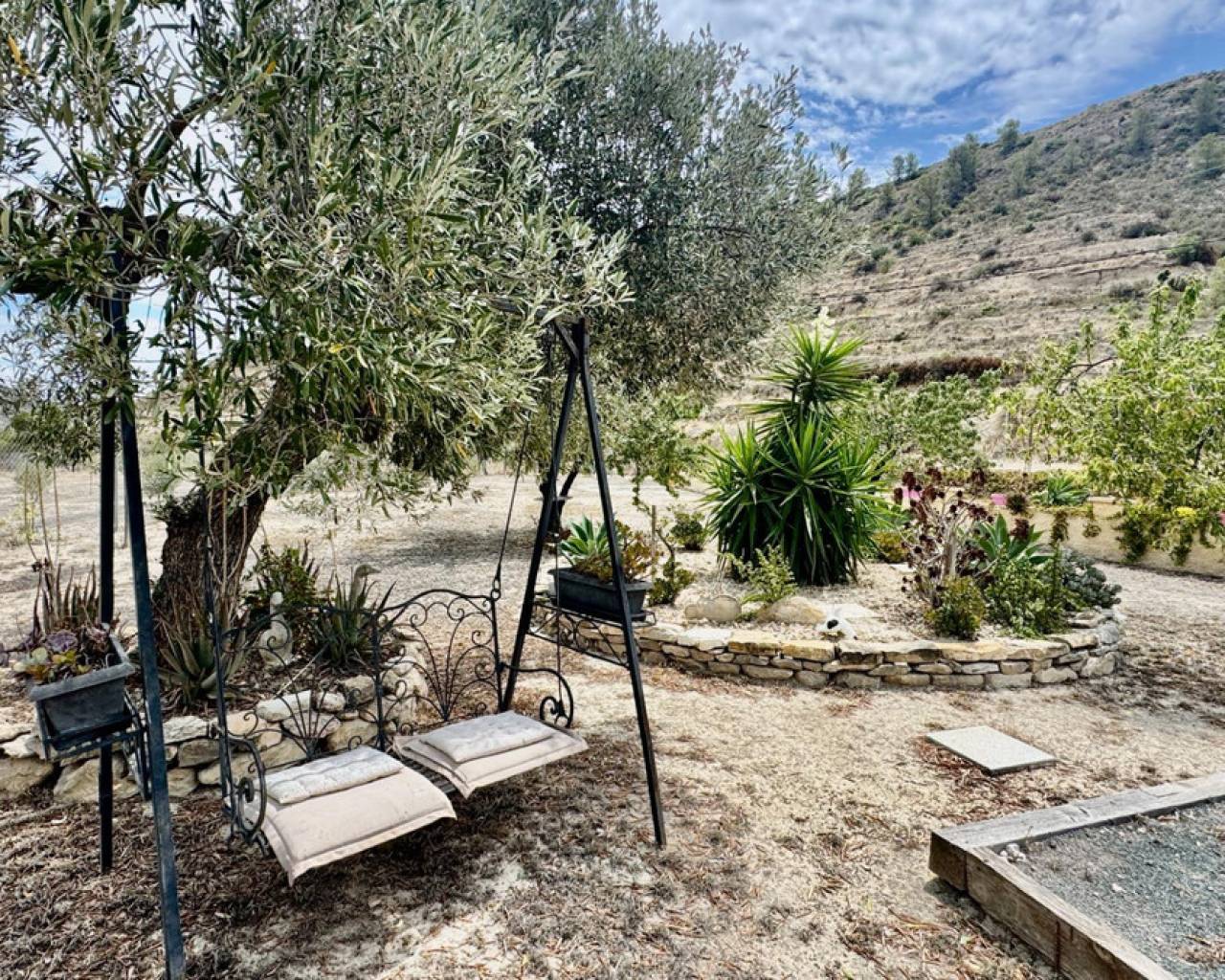 Esta encantadora vivienda está situada en un entorno natural muy tranquilo, a pocos minutos del pintoresco pueblo de Relleu, entre suaves colinas y campos de olivos.La casa, de estilo tradicional y cuidada con esmero, ofrece un ambiente cálido y familiar:- Salón amplio con chimenea y salida a una terraza cubierta- Cocina funcional abierta al comedor- Tres dormitorios luminosos y dos baños- Trastero, leñera y pequeño taller- Piscina privada rodeada de vegetaciónEl jardín, lleno de carácter mediterráneo, cuenta con numerosos olivos maduros, así como higueras, naranjos, granados y almendros. Dispone de pozo propio y sistema de riego por goteo.La ubicación es ideal para quienes buscan paz, privacidad y contacto directo con la naturaleza, sin renunciar a la cercanía del pueblo ni a la costa, que se encuentra a menos de una hora.Una casa perfecta para disfrutar de una vida tranquila, rodeado de lo esencial.
