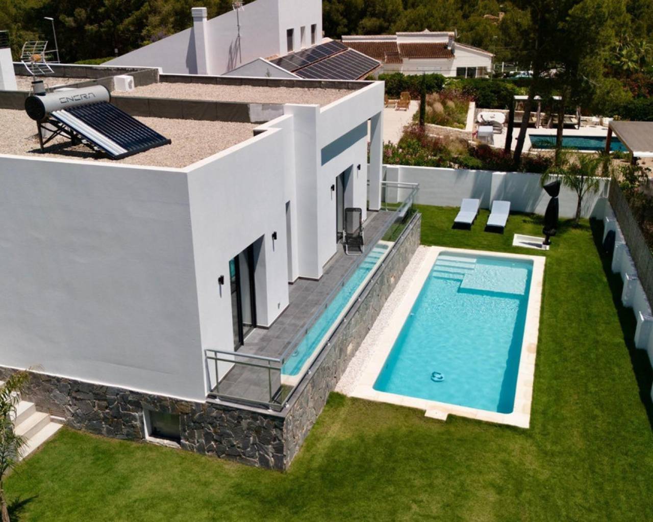 Descubre esta magnífica villa de lujo situada en la codiciada zona de Altea La Vella, un verdadero refugio que combina elegancia y confort. Con una generosa superficie construida de 226 m² sobre una parcela privada de 840 m², esta exclusiva propiedad cuenta con cuatro amplias habitaciones dobles ideales para el descanso familiar o recibir a tus invitados. Disfruta del sol mediterráneo desde tu propia terraza mientras te relajas junto a la exuberante piscina rodeada por frondosos árboles que aportan privacidad y frescura al ambiente.Conservada impecablemente 'para entrar a vivir', cada rincón ha sido diseñado pensando en el más alto estándar; los espacios son luminosos gracias a su orientación exterior lo cual permite disfrutar las vistas panorámicas hacia las montañas cercanas. Además, dispone dos baños completos y un aseo adicional logrando así comodidad máxima para sus residentesUbicada estratégicamente cerca colegios reconocidos e instalaciones sanitarias como hospitales, tendrás todo lo necesario al alcance sin sacrificar serenidad ni exclusividad. Esta es la oportunidad perfecta para adquirir no solo una vivienda sino también un estilo vida lleno bienestar inigualable.