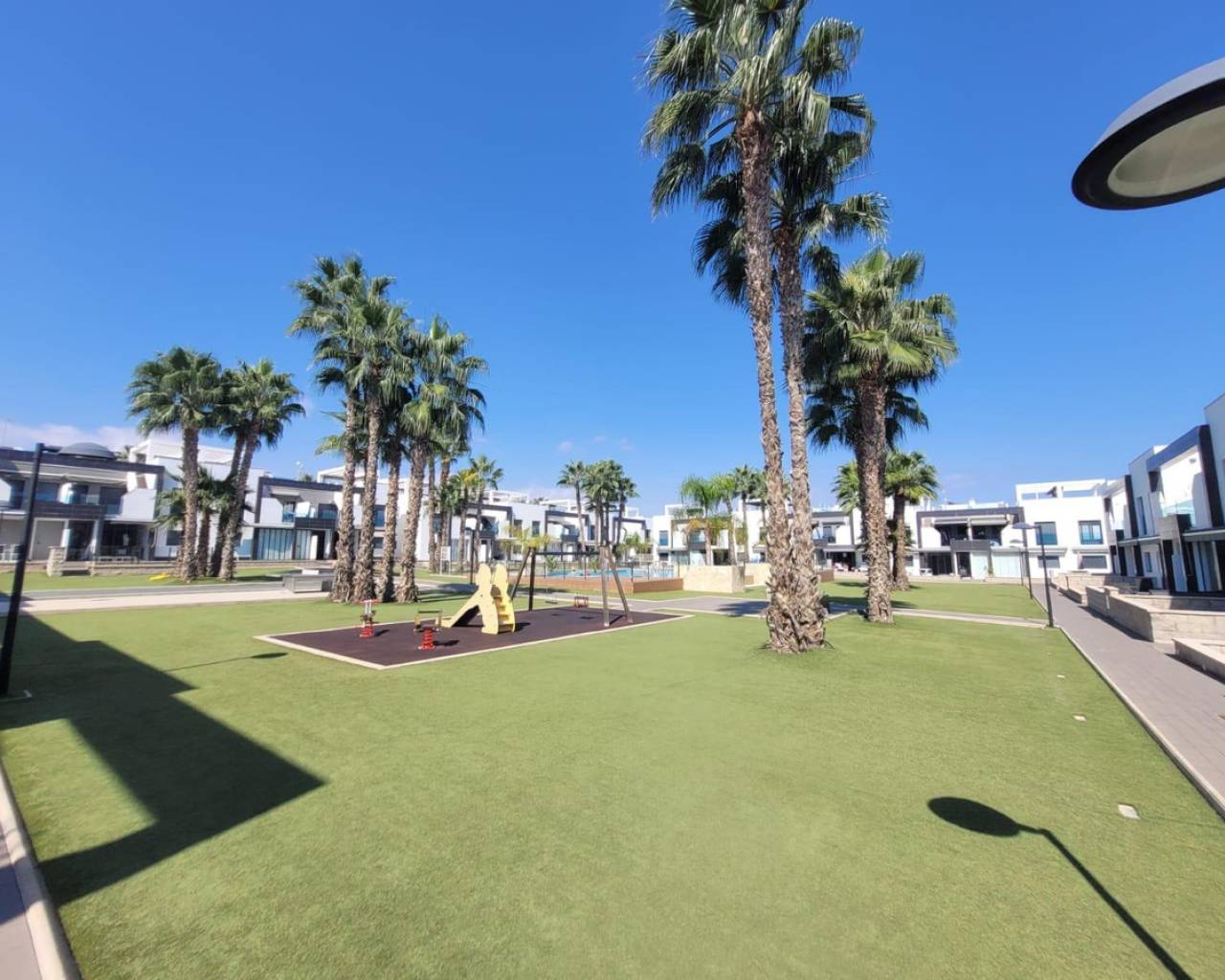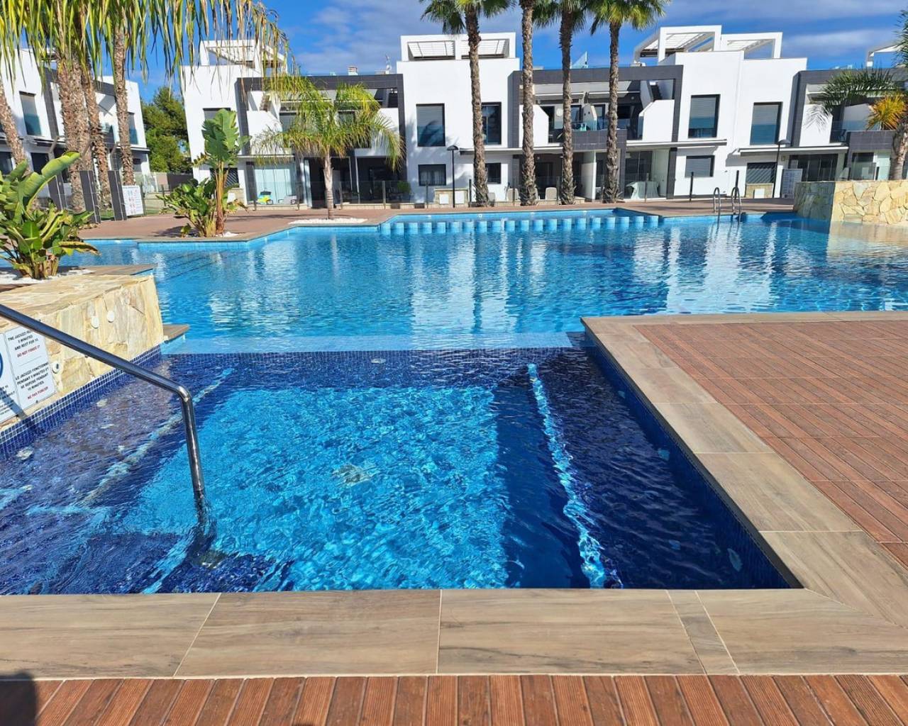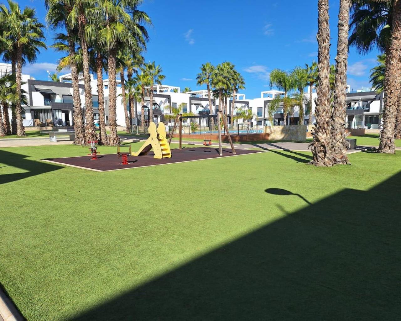 Descubre este encantador bungalow de planta baja ubicado en la privilegiada zona de La Zenia, Orihuela Costa. Con una superficie construida de 90 m² y orientado al sur, esta propiedad cuenta con dos amplias habitaciones dobles y dos baños completos. Su estado impecable permite entrar a vivir sin necesidad de reformas. Situado a tan solo 1500 metros del mar Mediterráneo, disfrutarás de un clima excepcional todo el año.La vivienda se encuentra dentro de una urbanización que ofrece piscina comunitaria y zonas infantiles ideales para familias. Además, su localización es perfecta gracias a la cercanía con autobuses públicos que facilitan el acceso al resto del municipio así como los centros comerciales más importantes donde podrás encontrar todas las comodidades necesarias: tiendas, colegios e incluso hospitales dotados con servicios médicos eficientes.No pierdas la oportunidad única que representa este bungalow; ideal tanto como residencia habitual o inversión vacacional.
