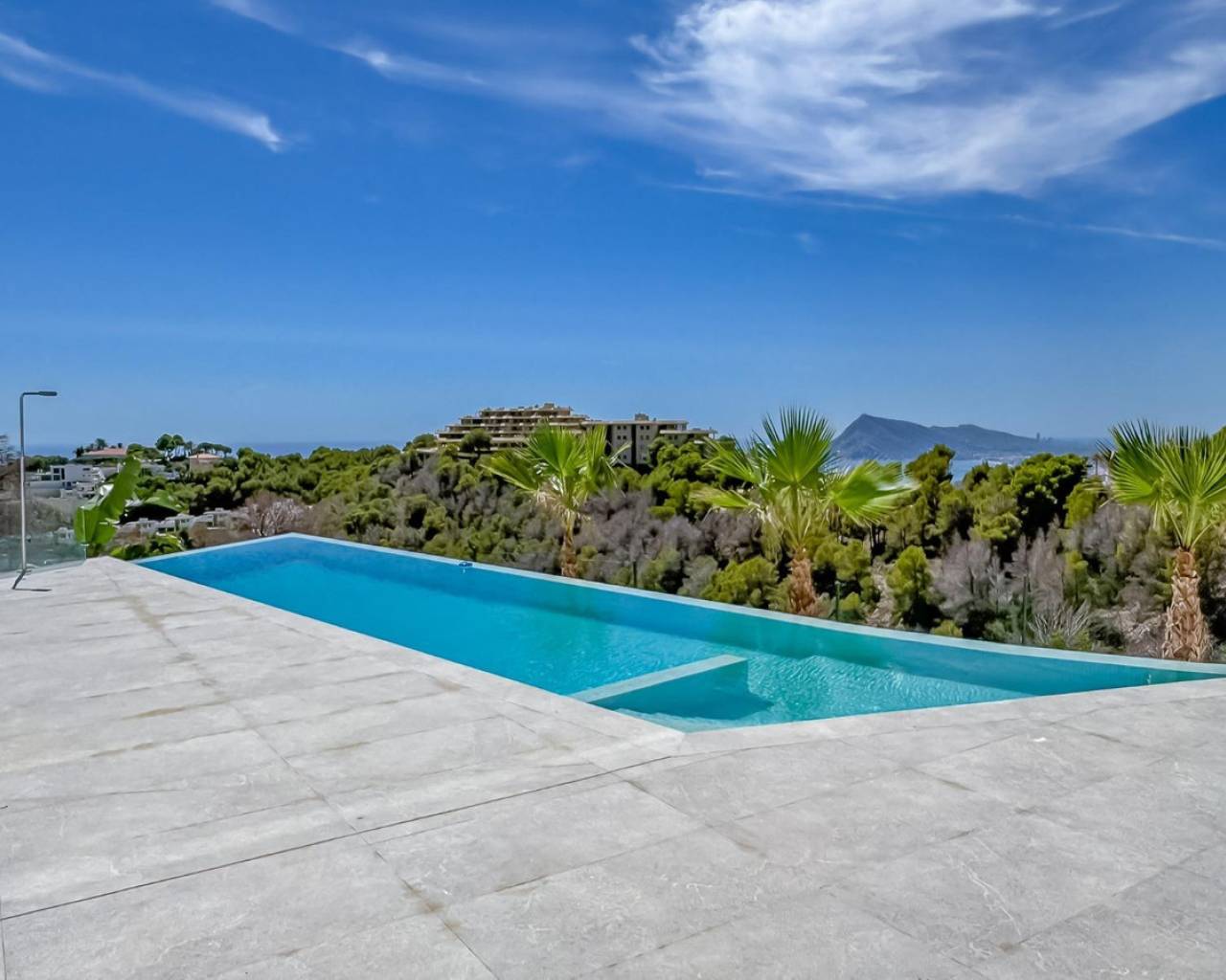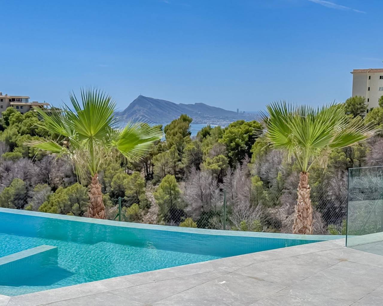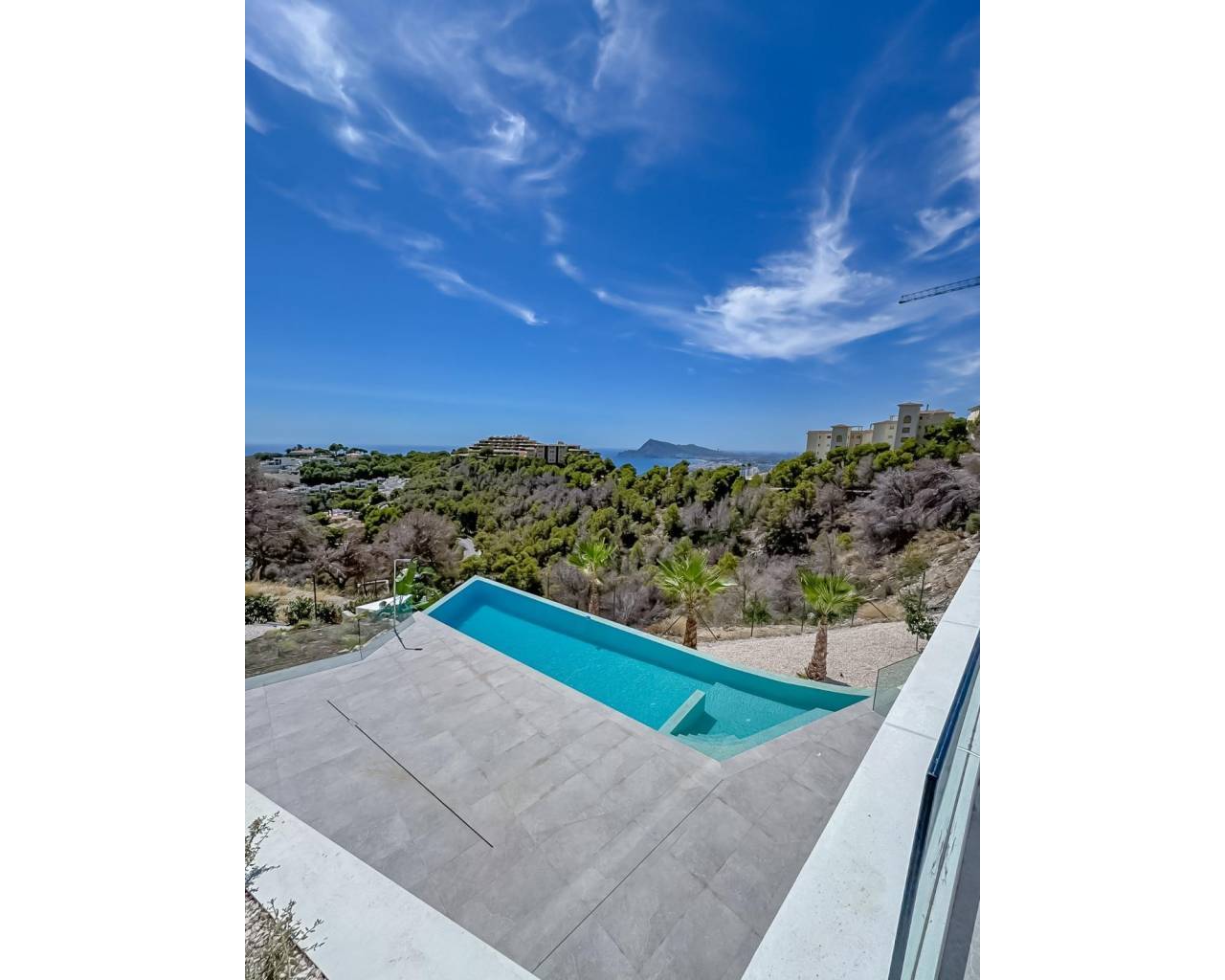 Exclusiva Villa de Lujo con Vistas Panorámicas al Mar Mediterráneo Lista Para Entrar a Vivir.En el corazón del prestigioso complejo Altea Hills, conocido por su seguridad 24/7, su hotel de 5 estrellas, spa y club de tenis, se alza Villa ALMA, una obra maestra arquitectónica que combina elegancia, diseño contemporáneo y confort absoluto.????️ Datos generales: ---Superficie construida: 412,60 m²---Parcela: 979 m²---Distribución: 3 niveles---Planta baja: 160 m²---Planta primera: 116,55 m²---Planta acceso: 136,05 m²---Dormitorios: 4---Baños: 4 ---Año de entrega: 2025 (Key Ready – Amueblada)???? Distribución y arquitecturaDiseño y Concepto:---La villa ha sido cuidadosamente distribuida en tres niveles para maximizar la luz natural, la funcionalidad y las impresionantes vistas al mar desde cada estancia.---El estilo arquitectónico moderno se combina con materiales nobles y acabados premium.Características principales:---Espacios de doble altura en salón y zonas comunes---Cocina de lujo completamente equipada (electrodomésticos Miele)---Dormitorios con baño en suite y armarios empotrados---Ascensor privado que conecta los tres niveles???? Interior destacado: ---Ambientes amplios y luminosos gracias a sus ventanales panorámicos de suelo a techo.---El salón de 66,50 m² se abre a una gran terraza que une interior y exterior, creando una transición perfecta hacia el paisaje mediterráneo.Equipamiento de alta gama:---Calefacción por suelo radiante en toda la vivienda---Aire acondicionado con sistema Airzone---Lavadero independiente---Iluminación LED integrada---Domótica opcional???? Exterior y entorno Villa ALMA ofrece una experiencia de vida única, rodeada de vegetación mediterránea y con vistas panorámicas al mar.Zonas exteriores:---Piscina privada de diseño infinito---Terraza-solárium de 118 m²---Jardín con sistema de riego automático---Aparcamiento privado para 2 coches---Parcela completamente vallada???? Ubicación---Situada en Altea Hills, una de las urbanizaciones más exclusivas de la Costa Blanca, con vigilancia 24 horas y acceso controlado.---A pocos minutos del puerto deportivo Marina Greenwich, campos de golf, colegios internacionales y los encantadores pueblos de Altea y Calpe.