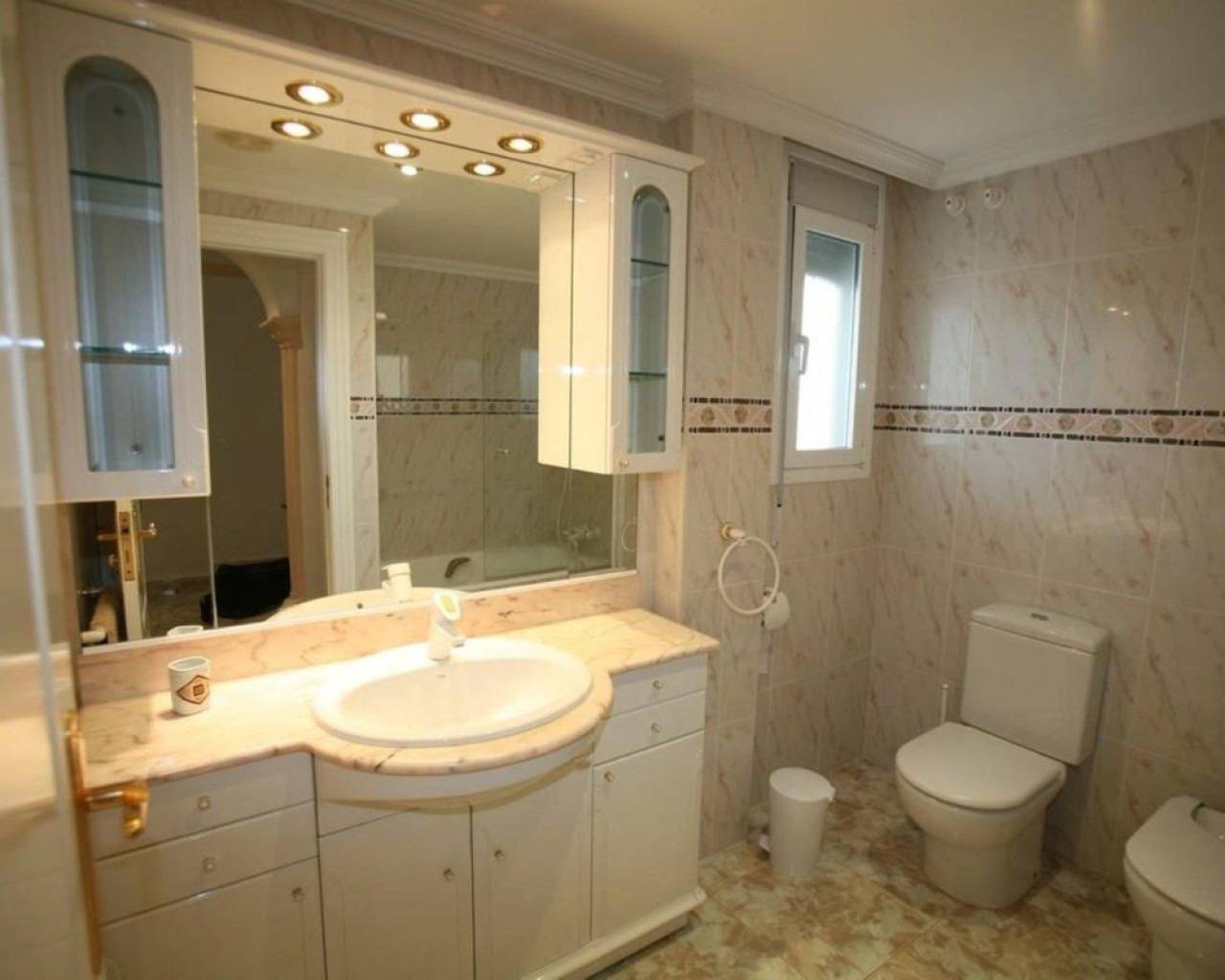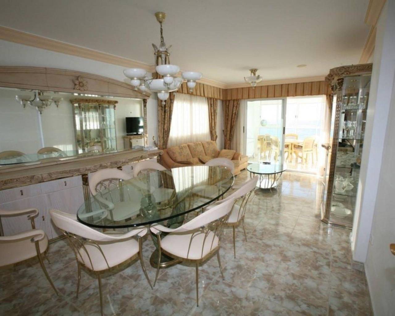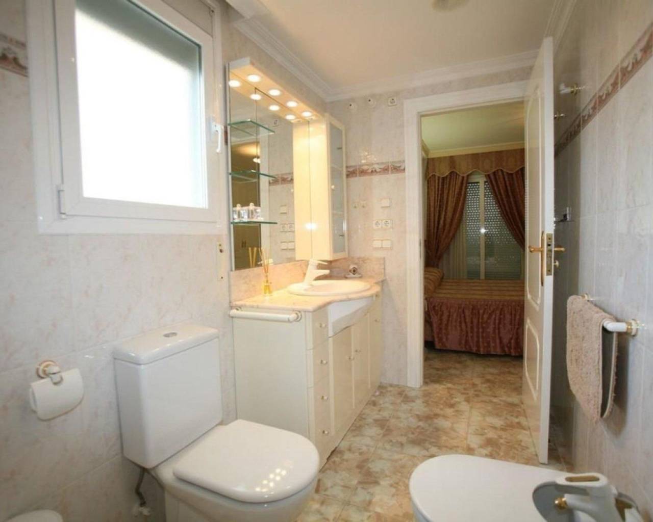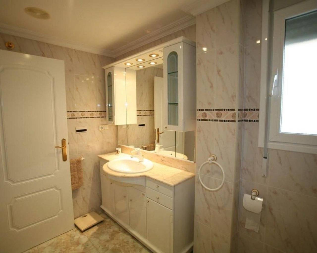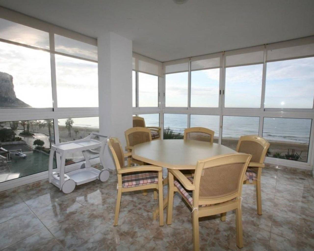Este exclusivo apartamento en Calpe ofrece una ubicación privilegiada a solo 10 metros de la playa, lo que permite disfrutar del mar prácticamente desde la puerta de casa. Construido en 1997 con materiales de alta calidad y diseñado con tecnología moderna, destaca por su elegancia, confort y estilo mediterráneo.La vivienda cuenta con 140 m² construidos, distribuidos en tres dormitorios luminosos con cuatro amplios armarios empotrados, dos baños completos, y una cocina independiente totalmente equipada, ideal para los amantes de la gastronomía. El espacioso salón–comedor, decorado con exquisito gusto y completamente amueblado, se abre hacia una espectacular terraza de 34 m² orientada al sur, donde se pueden contemplar amaneceres inolvidables y vistas panorámicas al mar.El apartamento dispone de aire acondicionado y calefacción, lo que lo convierte en un hogar confortable durante todo el año. Además, incluye plaza de aparcamiento privada, ascensor, videoportero, zona infantil y una práctica barbacoa para disfrutar en familia o con amigos. Su excelente ubicación ofrece máxima comodidad: se encuentra a tan solo 30 metros de todos los servicios esenciales, a 12 km de un campo de golf y a 82 km del aeropuerto, lo que lo hace perfecto tanto como residencia habitual como vivienda vacacional o inversión.Una propiedad única que combina lujo, vistas impresionantes y un estilo de vida mediterráneo inigualable junto a la orilla del mar