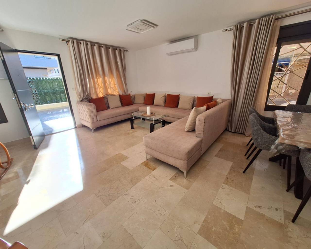 Presentamos este encantador adosado reformado ubicado en la codiciada zona de Playa del Cura, Torrevieja. Con una superficie construida de 116 m² y un área útil de 88 m², esta propiedad ofrece el espacio perfecto para disfrutar con familia o amigos. La vivienda cuenta con tres habitaciones dobles y dos baños completos, proporcionando comodidad y funcionalidad a sus residentes. Ventanas de doble acristalamiento con persianas electricas. Su orientación sur garantiza luminosidad durante todo el día mientras que su amplia terraza es ideal para relajarse al aire libre.Situada a solo 800 metros del mar Mediterráneo, los amantes de la playa encontrarán aquí su hogar soñado. Además, dispone de todas las comodidades necesarias cerca: transporte público accesible mediante autobuses cercanos; centros comerciales variados; colegios e instituciones educativas en las proximidades perfectas para familias; hospitales disponibles para atender cualquier necesidad médica;y zonas infantiles ideales donde los más pequeños pueden jugar seguros.Este adosado destaca por ser totalmente exterior ofreciendo vistas agradables desde cada habitación lo cual suma aún más valor a esta magnífica oferta inmobiliaria por tan solo €319500. No pierda la oportunidad visitar este impresionante inmueble que combina confort moderno junto con ubicación privilegiada.