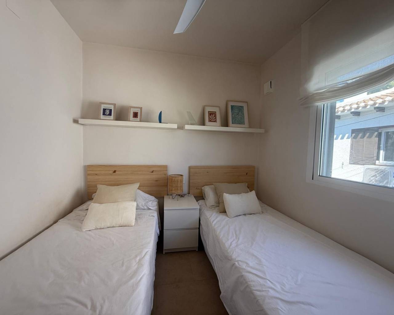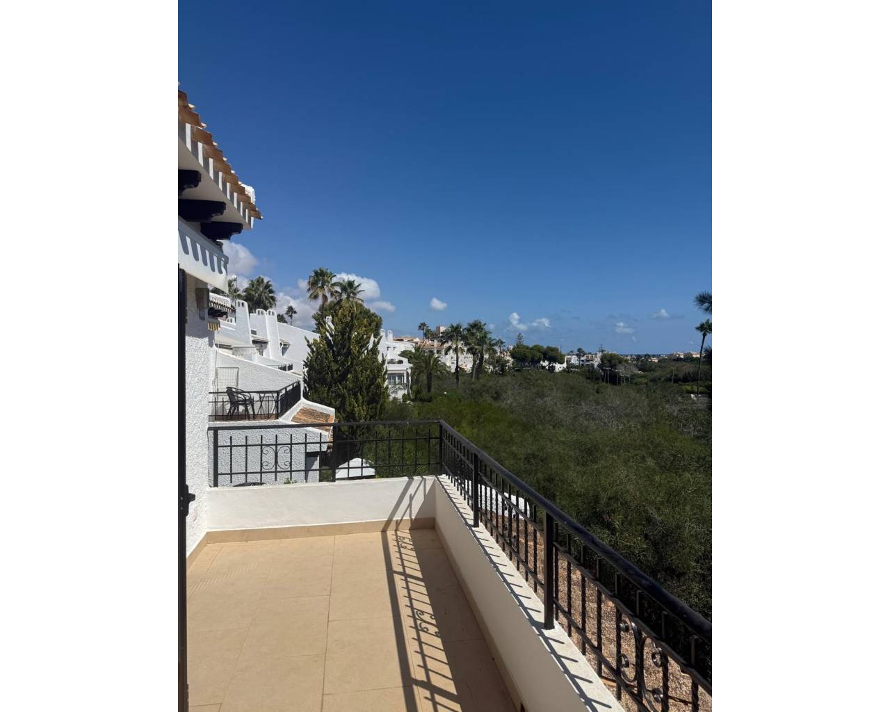 Precioso bungalow en Cabo Roig, a solo 500 metros de la playa Se vende bungalow totalmente renovado en una urbanización cerrada, a tan solo 500 m del mar. La vivienda cuenta con 4 dormitorios (uno de ellos habilitado como oficina), 2 baños completos, un luminoso salón-comedor y cocina equipada. Dispone de una terraza de 20 m² con preciosas vistas a un pinar, ideal para disfrutar del clima mediterráneo durante todo el año. La urbanización ofrece piscina comunitaria y aparcamiento privado, lo que aporta comodidad y tranquilidad. Gracias a su ubicación privilegiada en Cabo Roig, tendrás la playa, restaurantes y todos los servicios a pocos pasos, en un entorno seguro y familiar.