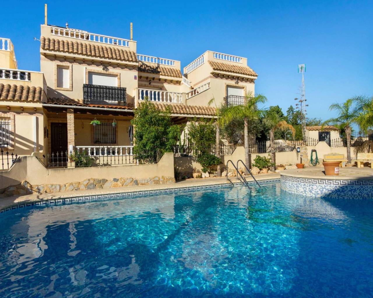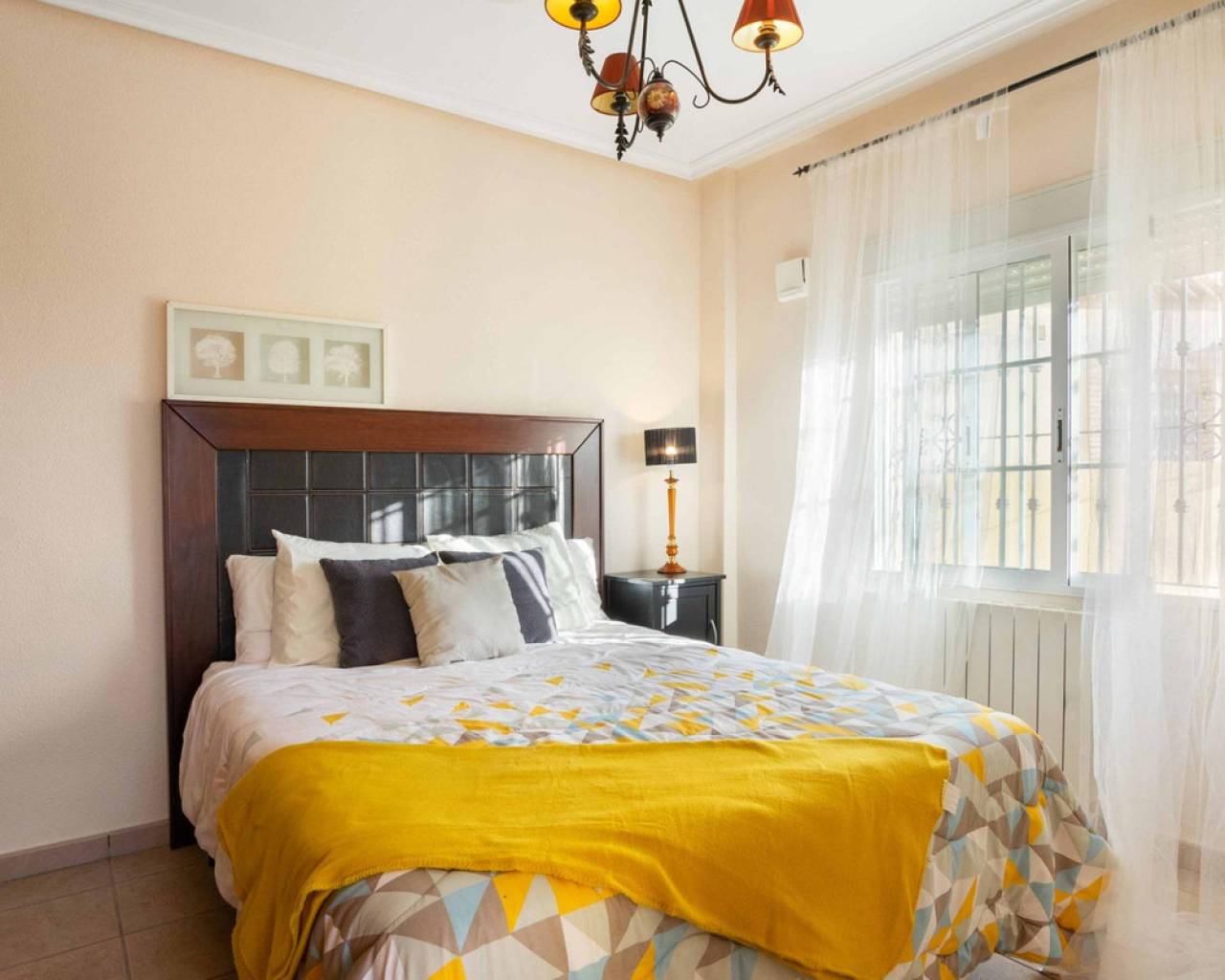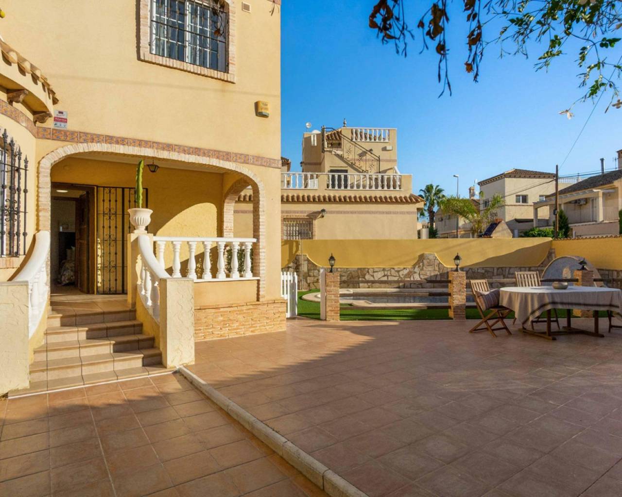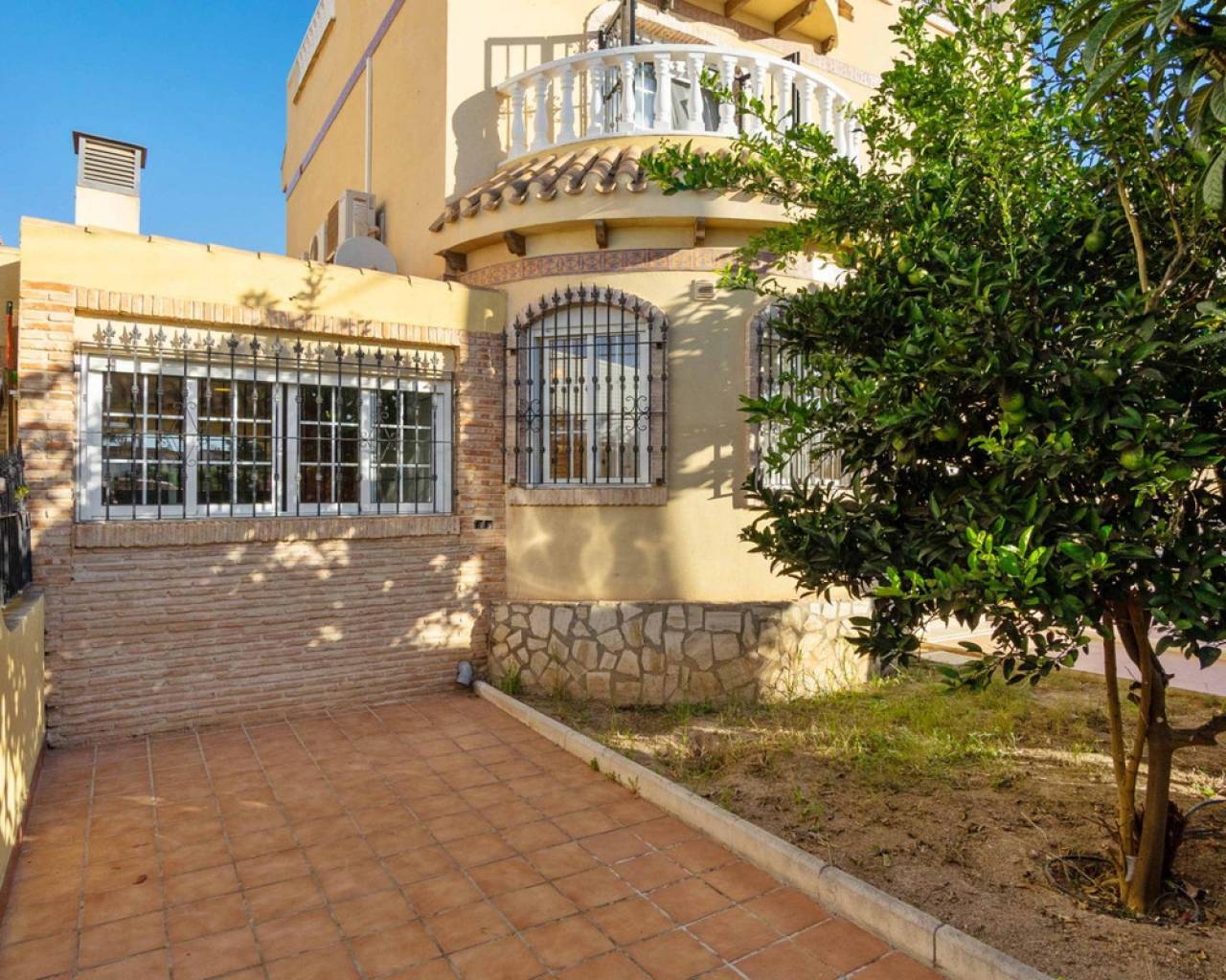 ¡Bienvenidos a su nuevo hogar en Orihuela Costa, en la encantadora zona de Las Mimosas! Esta espectacular casa se presenta como la oportunidad que estabas esperando para vivir la vida de tus sueños en un entorno paradisíaco.~~Con una generosa superficie de 161 metros cuadrados y una parcela de más de 300 metros cuadrados, esta vivienda es un oasis de espacio y privacidad. Además, su ubicación a tan solo 3000 metros de la playa te garantiza el placer del mar y el sol siempre al alcance de tu mano.~~Disfruta de la amplitud de esta casa de 5 habitaciones, con la ventaja de una habitación en la planta baja para mayor comodidad. En esta planta también encontramos un baño.~~La primera planta ofrece 3 dormitorios y 2 baños, 1 en suite.~~En la planta del solariúm encontramos el quinto dormitorio muy luminoso.~~Esta propiedad está lista para que entres a vivir y te sientas como en casa desde el primer momento. La cocina equipada te permitirá dar rienda suelta a tu creatividad culinaria, y la orientación sur-este te brinda una luminosidad natural incomparable a lo largo del día.~~Las comodidades adicionales de esta casa son innumerables. Disfruta de la conveniencia del agua corriente, el confort del aire acondicionado y la seguridad de un sistema de alarma. Los armarios empotrados, la despensa y la lavandería facilitan la organización de tu vida diaria.~~La casa se presenta completamente amueblada, lo que significa que puedes mudarte sin complicaciones y comenzar a disfrutar de tus espacios desde el primer día. El jardín, con sus árboles y una zona de barbacoa, se convierte en el escenario perfecto para tus reuniones familiares y momentos al aire libre.~~Relájate y sumérgete en las aguas de tu piscina privada o únete a la comunidad en la piscina comunitaria. El solárium te ofrece un rincón de tranquilidad para tus momentos de reflexión, mientras que las vistas despejadas y la brisa mediterránea te acarician el alma.~~La ubicación de esta casa es simplemente excepcional, con centros comerciales, hospitales, parques, supermercados y zonas infantiles cercanas, lo que hace que la vida cotidiana sea sumamente cómoda.~~Los gastos de comunidad son de tan solo 402 euros al año, lo que garantiza el mantenimiento impecable de las áreas comunes.~~En resumen, esta casa en Orihuela Costa es mucho más que una propiedad; es un estilo de vida. Una vida de confort, belleza y tranquilidad te espera aquí. ¡No dejes pasar esta oportunidad y contáctanos hoy mismo para visitar tu nuevo hogar!~~Impuestos y gastos de compra-venta no incluidos.