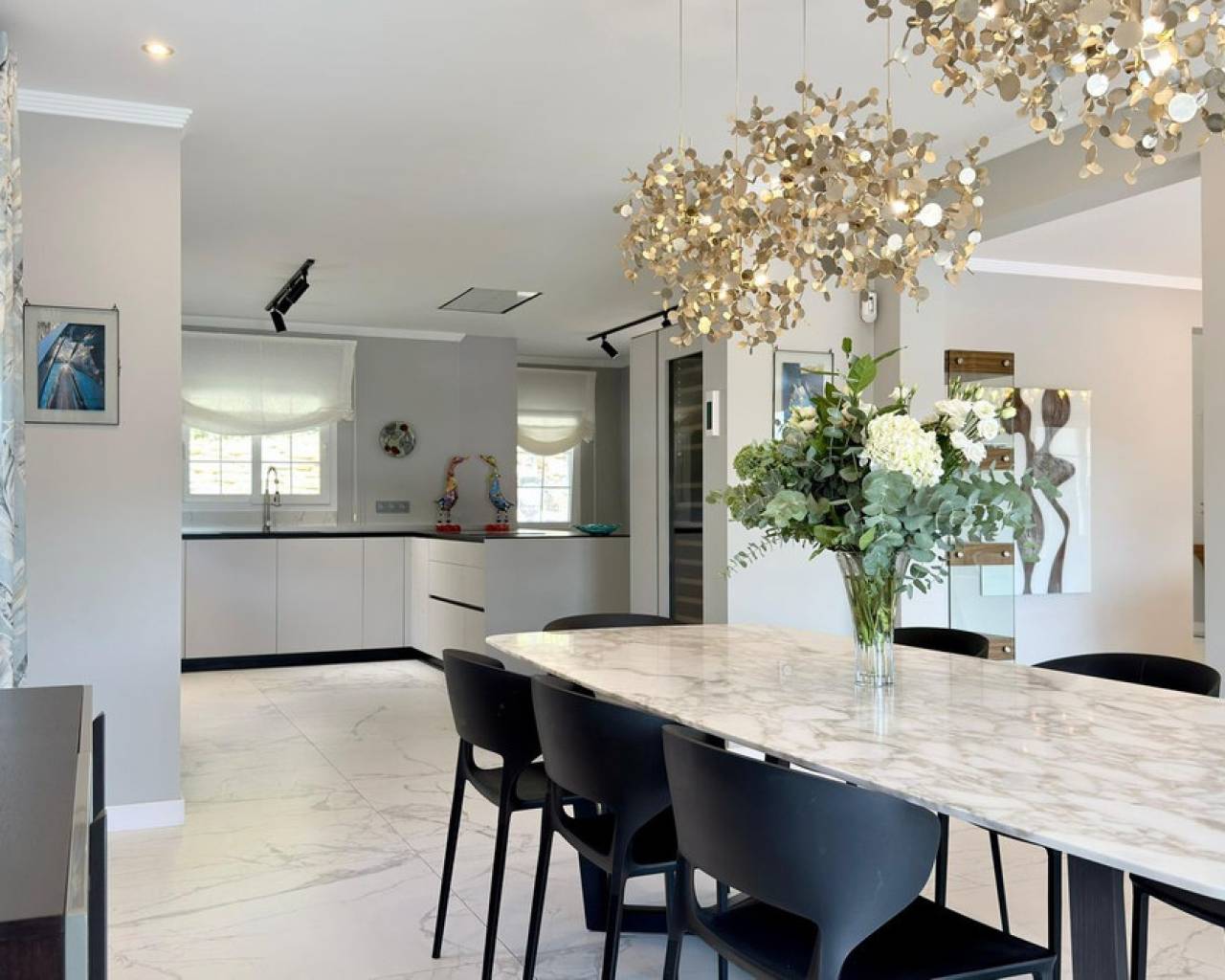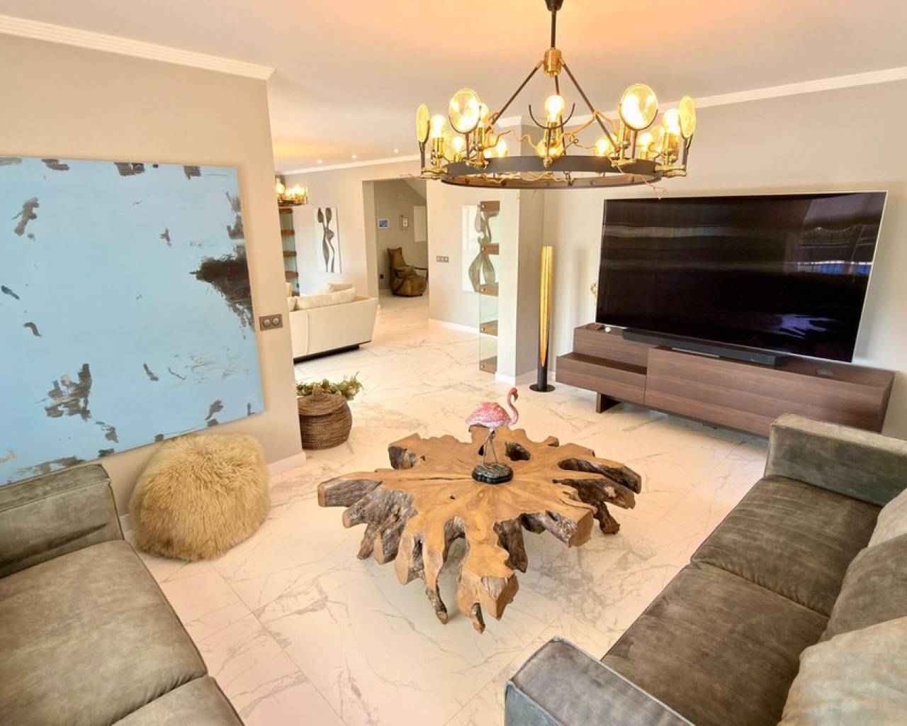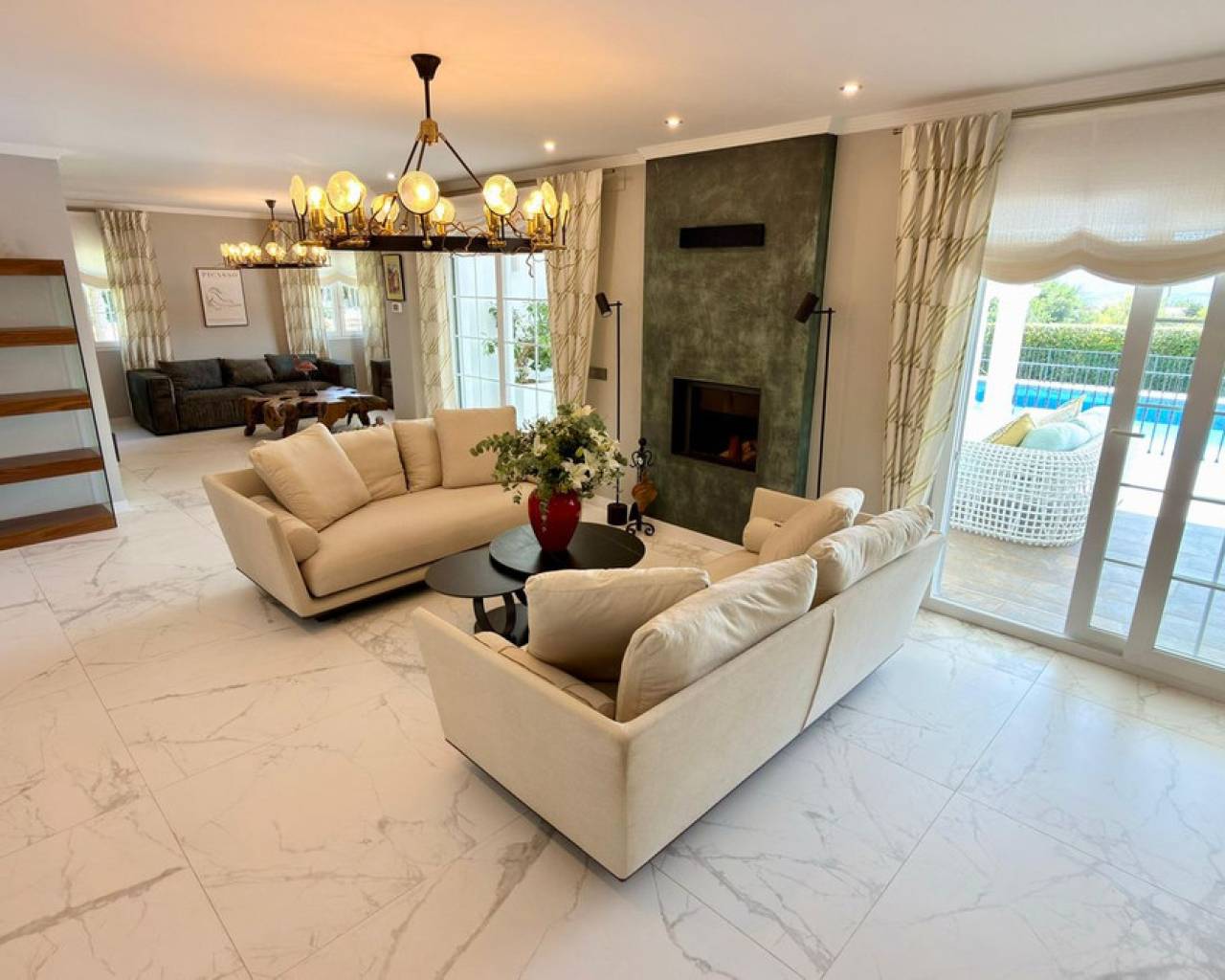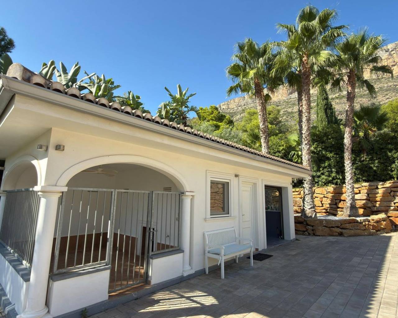SE VENDE: VILLA EXCLUSIVA EN MONTGÓ, JÁVEA Disfrute de impresionantes vistas a la montaña y al valle desde cada rincón de esta villa totalmente amueblada y equipada — lista para entrar a vivir. • Superficie de la parcela: 3.150 m² • Casa principal: 439 m² | Casa de invitados: 144 m² DESCRIPCIÓN: La villa está ubicada en una esquina, sin vecinos directos, en una zona muy privada. La propiedad consta de casa principal de 2 plantas+sotano, casa de invitados, piscina de agua salada con sistema de calefacción, cocina de verano con BBQ, zona cerrada junto a la piscina, sótano con gimnasio y sala de karaoke, casa para perros con taller y garaje. Dispone de amplio acceso para vehículos, zona de aparcamiento. DISTRIBUCIÓN Y DISEÑO Casa Principal La villa se distribuye en dos plantas más sótano, ofreciendo espacios amplios y elegantes. Cuenta con 3 dormitorios, 3 baños en suite, un amplio vestidor, oficina de belleza, ideal para combinar comodidad y estilo de vida. En la planta baja, un espectacular hall de entrada con techos de doble altura y ventanas de vidrieras recibe luz natural. La sala principal incluye chimenea en funcionamiento con líneas dorados pintados a mano, mientras que una segunda zona de estar está equipada con televisor grande y persianas automáticas. La cocina moderna está totalmente equipada con electrodomésticos de alta calidad de Gaggenau, incluyendo nevera estilo americano y un gran frigorífico para vinos, y conecta directamente con las terrazas, la piscina y la cocina de verano. Este despacho independiente se encuentra alejado de la zona de descanso, ofreciendo un ambiente ideal para trabajar con concentración y tranquilidad. Si se desea, el espacio puede transformarse fácilmente en un dormitorio adicional Sótano La planta inferior está dedicada al ocio y al bienestar. Incluye un gimnasio completamente equipado y un estudio de karaoke con sistema de sonido profesional, micrófonos y pantalla grande. Extras y Tecnología La villa ofrece aire acondicionado (frío y calor), calefacción por suelo radiante, ventanas de doble acristalamiento con persianas eléctricas. Para entretenimiento: televisor de 85 pulgadas con persianas automáticas, mientras que la seguridad y comodidad están garantizadas con videovigilancia y sistema completo de domótica. Conexión a internet mediante fibra óptica con dos proveedores, asegurando servicio ininterrumpido. Piscina y Zonas Chill-Out En el corazón de la propiedad se encuentra la piscina de agua salada con sistema de calefacción, ideal para todo el año. La amplia terraza alrededor ofrece zonas acogedoras para relajarse en familia o con amigos. Terrazas y Zonas de Ocio La villa cuenta con varios espacios exteriores para ocio y entretenimiento. Una cocina de verano equipada con techo automático, BBQ y y es perfecta para comer al aire libre. El jardín paisajístico incluye más de 60 palmeras y plantas mediterráneas, con riego automático gestionado por domótica. Entrada y Espacios Adicionales La villa se accede por un gran acceso principal con escalones y doble portón automático para coches. Todo el perímetro está protegido con valla reforzada, garantizando seguridad y privacidad, adaptada para mascotas. La casa de invitados con cocina abierta y baño ofrece independencia y comodidad, con hermosas vistas al Montgó y a la casa principal. El garaje y trastero cuentan con cargador para coche eléctrico. Para amantes de los animales, la propiedad incluye casa para perros con zona de limpieza, espacio al aire libre y área de taller de 36 m². Hay aparcamiento para unos coches. Ubicación La villa se encuentra a 5 minutos del campo de golf La Sella, varios restaurantes y cafeterías, así como del supermercado La Ermita Local Market. Jávea – un santuario mediterráneo entre el mar y la montaña. Este destino privilegiado de la Costa Blanca combina el encanto de un pueblo costero tradicional con el confort de un exclusivo resort moderno. Sus calas de aguas turquesas, más de 300 días de sol al año y la belleza del Parque Natural del Montgó crean un entorno perfecto para vivir y disfrutar con total tranquilidad. La localidad se organiza en tres zonas principales: el casco histórico, el animado puerto y la popular playa del Arenal. Aquí encontrará alta gastronomía, colegio internacional Xábia International College, y una comunidad internacional acogedora. Jávea ofrece un estilo de vida premium en uno de los enclaves más deseados del Mediterráneo.