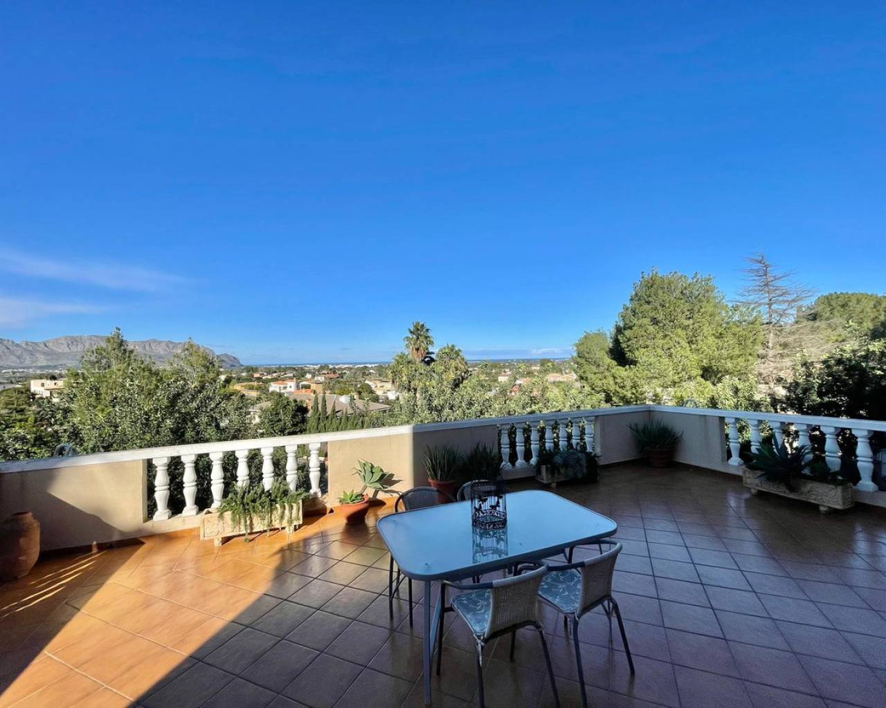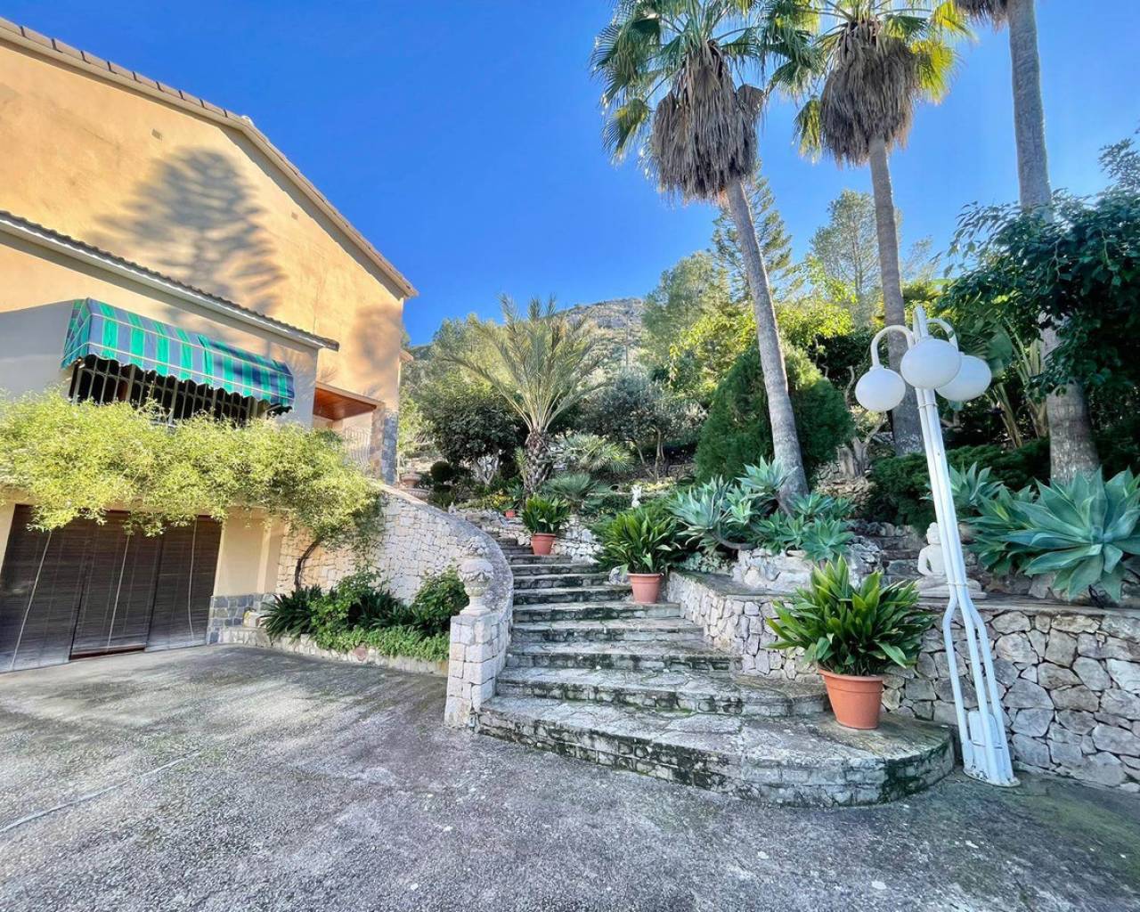 Impresionante Villa de 400m² en venta en Pedreguer con Panorámicas Vistas al Mar y Montaña Esta excepcional villa, ubicada en una parcela privada de 3.450 m², combina amplitud, confort y vistas espectaculares, ofreciendo un estilo de vida único en un entorno tranquilo y exclusivo. Distribución Funcional y Espaciosa La villa se organiza en tres niveles: Planta Principal: Un elegante hall de entrada da paso a un amplio salón comedor lleno de luz natural. Adicionalmente, encontrarás otro salón con chimenea que conecta con una terraza cubierta y una terraza abierta de 60 m², perfectas para disfrutar de las vistas panorámicas. La planta principal también incluye un aseo de cortesía, una cocina independiente con despensa, acceso al lavadero y al extenso jardín. Planta Superior: Aquí se encuentran cinco dormitorios con armarios empotrados, destacando el dormitorio principal con baño en suite. Además, hay un segundo baño completo. Uno de los dormitorios ofrece acceso a una terraza cubierta con vistas impresionantes a la ciudad y al mar. Planta Inferior: Un apartamento de invitados con entrada independiente, ideal para familiares, visitas o incluso como despacho profesional. Incluye un salón comedor con chimenea, acceso a una terraza cubierta, cocina, despensa, baño completo, trastero y un garaje cerrado y amplio. Espacios Exteriores y Comodidades Zona de Parking: Espacio cubierto para dos vehículos y adicional descubierto para varios más. Jardines: Un cuidado jardín con zonas amplias y una casita adicional utilizada como trastero. Confort y Detalles: Aire acondicionado con bomba de calor, techos altos que realzan la sensación de amplitud y diseño, y acabados de calidad, construidos con atención por los actuales propietarios. La casa dispone de 2 contadores de agua. Uno potable para la vivienda, y otro unicamente para el riego automatico del jardín. Potencial Inigualable Perfecta para una familia numerosa o para quienes buscan un refugio mediterráneo que combine espacio, privacidad y cercanía a los servicios. La villa destaca por su versatilidad y posibilidades de personalización, siendo ideal para disfrutar del clima mediterráneo durante todo el año. No pierdas la oportunidad de visitar esta magnífica propiedad y dejarte sorprender por su encanto único y su ubicación privilegiada.