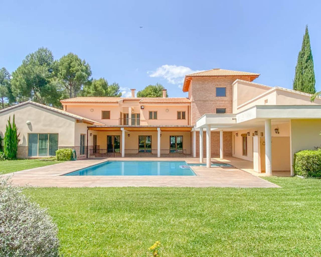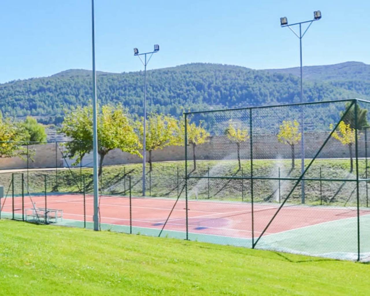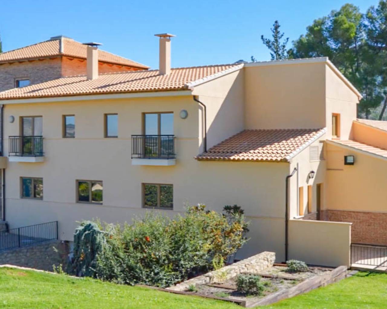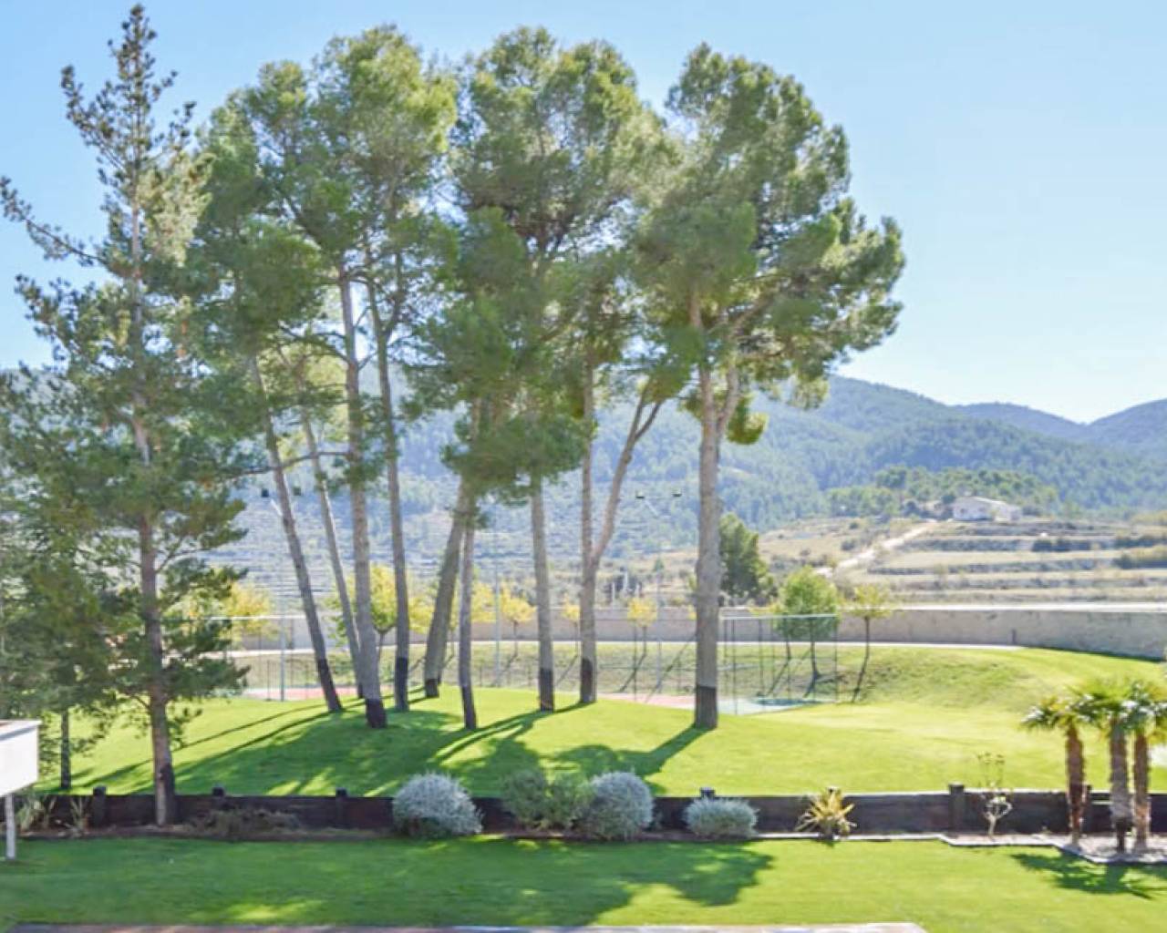Esta hermosa Finca con villa de nueva construcción, la casa del portero, el almacén y una antigua ruina tienen una superficie total construida de 1.529 m2 en una parcela vallada de 22.420 m2, dentro de un área privada de 350.000 m2. La finca está rodeada de hermosas montañas, valles y campos, con el privilegio de contar con un suministro inagotable de agua de manantial. Esta hermosa finca se encuentra a sólo 50 minutos del mar Mediterráneo. Perfecta para una especie de retiro de yoga debido a todos los elementos naturales presentes. La villa se distribuye en 3 plantas. Hay un enorme garaje subterráneo con áreas técnicas. En la planta baja hay un hall de entrada con escalera, una oficina, un enorme dormitorio principal con vestidor y un amplio cuarto de baño, un lavadero, una gran cocina con trastero y una cámara frigorífica, un comedor, una sala de estar y un amplio espacio de vida con un hermoso techo alto de madera. Tanto el espacio de estar como el dormitorio principal y los pasillos tienen acceso a la terraza con una bonita piscina. En la parte trasera del jardín hay una pista de tenis iluminada. Detrás del lavadero, en una ladera, hay un bonito cenador, ideal para hacer las veces de bar al aire libre. En la 1ª planta hay una espaciosa escalera con un bonito techo de madera, 5 dormitorios y 5 baños en suite y un balcón. En la entrada de esta finca hay una hermosa casita grande con garaje, 3 dormitorios, cocina, sala de estar, una gran terraza, un trastero industrial para maquinaria agrícola, entre otros, etc. La casa principal está totalmente equipada y tiene la posibilidad de ampliar los edificios asociados, ideal para convertirla en un exclusivo hotel rural. El garaje tiene capacidad para unos 10 coches. La carpintería de toda la villa está realizada con materiales de alta calidad. Se ha solicitado permiso al ayuntamiento para convertirla en un hotel rural. Se han presentado planes para construir 25 casas de vacaciones adicionales que se integrarán plenamente en el bello entorno. También puede adaptarse para ofrecer diversos servicios adicionales, como un spa o centro de bienestar, eventos, bodas o reuniones de negocios. Además, la propia villa puede ampliarse con 10 habitaciones adicionales, hasta un total de 17 habitaciones. Actualmente hay una producción totalmente ecológica de aceitunas y almendras en la finca que proporciona ingresos adicionales, y una finca con posibilidades y potencial excepcionales. O simplemente disfrutar de total privacidad por sí mismo en este oasis de paz y hermosos campos vastos.