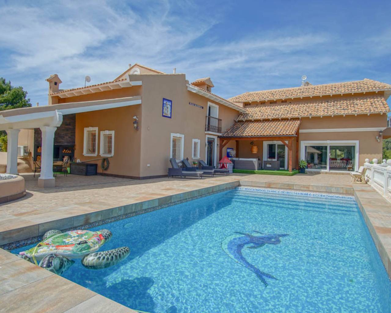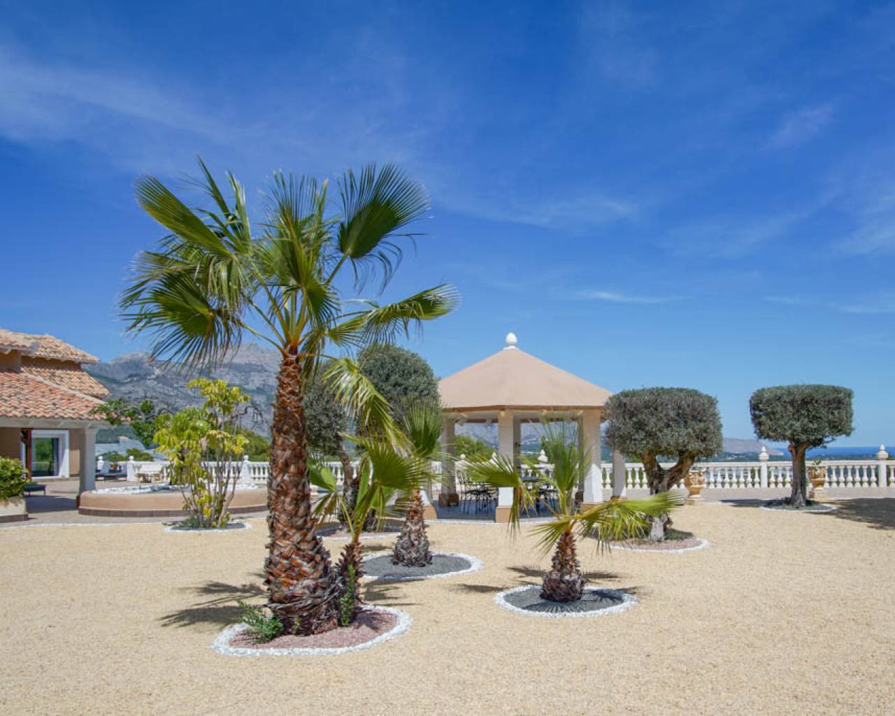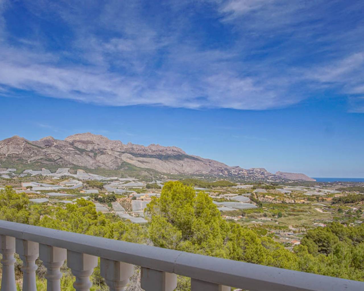 Esta espectacular masía con vistas panorámicas al mar y absoluta privacidad rezuma lujo, cuenta con todas las comodidades y es súper segura. Bellamente encaramado en una parcela privilegiada de 33.000m2, esta propiedad imponente y exclusiva se extiende sobre 900m2 de superficie construida repartida en tres plantas. La parte más antigua (casa de huéspedes de 160y) de la casa fue renovada cualitativamente en 2022 y consta de 4 dormitorios, 1 cocina, 1 comedor, 1 oficina, 2 salas de estar, 2 baños y un trastero/vestidor. La parte nueva consta de 3 dormitorios, 4 baños y un lavadero grande. La cocina americana abierta está equipada con la última tecnología y se conecta muy bien a la gran sala de estar con sus grandes ventanales con vistas panorámicas al mar. También hay una oficina/dormitorio en esta planta. En el mismo nivel se encuentra la piscina con preciosas vistas al mar, los jardines, varias zonas de estar con sombra y una zona de barbacoa con chimenea. Excepcional sobre esta villa: en la parte trasera de la casa hay Helipuerto. En la planta baja, hay un bar, cine/sala de fiestas, gimnasio y baño. En los terrenos, hay un edificio de 90 m² actualmente utilizado como taller de carpintería. Esto podría convertirse fácilmente en una sala de billar o para otros fines. Hay 2 pabellones con las mismas espectaculares vistas al mar y a la montaña que la casa, y hay una cochera con espacio para aparcar 5 coches. También hay un gran patio para perros con una caseta grande para varios perros. Es muy adecuado para familias grandes, en excelentes condiciones, listo para dar la bienvenida a sus nuevos propietarios. Esta propiedad tiene una gran ubicación, ya que está a 10 minutos en coche de la playa de Altea, a 5 minutos en coche de La Nucia y se puede disfrutar de un paseo de 1 hora a través del campo español a Altea. La Nucia es una próspera actividad comercial que complementa un vibrante calendario cultural con un excelente centro deportivo, exposiciones y festividades. Hay una gran variedad de restaurantes, dentro y en los alrededores del pueblo, con una amplia selección de populares restaurantes internacionales y bares de tapas, y el restaurante con estrella Michelin más cercano está a sólo 1,7 km. Muchos consideran que La Nucía es el lugar perfecto para vivir por su población multinacional, su excelente atención sanitaria, su educación que incluye enseñanza en inglés, sus iniciativas deportivas, su agenda especial para jóvenes, sus jardines ecológicos, sus parques para perros y, por supuesto... el clima cálido. Póngase en contacto con nosotros hoy mismo para concertar una visita.