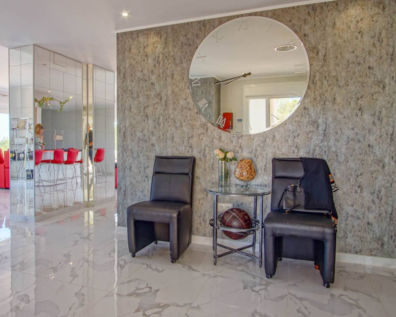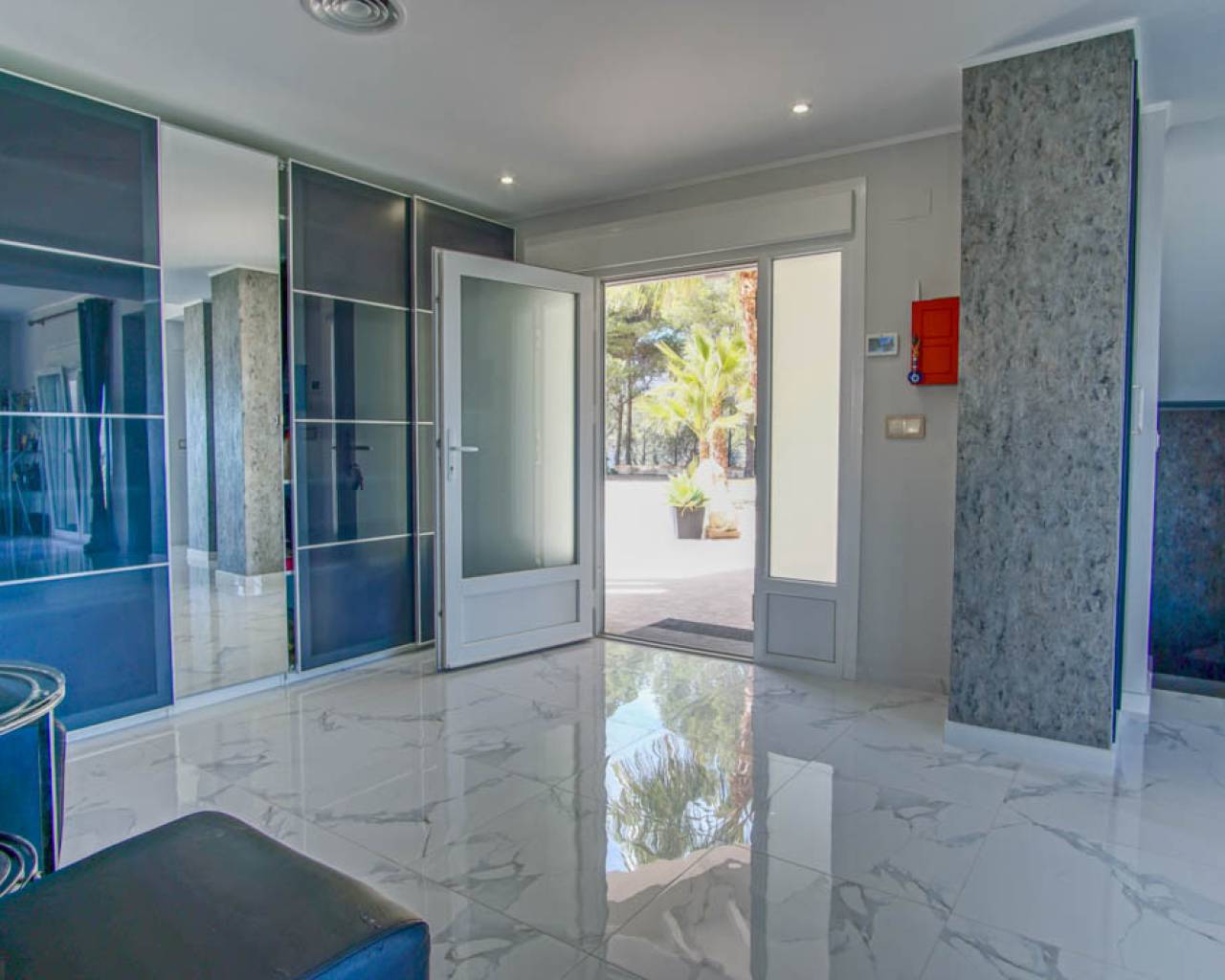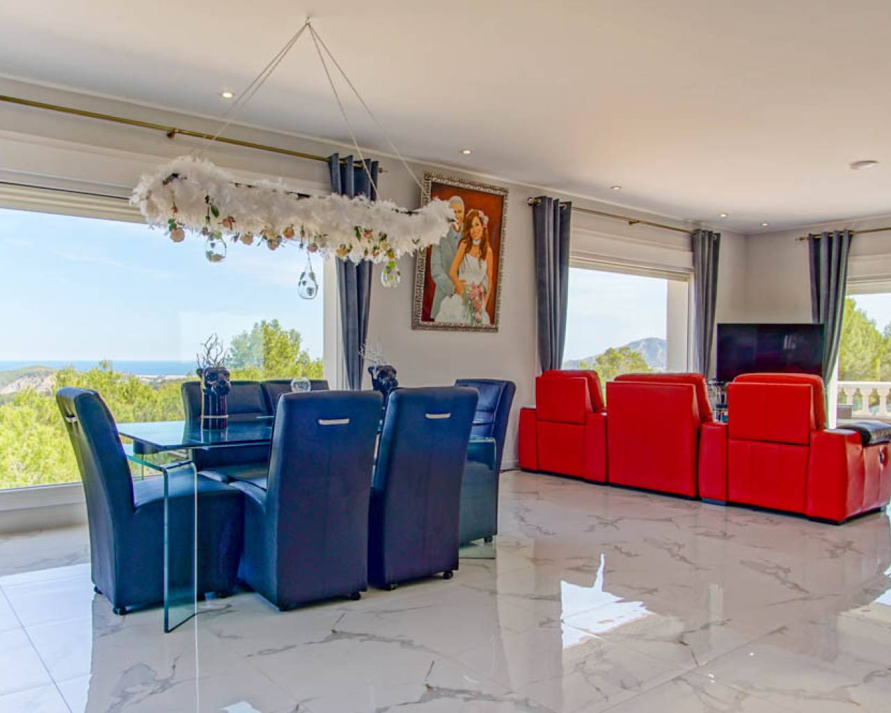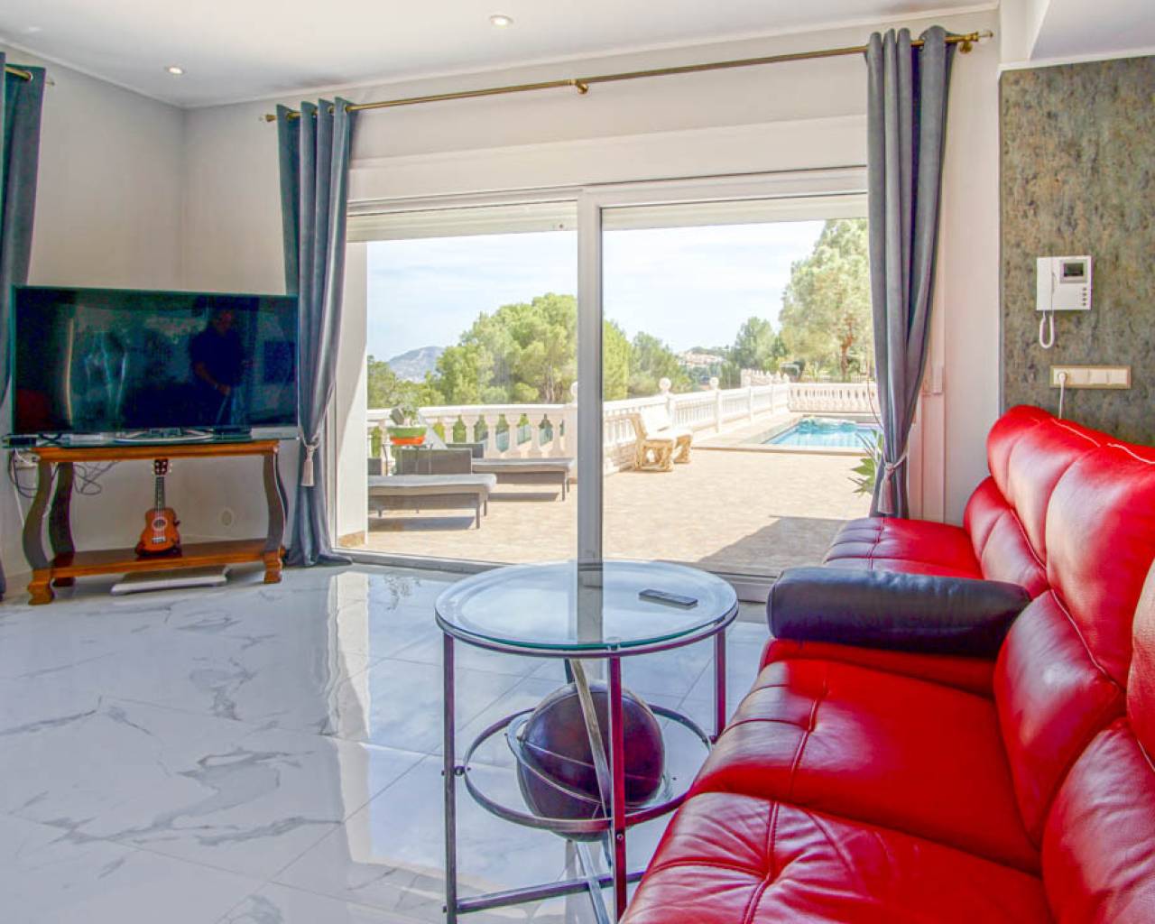 Esta espectacular masía con vistas panorámicas al mar y absoluta privacidad rezuma lujo, cuenta con todas las comodidades y es súper segura. Bellamente encaramado en una parcela privilegiada de 33.000m2, esta propiedad imponente y exclusiva se extiende sobre 900m2 de superficie construida repartida en tres plantas. La parte más antigua (casa de huéspedes de 160y) de la casa fue renovada cualitativamente en 2022 y consta de 4 dormitorios, 1 cocina, 1 comedor, 1 oficina, 2 salas de estar, 2 baños y un trastero/vestidor. La parte nueva consta de 3 dormitorios, 4 baños y un lavadero grande. La cocina americana abierta está equipada con la última tecnología y se conecta muy bien a la gran sala de estar con sus grandes ventanales con vistas panorámicas al mar. También hay una oficina/dormitorio en esta planta. En el mismo nivel se encuentra la piscina con preciosas vistas al mar, los jardines, varias zonas de estar con sombra y una zona de barbacoa con chimenea. Excepcional sobre esta villa: en la parte trasera de la casa hay Helipuerto. En la planta baja, hay un bar, cine/sala de fiestas, gimnasio y baño. En los terrenos, hay un edificio de 90 m² actualmente utilizado como taller de carpintería. Esto podría convertirse fácilmente en una sala de billar o para otros fines. Hay 2 pabellones con las mismas espectaculares vistas al mar y a la montaña que la casa, y hay una cochera con espacio para aparcar 5 coches. También hay un gran patio para perros con una caseta grande para varios perros. Es muy adecuado para familias grandes, en excelentes condiciones, listo para dar la bienvenida a sus nuevos propietarios. Esta propiedad tiene una gran ubicación, ya que está a 10 minutos en coche de la playa de Altea, a 5 minutos en coche de La Nucia y se puede disfrutar de un paseo de 1 hora a través del campo español a Altea. La Nucia es una próspera actividad comercial que complementa un vibrante calendario cultural con un excelente centro deportivo, exposiciones y festividades. Hay una gran variedad de restaurantes, dentro y en los alrededores del pueblo, con una amplia selección de populares restaurantes internacionales y bares de tapas, y el restaurante con estrella Michelin más cercano está a sólo 1,7 km. Muchos consideran que La Nucía es el lugar perfecto para vivir por su población multinacional, su excelente atención sanitaria, su educación que incluye enseñanza en inglés, sus iniciativas deportivas, su agenda especial para jóvenes, sus jardines ecológicos, sus parques para perros y, por supuesto... el clima cálido. Póngase en contacto con nosotros hoy mismo para concertar una visita.