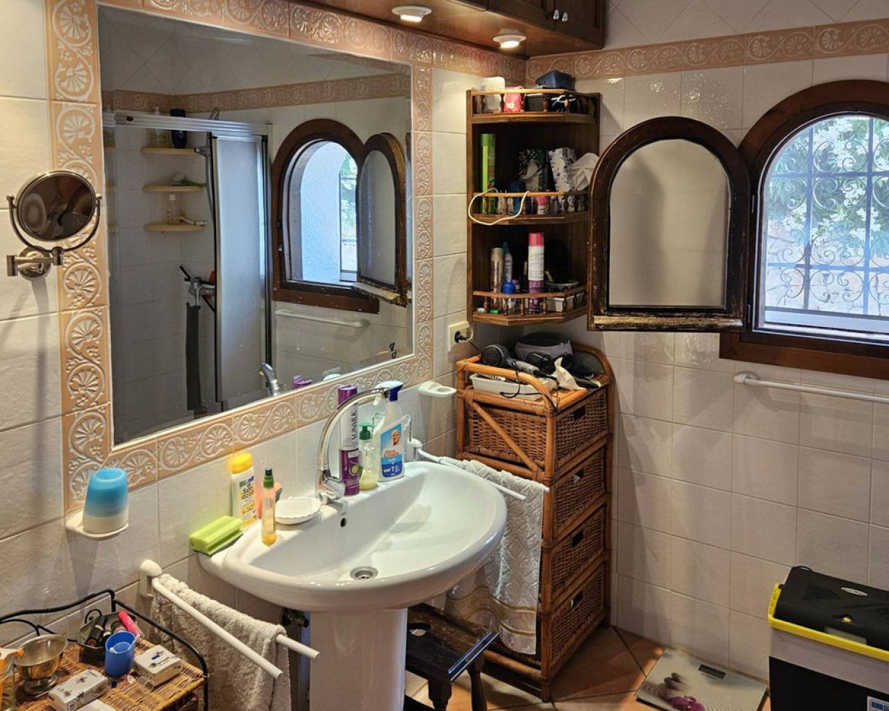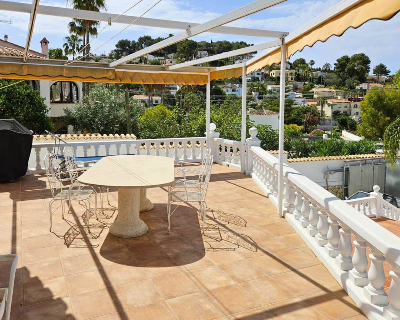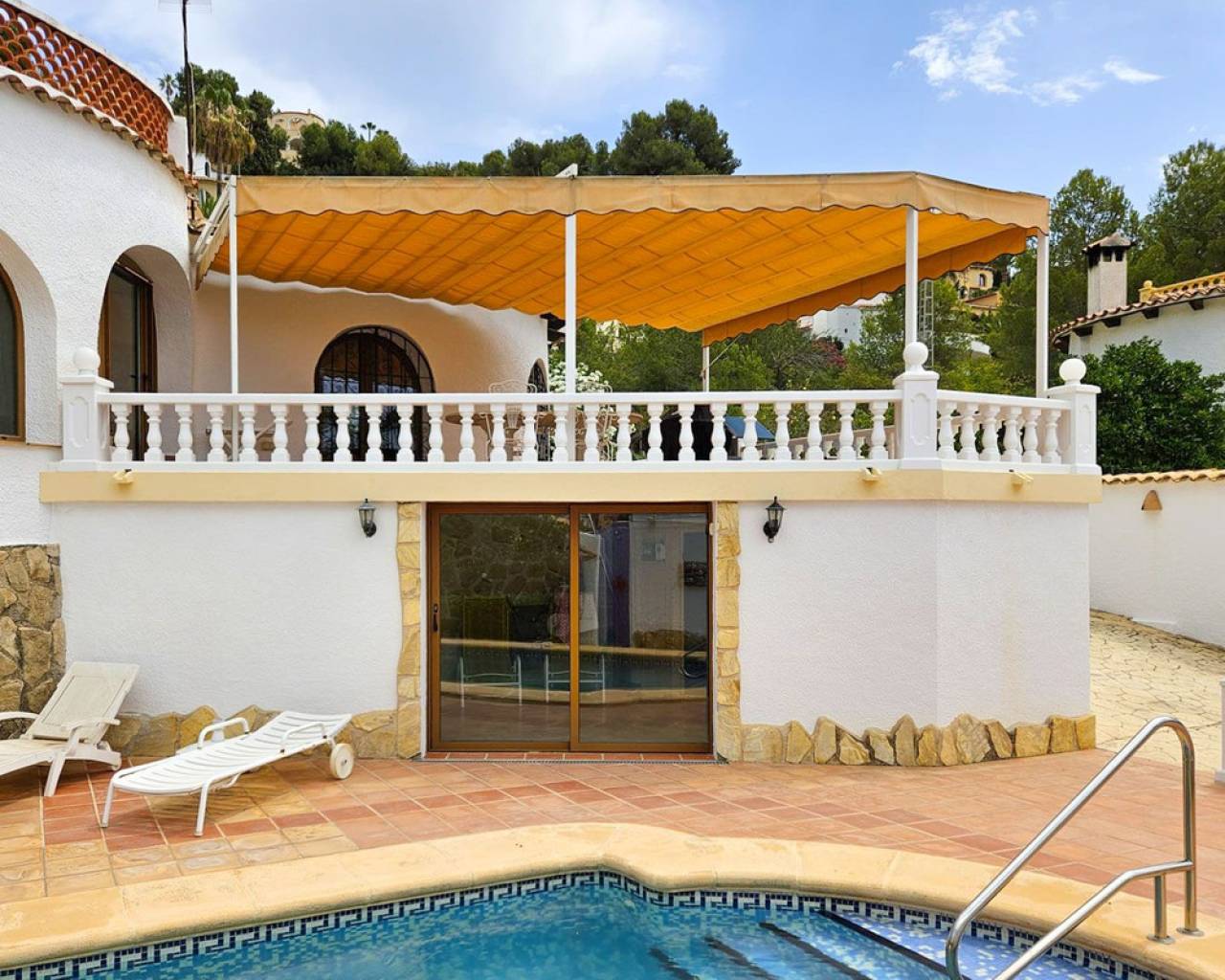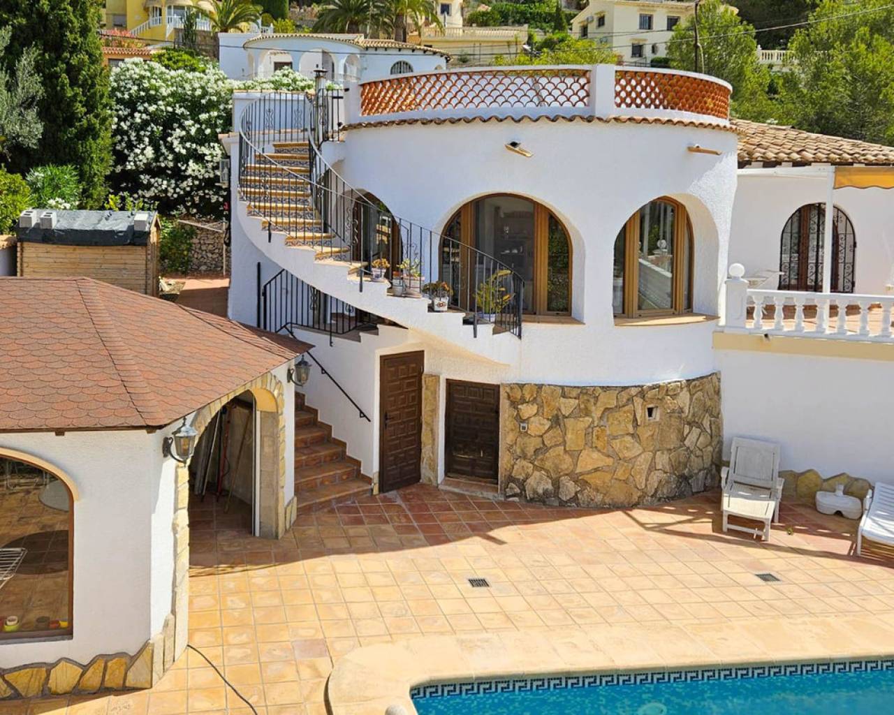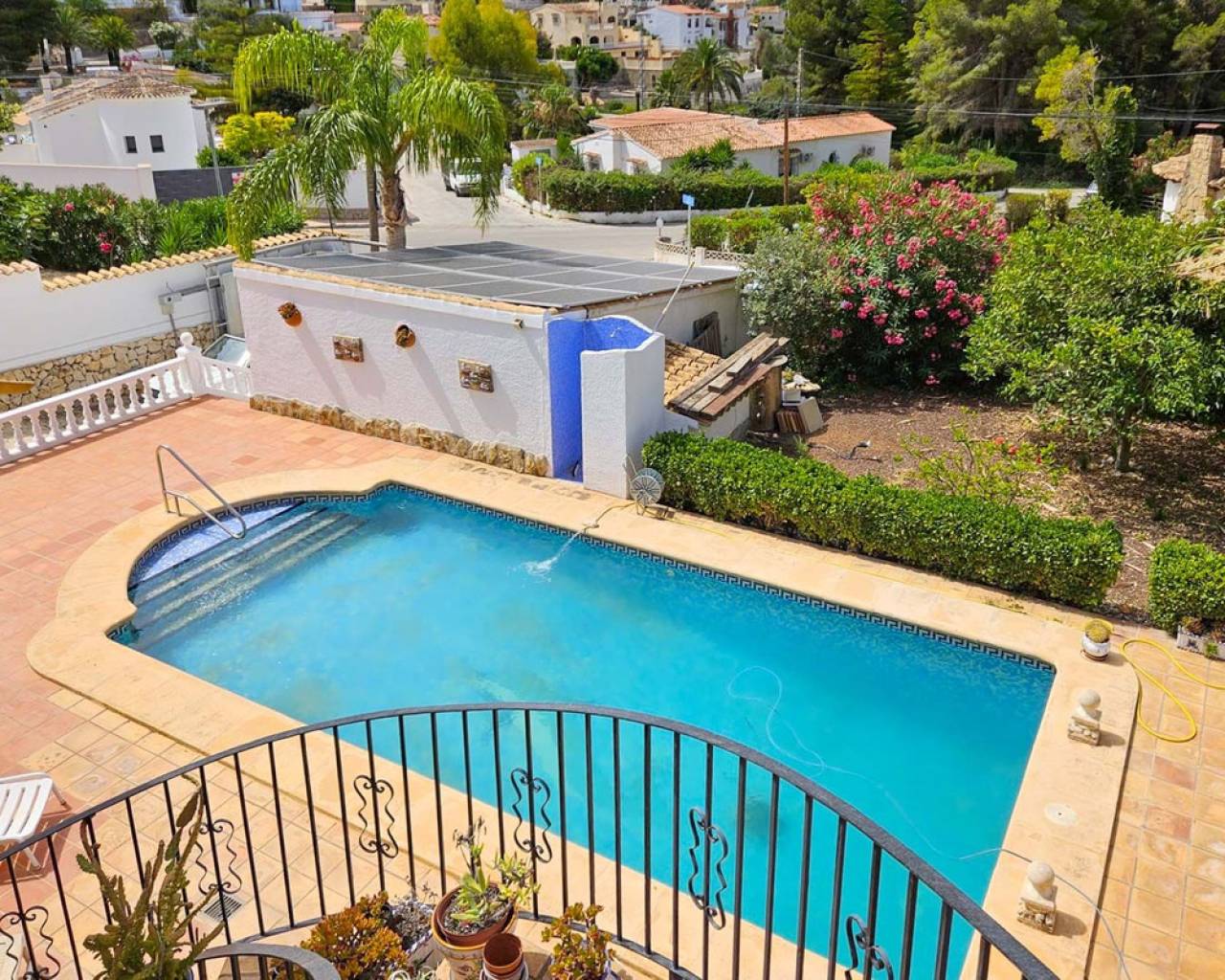 Esta preciosa villa se encuentra en una parcela plana de 780 m², ubicada en las tranquilas colinas de Benissa, dentro de una zona residencial muy apacible. Con una ubicación privilegiada a tan solo 2,5 kilómetros de la costa, la propiedad ofrece un excelente equilibrio entre paz, privacidad y un fácil acceso a las hermosas playas de la Costa Blanca. Distribuida en dos plantas, la villa cuenta con un acogedor salón con chimenea, una cocina totalmente equipada, tres amplios dormitorios y tres baños completos. Para tu comodidad, la vivienda dispone de aire acondicionado, calefacción por radiadores y paneles solares, lo que la convierte en una opción ideal para quienes buscan un hogar sostenible y energéticamente eficiente. En el exterior, una espaciosa terraza en el primer piso, con un cómodo toldo, invita a disfrutar del aire libre y de las vistas al entorno natural. Una elegante escalera de caracol conduce a la azotea, un lugar perfecto para tomar el sol desde la mañana hasta el atardecer, rodeado de panorámicas impresionantes. La piscina, rodeada de una amplia terraza solárium, ofrece el lugar ideal para relajarse y refrescarse durante los calurosos días de verano. Además, para mayor comodidad, cuenta con una ducha exterior y una encantadora terraza cubierta, perfecta para disfrutar de veladas en compañía de amigos y familiares. La villa se encuentra a tan solo cinco minutos en coche de la famosa costa de Benissa, conocida por sus aguas cristalinas y sus calas escondidas, donde podrás disfrutar de actividades acuáticas, relajarte al sol y degustar la deliciosa gastronomía local. Una propiedad que combina el estilo clásico con el confort moderno, en un entorno natural y tranquilo, ideal para vivir todo el año o disfrutar de unas vacaciones en la costa mediterránea.