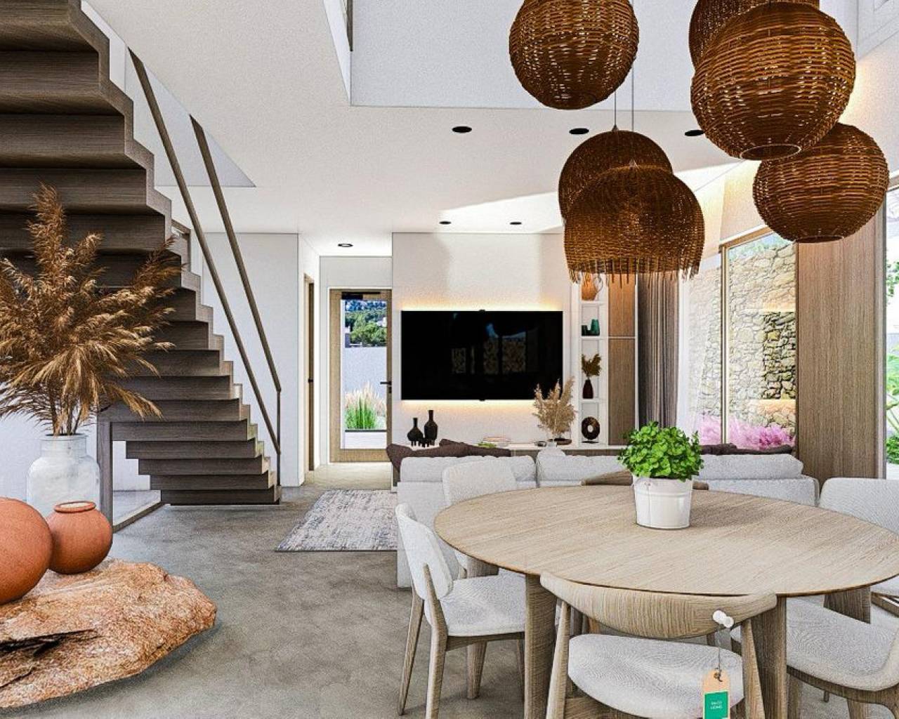 Exclusiva villa de estilo mediterráneo con vistas al Montgó y al mar. Esta espectacular casa de estilo mediterráneo está situada en la tranquila urbanización de Pinomar, a tan sólo 5 minutos en coche de la playa del Arenal de Jávea, ofrece una experiencia de vida única, con impresionantes vistas tanto al Montgó como al mar. Construida con materiales naturales como la piedra y la madera, la casa se distingue por su ubicación estratégica que garantiza privacidad y vistas inmejorables desde casi todos los ángulos. El jardín tropical y la piscina privada crean un oasis de relajación, complementado por varias zonas de estar y patios diseñados en un auténtico estilo mediterráneo. La casa se distribuye en dos plantas. En la planta baja hay un amplio salón de doble altura con grandes ventanales que inundan el espacio de luz natural y se abren directamente a la piscina. También hay un comedor, una cocina independiente totalmente equipada con los mejores electrodomésticos y muebles, un dormitorio y un baño completo. La cocina está directamente conectada con una barbacoa exterior totalmente equipada y con vistas al mar. Arriba, hay dos dormitorios en suite, cada uno con su propia terraza, creando espacios íntimos con carácter propio. Todas las habitaciones tienen un patio o jardín privado, dando a la propiedad un ambiente único e íntimo. Arriba, hay dos dormitorios en suite, cada uno con su propia terraza. Todas las habitaciones disponen de patio o jardín privado, ideal para recibir invitados. La casa dispone de cochera para dos coches y está diseñada para ofrecer el máximo confort en el día a día: baños modernos con acabados de alta calidad, estancias funcionales y ambientes acogedores, perfectos para compartir en familia o con amigos. ¡Una oportunidad única de poseer un chalet de nueva construcción a sólo 2 km de la playa!