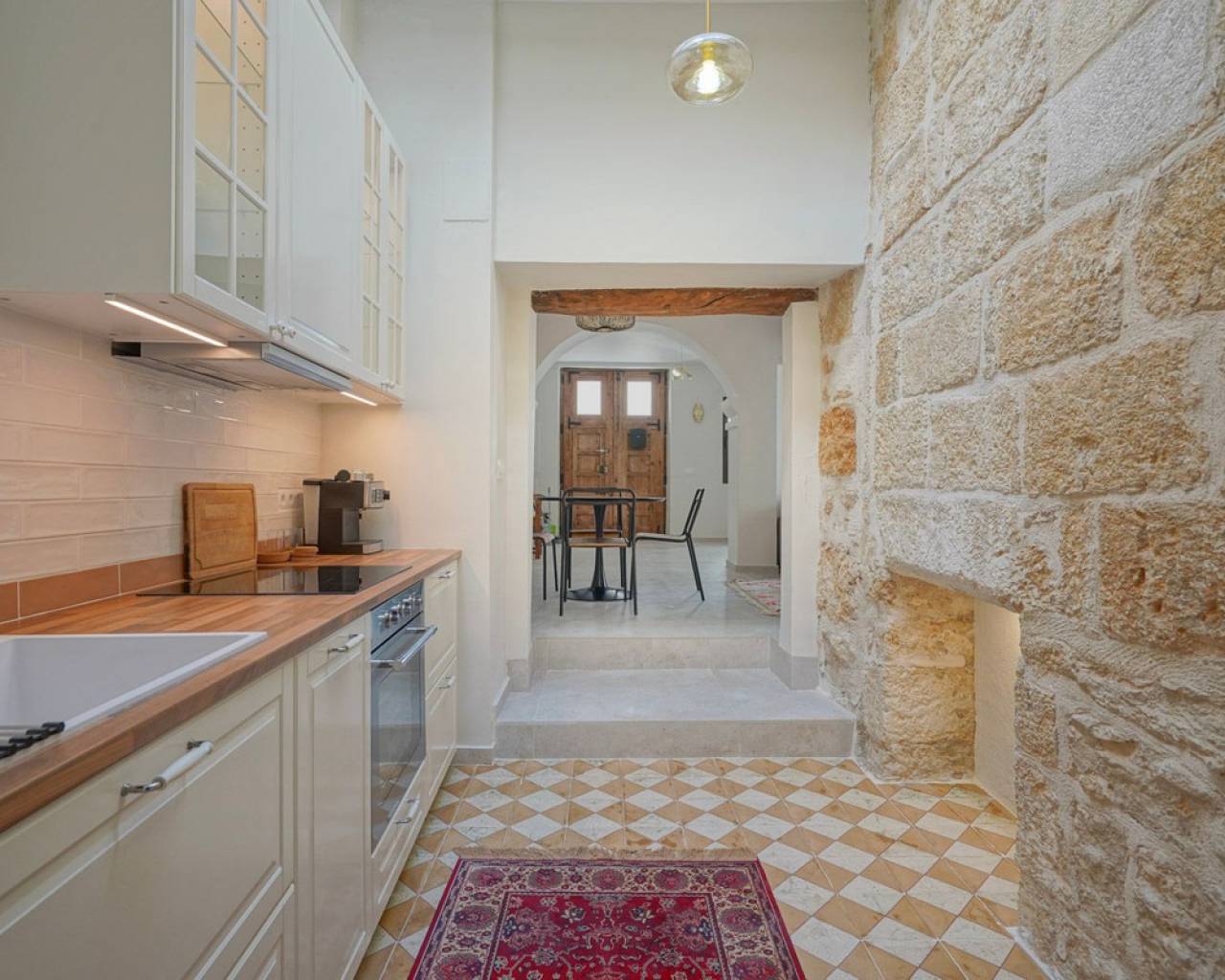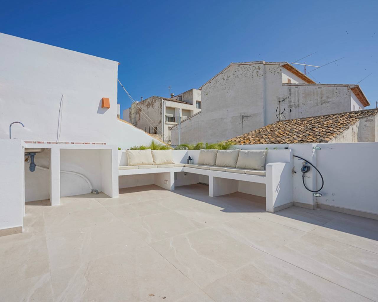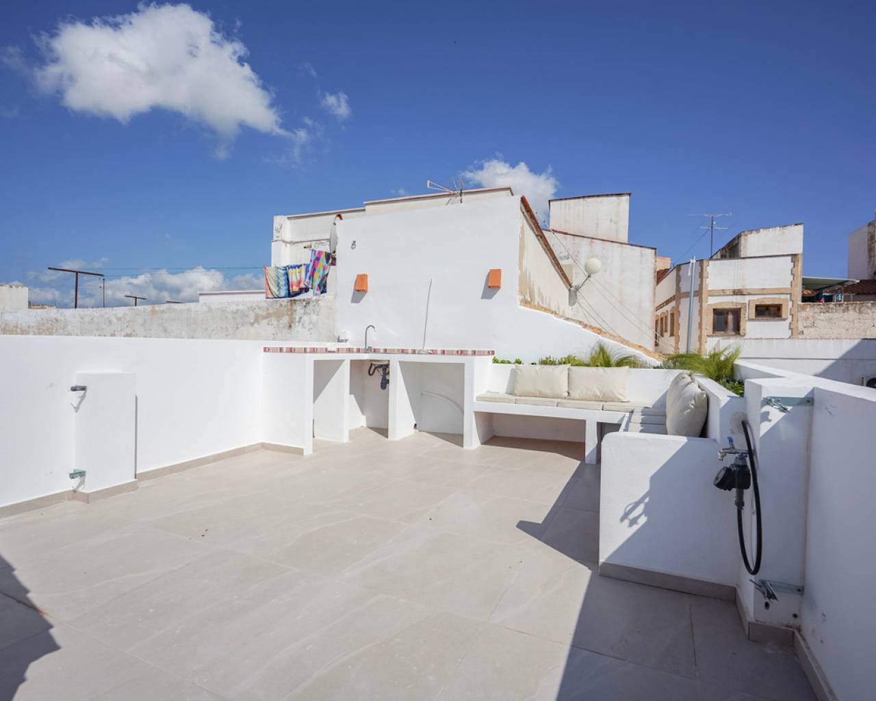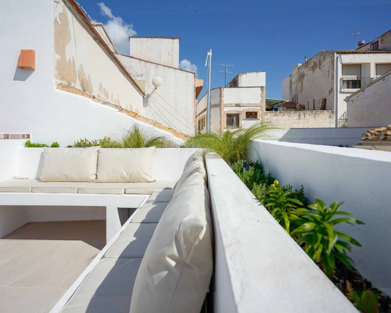 Encantadora casa de pueblo renovada en venta en el centro histórico de Jávea Le presentamos esta preciosa casa de pueblo completamente renovada, ubicada en el corazón del centro histórico de Jávea, a escasos pasos de todos los servicios esenciales. La vivienda ha sido cuidadosamente restaurada, respetando los elementos tradicionales mediterráneos como la piedra tosca y los detalles en madera, creando un equilibrio perfecto entre el confort moderno y el encanto rústico. Al acceder a la casa, nos recibe un amplio y luminoso vestíbulo que conduce al acogedor salón-comedor. La cocina, totalmente equipada, cuenta con una claraboya que aporta abundante luz natural y ventilación. Desde aquí se accede a un práctico lavadero con aseo de cortesía. Junto al salón, una sala polivalente ofrece múltiples posibilidades de uso: despacho, zona de ocio o dormitorio individual. Toda la planta baja dispone de aire acondicionado. Una elegante escalera revestida de piedra toscana conecta con la primera planta, donde se encuentra un espacioso dormitorio doble con baño en suite de diseño contemporáneo. En la segunda planta se sitúa otro dormitorio doble, también con baño privado. Ambos dormitorios cuentan con preinstalación de aire acondicionado y persianas. La tercera planta da acceso a una generosa terraza, ideal para disfrutar del clima mediterráneo. Esta azotea está equipada con zona de descanso integrada, preinstalación para una cocina exterior y previsto un sistema para toldo. Además, dispone de riego automático para las plantas que embellecen la zona del salón. Desde la terraza se pueden contemplar vistas espectaculares del centro histórico, los valles verdes que rodean Jávea, el majestuoso Montgó e incluso una panorámica parcial del mar. Esta propiedad es ideal tanto como residencia habitual, segunda vivienda con encanto o inversión con excelente potencial de alquiler, gracias a su ubicación privilegiada y su estilo único. El casco antiguo de Jávea destaca por sus estrechas calles empedradas, fachadas encaladas y arquitectura tradicional. En su centro se alza la imponente iglesia gótica de San Bartolomé, rodeada de plazas con ambiente local, tiendas, restaurantes y cafés con encanto. Aquí encontrará todos los servicios necesarios: supermercados, centros deportivos, farmacias, centros médicos y mucho más. Una propiedad singular en una de las zonas más auténticas y demandadas de Jávea. No dude en visitarla y descubrir todo lo que tiene por ofrecer.