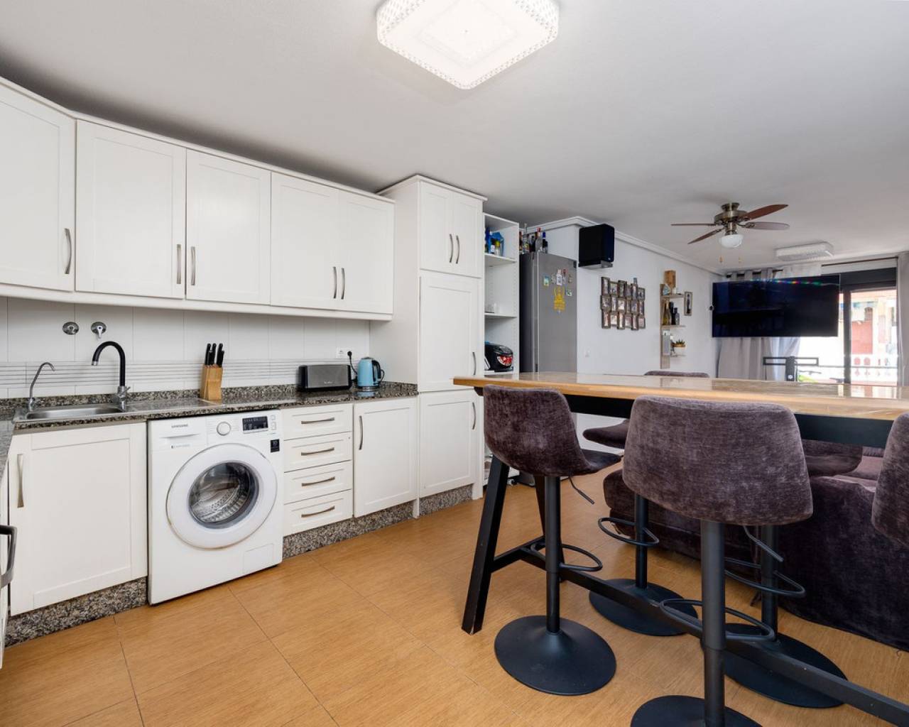Impresionante apartamento en Torrevieja con tres dormitorios y dos baños, ubicado a solo 100 metros de la playa. Espacioso y luminoso, con una superficie de 104 m², está completamente amueblado y es perfecto tanto para vacaciones como para vivir todo el año. El apartamento se encuentra en la tercera planta de un edificio moderno con ascensor. La cocina es nueva y los baños han sido renovados para ofrecer el máximo confort. ¡Una excelente opción para quienes valoran la comodidad, la calidad y la cercanía al mar!
