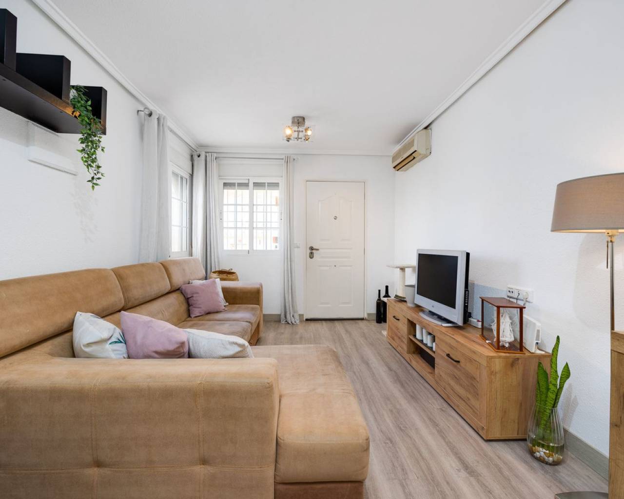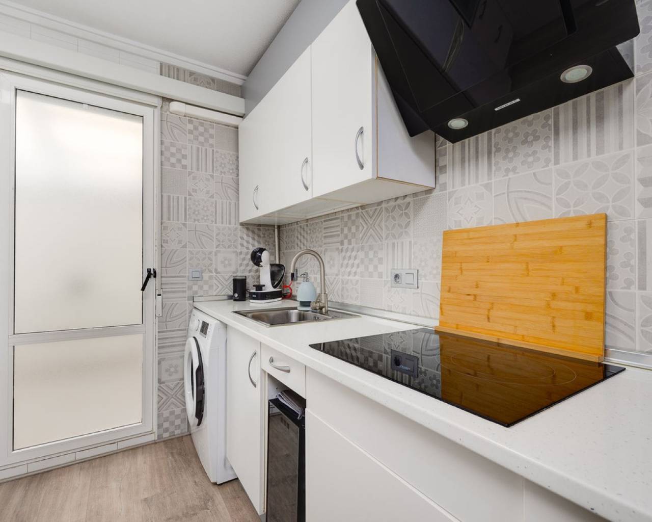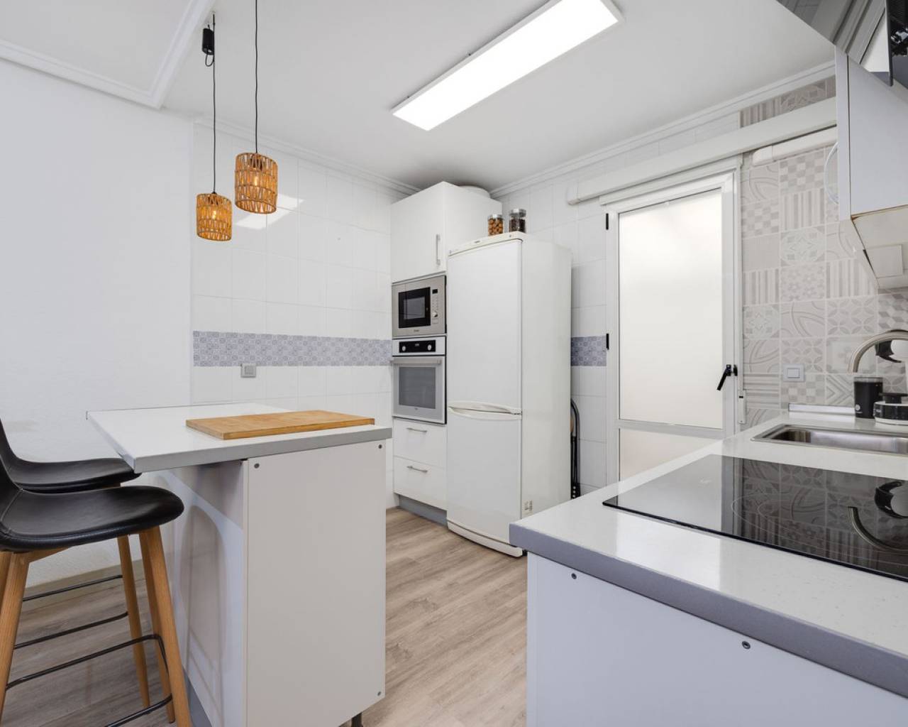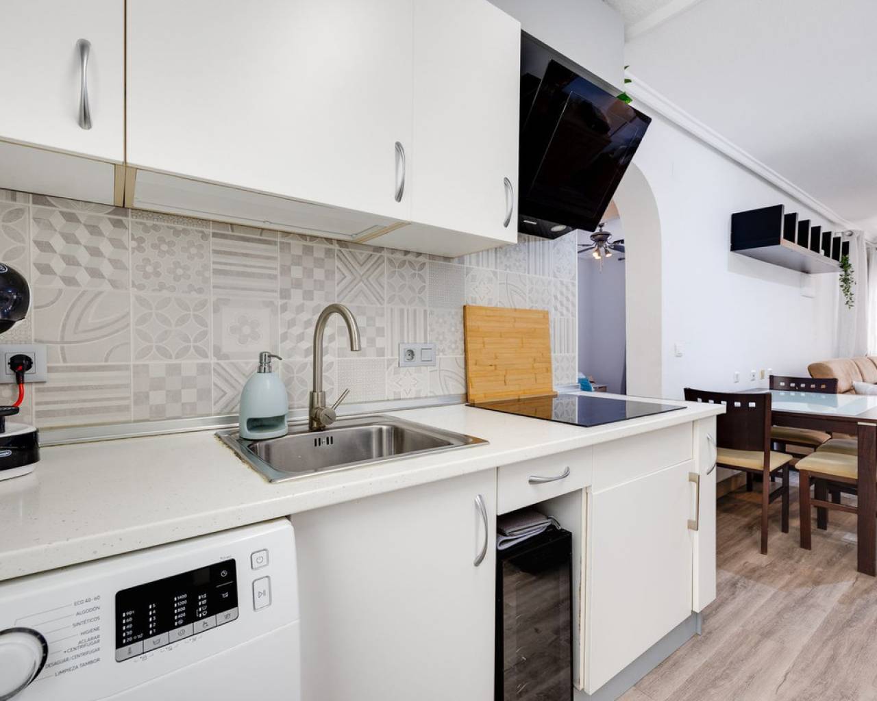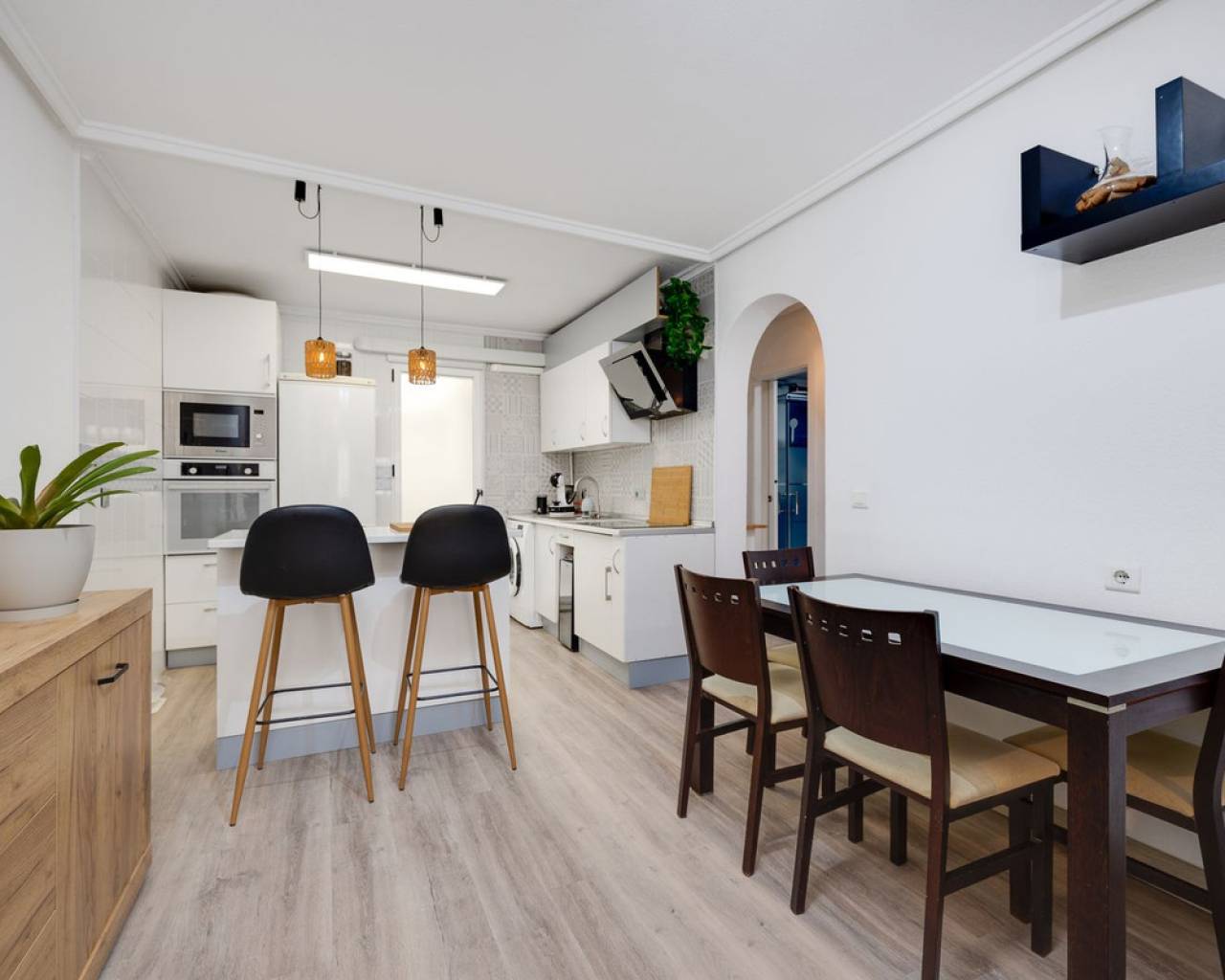 Un elegante apartamento en planta baja de aproximadamente 65 m², recientemente renovado y listo para entrar a vivir. La propiedad cuenta con una moderna cocina americana de concepto abierto, un amplio salón y dos cómodos dormitorios dobles. Además, dispone de un espacio adicional actualmente utilizada como lavandería, lo que aporta mayor comodidad y espacio de almacenamiento. El apartamento incluye un baño completo. Antes de entrar al apartamento, te recibe un patio privado, perfecto para crear una acogedora zona de barbacoa o un espacio exterior para disfrutar con familiares y amigos. La comunidad ofrece excelentes comodidades, incluyendo una piscina comunitaria, una pista de mini fútbol y una pista de tenis. La ubicación es realmente inmejorable: a pocos pasos del centro comercial Habaneras, así como de colegios, bares y restaurantes. Todo lo que necesitas está muy cerca, lo que convierte este apartamento en una opción ideal para una vida cómoda y práctica.