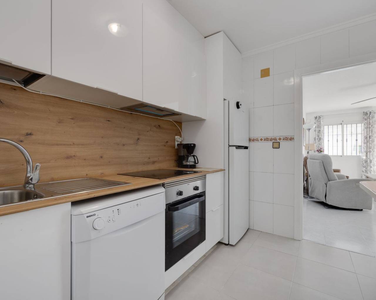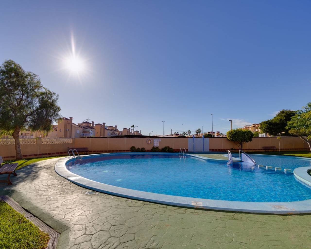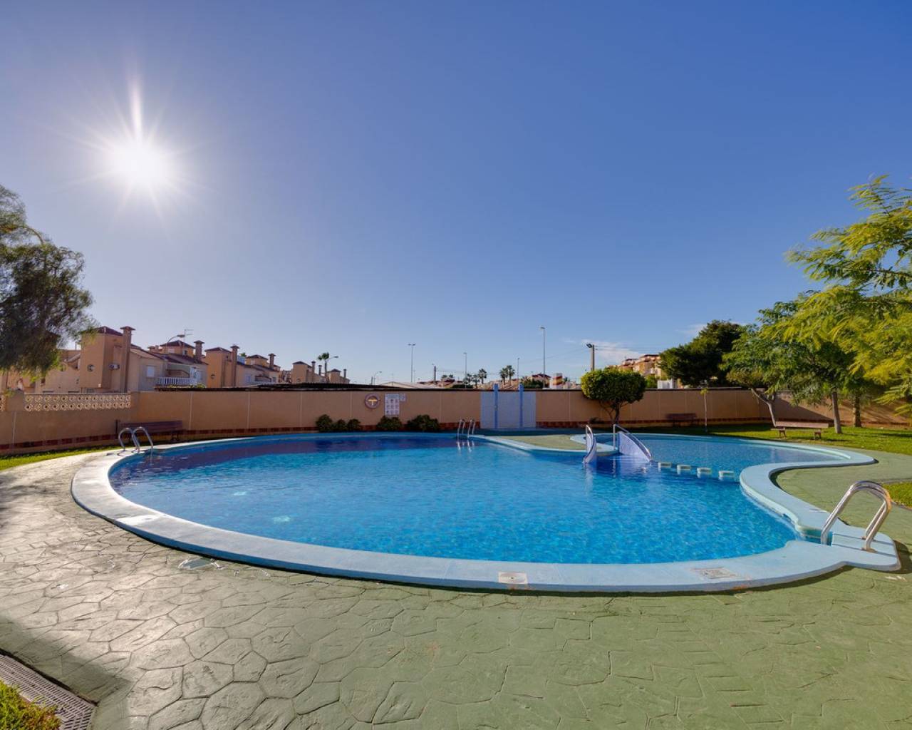 Apartamentos Soleados, planta baja En venta: Apartamento tipo bungalow en planta baja Luminoso apartamento tipo bungalow en planta baja con tres dormitorios, 69 m², orientado al suroeste, por lo que recibe sol durante todo el día. La propiedad cuenta con un jardín de 17 m², perfecto para colocar una mesa para desayunar y almorzar. También hay una ducha exterior, muy conveniente para tomar el sol, y se pueden colocar tumbonas fácilmente en el jardín. En el interior, el apartamento dispone de tres dormitorios, una cocina nueva y dos baños. La ubicación está a poca distancia a pie del restaurante Abbey Tavern, en La Florida. Todos los sábados hay un mercado local cerca. Bares y restaurantes están a solo 5 minutos, y a solo 1 km se encuentra el centro comercial La Zenia Boulevard y a 1 km el mar. El complejo ofrece dos piscinas para los residentes.