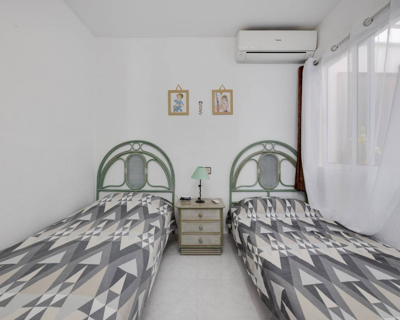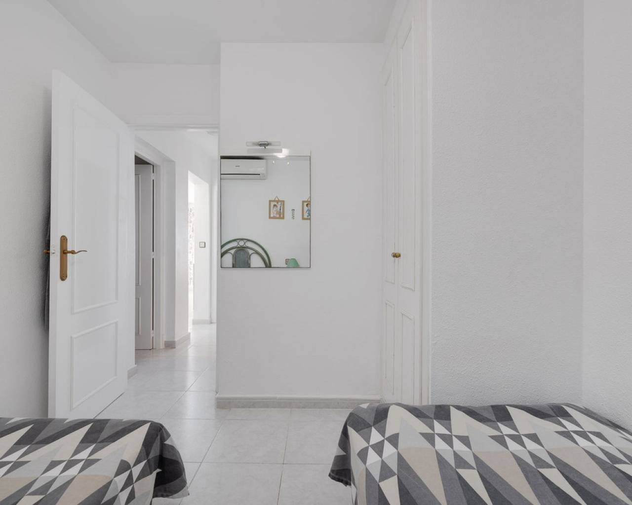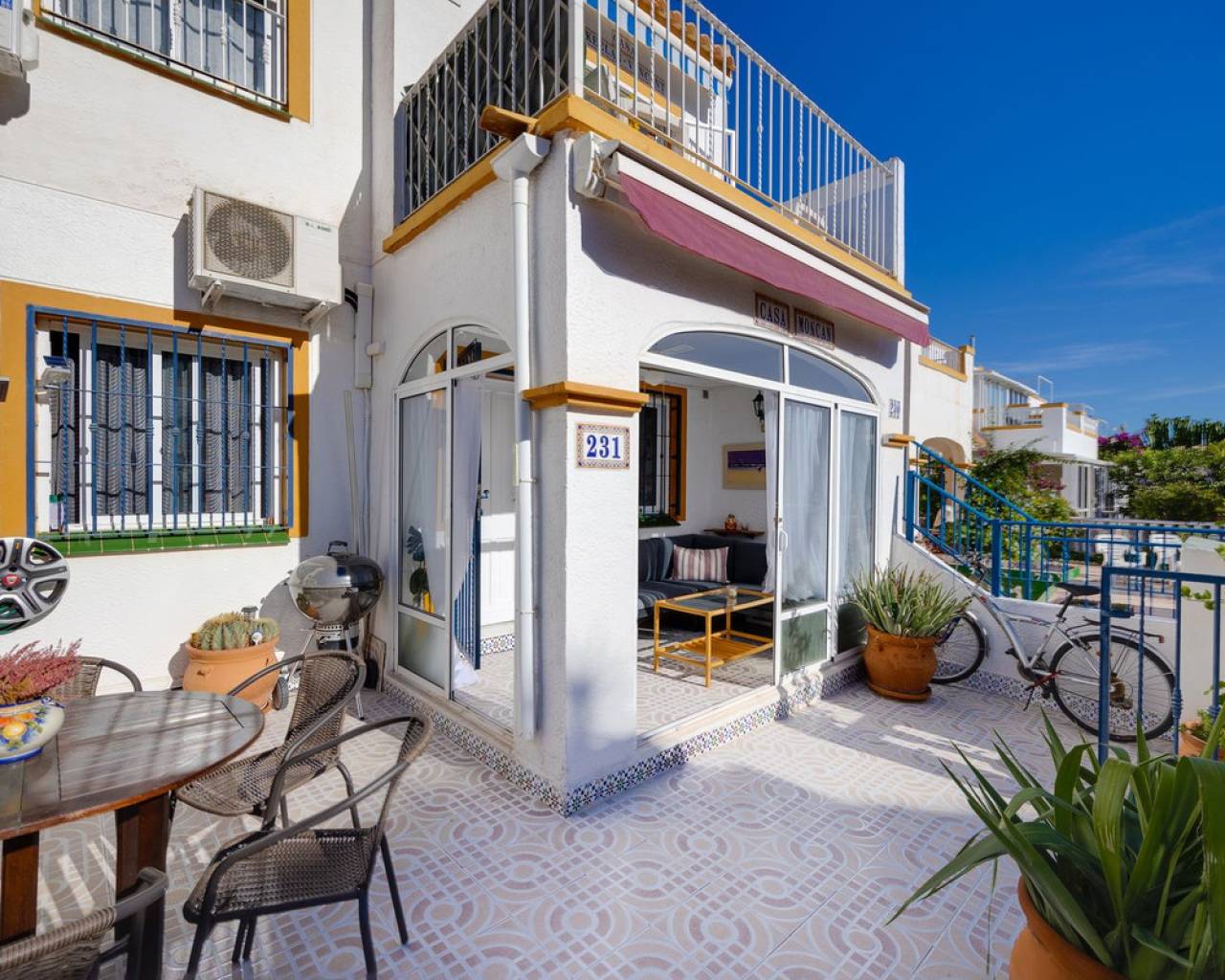 Apartamentos Soleados, planta baja En venta: Apartamento tipo bungalow en planta baja Luminoso apartamento tipo bungalow en planta baja con tres dormitorios, 69 m², orientado al suroeste, por lo que recibe sol durante todo el día. La propiedad cuenta con un jardín de 17 m², perfecto para colocar una mesa para desayunar y almorzar. También hay una ducha exterior, muy conveniente para tomar el sol, y se pueden colocar tumbonas fácilmente en el jardín. En el interior, el apartamento dispone de tres dormitorios, una cocina nueva y dos baños. La ubicación está a poca distancia a pie del restaurante Abbey Tavern, en La Florida. Todos los sábados hay un mercado local cerca. Bares y restaurantes están a solo 5 minutos, y a solo 1 km se encuentra el centro comercial La Zenia Boulevard y a 1 km el mar. El complejo ofrece dos piscinas para los residentes.