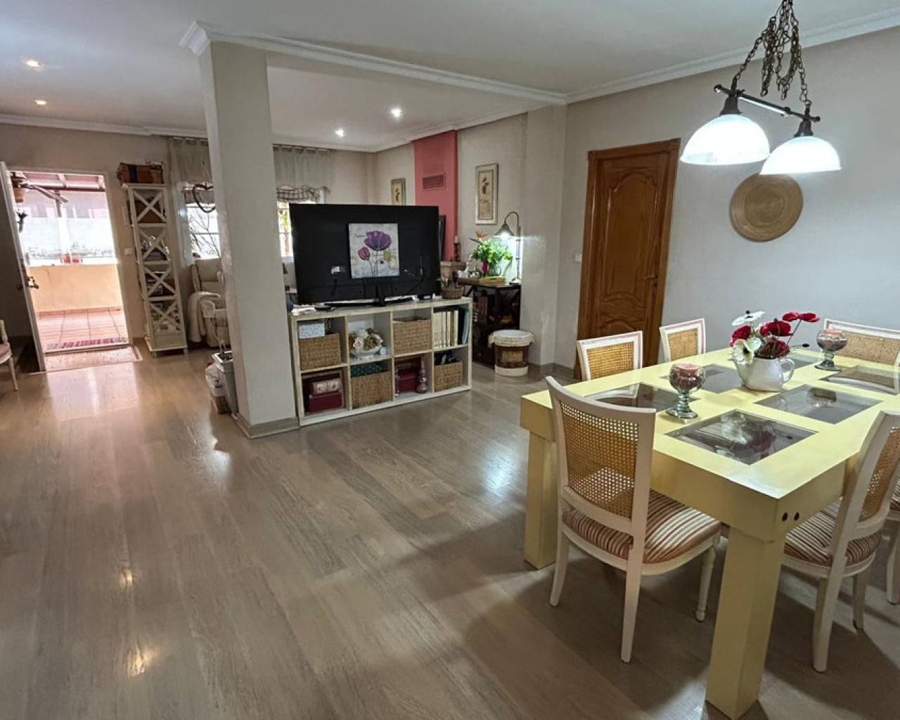Esta encantadora casa adosada en Los Montesinos ofrece un espacio habitable cómodo y bien cuidado. Hay tres dormitorios espaciosos, dos baños y un aseo adicional. La cocina independiente, totalmente equipada con electrodomésticos modernos, es un espacio práctico y agradable para cocinar. La villa está en buenas condiciones y cada dormitorio tiene armarios empotrados que proporcionan mucho espacio de almacenamiento. El amplio y luminoso salón está equipado con aire acondicionado y calefacción, lo que garantiza un confort óptimo durante todo el año. Una chimenea acogedora añade calidez y carácter a una habitación. El espacio al aire libre es una característica importante de esta propiedad. El jardín privado, la amplia terraza y el solárium ofrecen mucho espacio para relajarse y disfrutar del sol. El balcón ofrece espacio adicional para relajarse y una hermosa vista. Para mayor comodidad, la villa también dispone de garaje privado y lavadero. También hay una cabaña de madera en el solarium que ofrece espacio adicional e incluso una habitación de invitados. La propiedad está situada en una zona bien comunicada, a solo 10 minutos en coche de la playa, 30 minutos del aeropuerto y 2 minutos de los servicios locales. Los amantes del golf apreciarán la proximidad al campo de golf, a solo 15 minutos. Esta villa parcialmente amueblada y lista para mudarse es una oportunidad fantástica para cualquiera que busque una casa cómoda en una excelente ubicación.