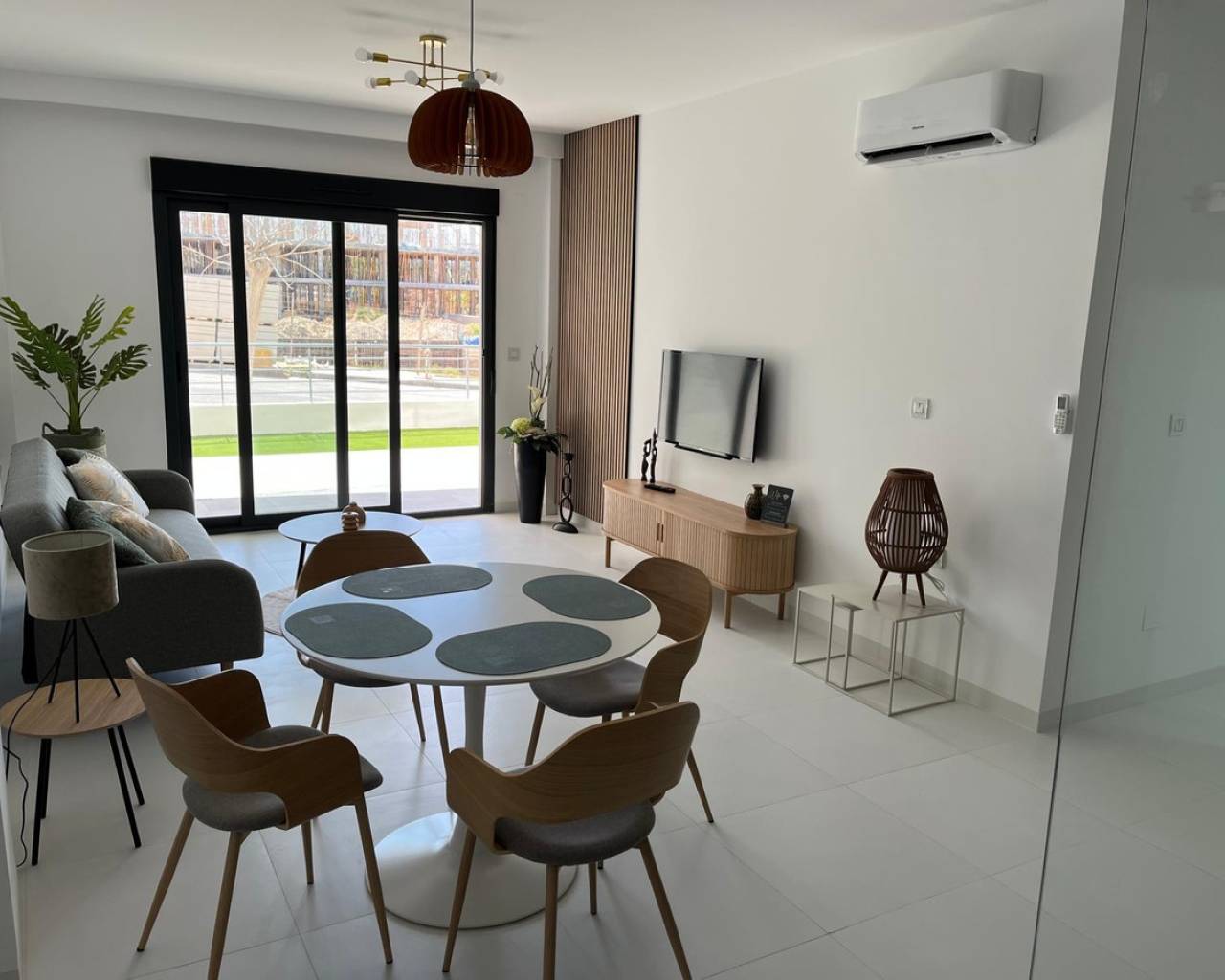 Este moderno apartamento de 2 dormitorios y 2 baños está ubicado en San Miguel de Salinas, en una ubicación privilegiada cerca de todos los servicios y áreas recreativas. La casa de 75 m² cuenta con una cocina americana totalmente equipada, un luminoso salón y dos dormitorios. La casa da a un porche y jardín privados, que dan a una terraza cubierta de 30 m² y a un amplio jardín de 40 m². Resumen de los eventos más importantes: 2 armarios empotrados Muebles Equipo incluido en el precio Instalación de aire acondicionado y climatización Puertas seguras e intercomunicador Se encuentra en la planta baja y es de fácil acceso. Ubicación ideal: A sólo 15 minutos de la playa A 40 minutos del aeropuerto A 10 minutos del campo de golf A 10 minutos de áreas recreativas y servicios. Ideal como residencia principal o secundaria. ¡Lista para entrar a vivir!