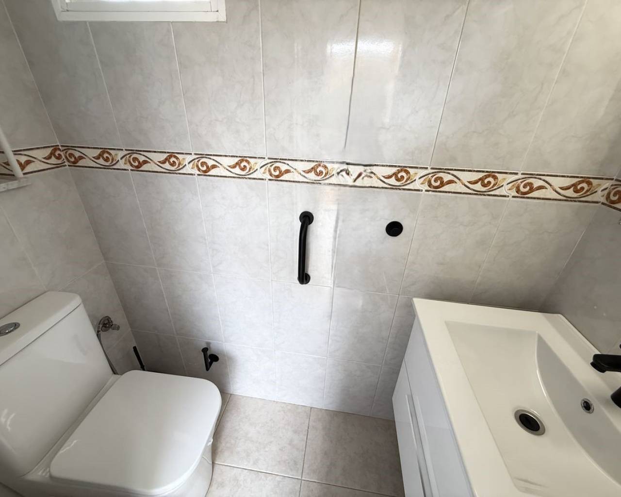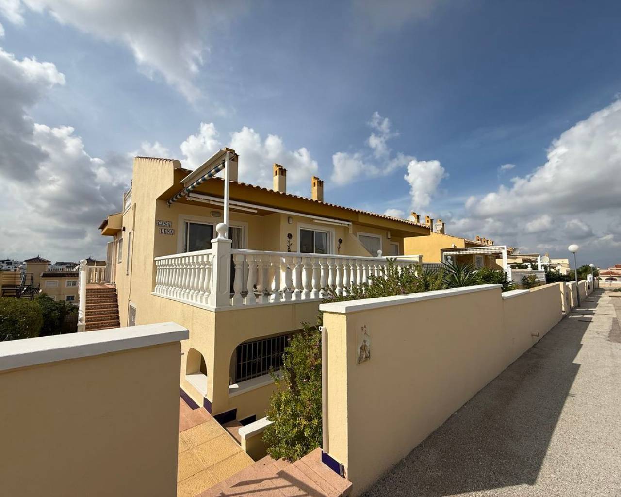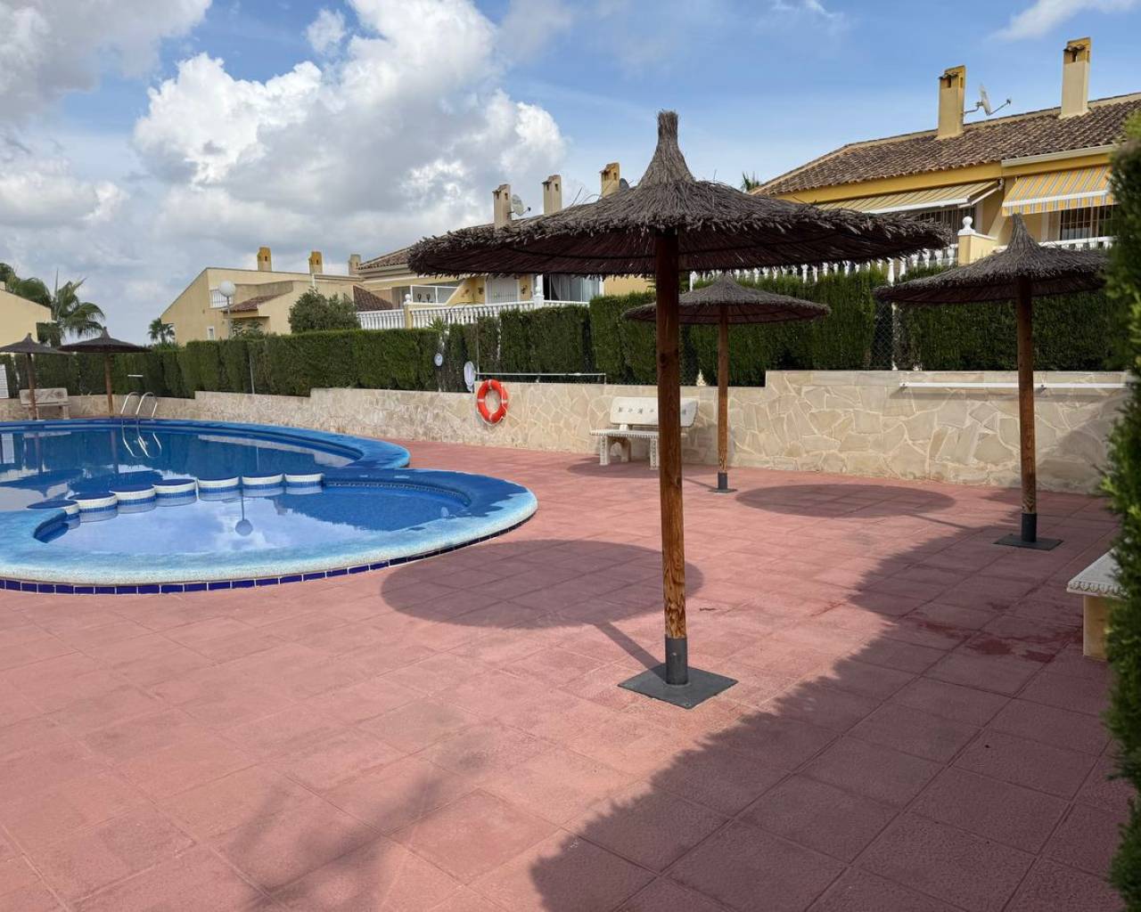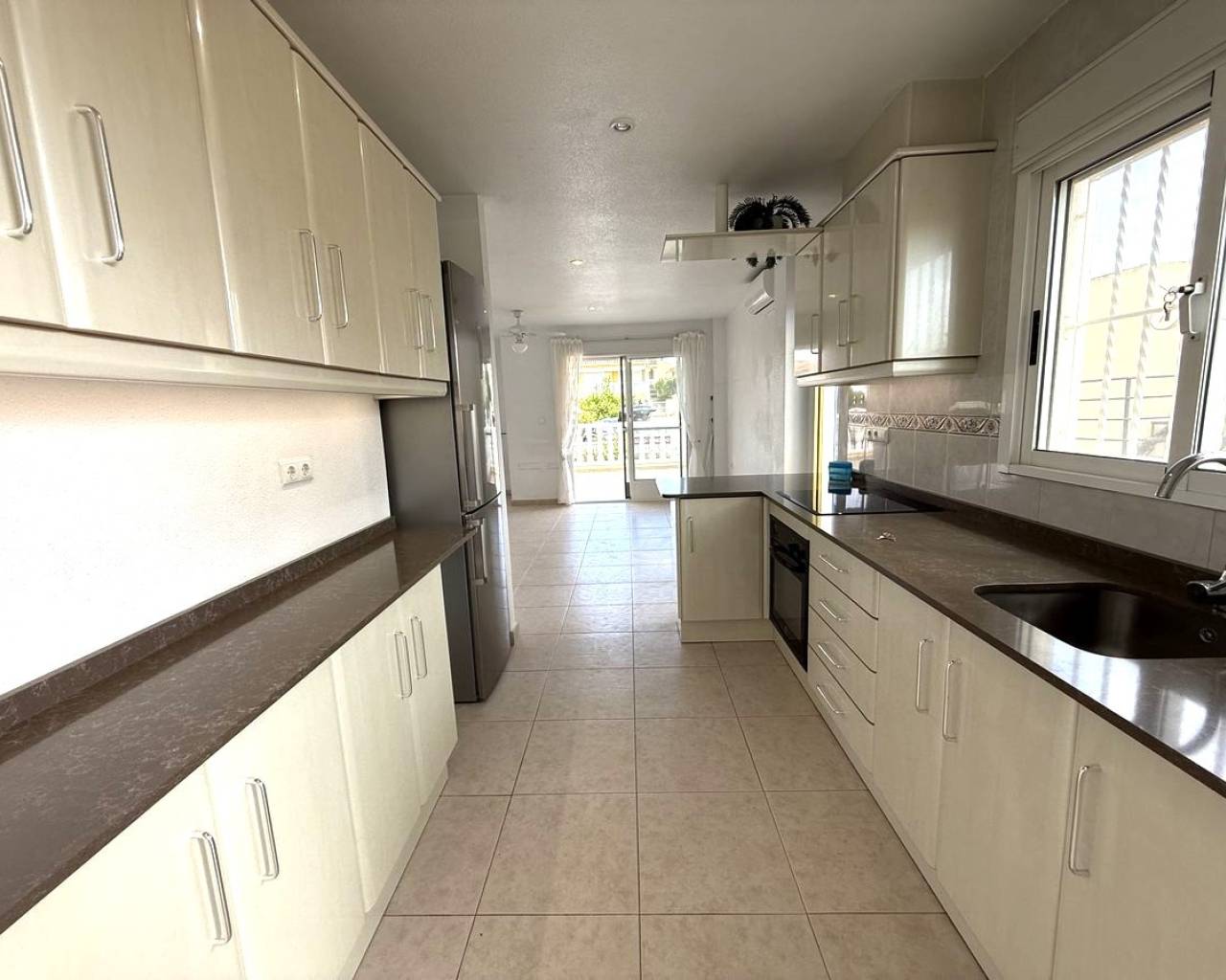 Esta preciosa villa adosada, modelo Maite, se encuentra en la codiciada zona de Benimar, Rojales, en la soleada Costa Blanca. La propiedad ofrece una amplia y luminosa vivienda y un alojamiento versátil en dos plantas, lo que la hace ideal para familias, como vivienda para invitados o como vivienda de alquiler. En la planta principal, se encuentra una moderna cocina totalmente equipada, un cómodo dormitorio doble, un aseo y un baño con ducha. El salón-comedor de planta abierta es muy luminoso y cuenta con amplios ventanales que dan a un amplio balcón con vistas a los jardines y al aparcamiento comunitarios. La vivienda cuenta con aparcamiento privado y está situada justo enfrente de la atractiva piscina comunitaria de agua salada. La planta baja, con acceso a través de una entrada independiente, ofrece un alojamiento independiente perfecto para invitados o familias numerosas. Consta de dos dormitorios dobles, una segunda cocina totalmente equipada, un lavadero y trastero, bañp con bañera y amplios ventanales que dan a una terraza privada. Unas escaleras exteriores conducen a un espacioso solárium en la azotea, que ofrece espacio adicional al aire libre para relajarse y disfrutar del sol. También cuenta con dos prácticos trasteros: uno en el solárium y otro en la parte trasera de la propiedad. Las características adicionales incluyen aire acondicionado, armarios empotrados, mosquiteras y toldos. La villa se vende sin amueblar, lo que ofrece una fantástica oportunidad para personalizar y crear su propio refugio mediterráneo. BENIMAR es una zona residencial muy popular con su propio centro comercial, que incluye bares, restaurantes, tiendas e incluso un veterinario. También cuenta con un hermoso parque con zona de juegos infantiles y fuente, amplio aparcamiento y numerosos senderos para caminar y andar en bicicleta. Se encuentra a poca distancia a pie de Rojales y Benijófar, a solo 10 minutos en coche de las hermosas playas doradas de Guardamar del Segura y a 30 minutos en coche del aeropuerto de Alicante. Está rodeado de algunos de los mejores campos de golf, siendo La Marquesa (Ciudad Quesada) y La Finca (Algorfa) los más cercanos.