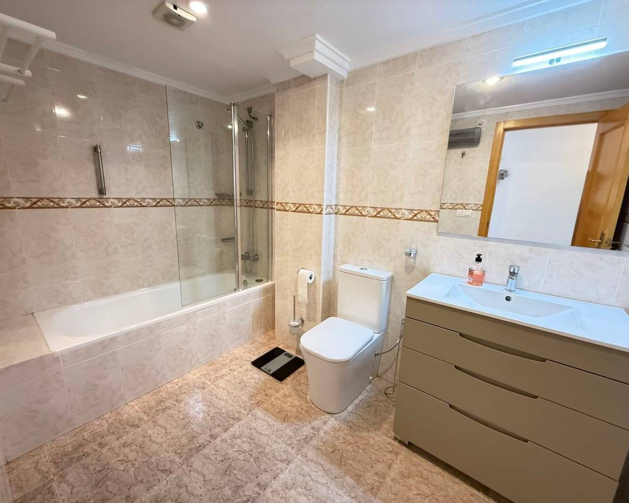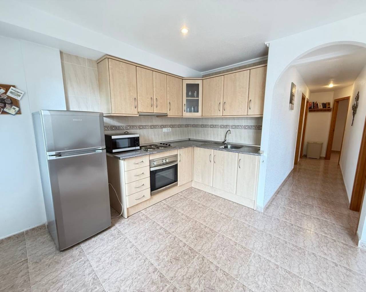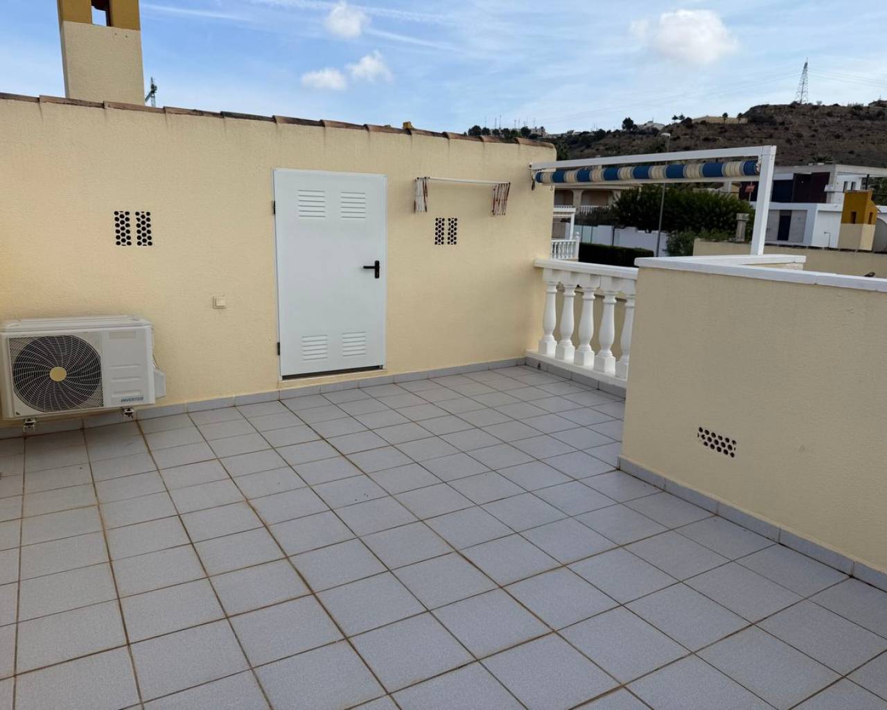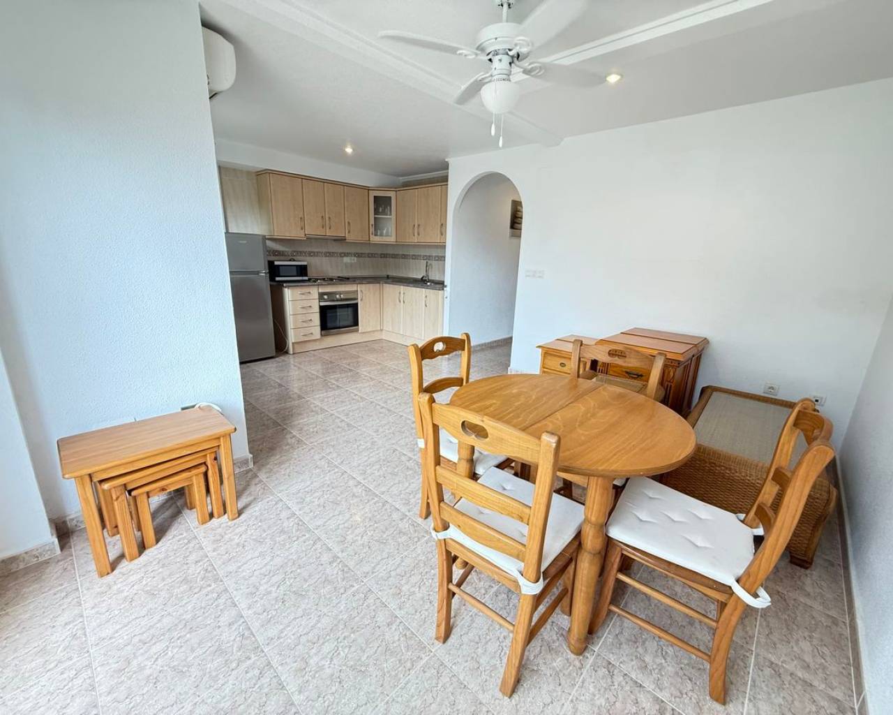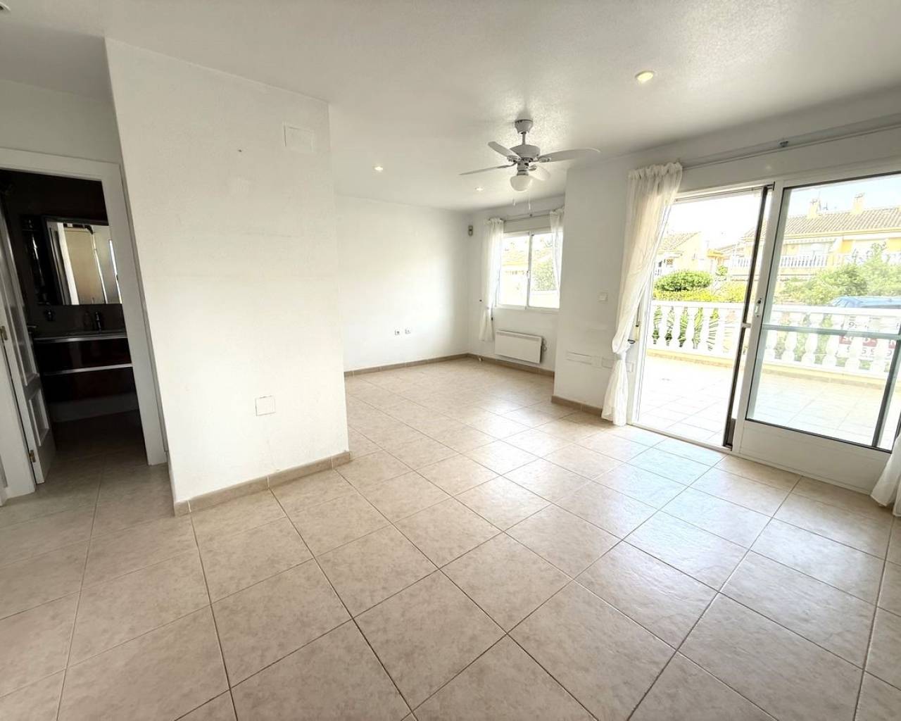 Esta preciosa villa adosada, modelo Maite, se encuentra en la codiciada zona de Benimar, Rojales, en la soleada Costa Blanca. La propiedad ofrece una amplia y luminosa vivienda y un alojamiento versátil en dos plantas, lo que la hace ideal para familias, como vivienda para invitados o como vivienda de alquiler. En la planta principal, se encuentra una moderna cocina totalmente equipada, un cómodo dormitorio doble, un aseo y un baño con ducha. El salón-comedor de planta abierta es muy luminoso y cuenta con amplios ventanales que dan a un amplio balcón con vistas a los jardines y al aparcamiento comunitarios. La vivienda cuenta con aparcamiento privado y está situada justo enfrente de la atractiva piscina comunitaria de agua salada. La planta baja, con acceso a través de una entrada independiente, ofrece un alojamiento independiente perfecto para invitados o familias numerosas. Consta de dos dormitorios dobles, una segunda cocina totalmente equipada, un lavadero y trastero, bañp con bañera y amplios ventanales que dan a una terraza privada. Unas escaleras exteriores conducen a un espacioso solárium en la azotea, que ofrece espacio adicional al aire libre para relajarse y disfrutar del sol. También cuenta con dos prácticos trasteros: uno en el solárium y otro en la parte trasera de la propiedad. Las características adicionales incluyen aire acondicionado, armarios empotrados, mosquiteras y toldos. La villa se vende sin amueblar, lo que ofrece una fantástica oportunidad para personalizar y crear su propio refugio mediterráneo. BENIMAR es una zona residencial muy popular con su propio centro comercial, que incluye bares, restaurantes, tiendas e incluso un veterinario. También cuenta con un hermoso parque con zona de juegos infantiles y fuente, amplio aparcamiento y numerosos senderos para caminar y andar en bicicleta. Se encuentra a poca distancia a pie de Rojales y Benijófar, a solo 10 minutos en coche de las hermosas playas doradas de Guardamar del Segura y a 30 minutos en coche del aeropuerto de Alicante. Está rodeado de algunos de los mejores campos de golf, siendo La Marquesa (Ciudad Quesada) y La Finca (Algorfa) los más cercanos.