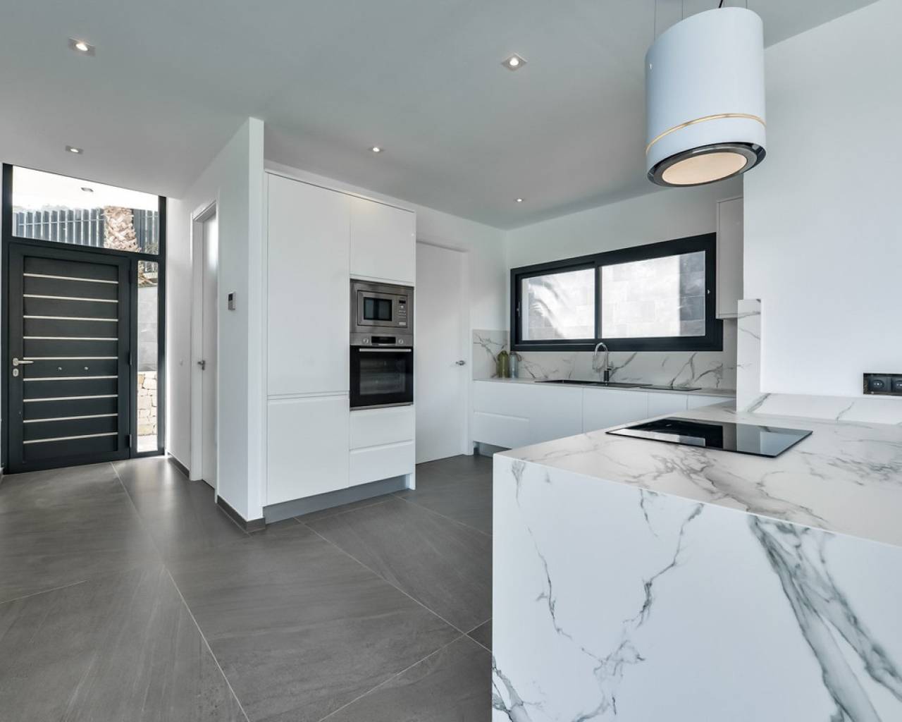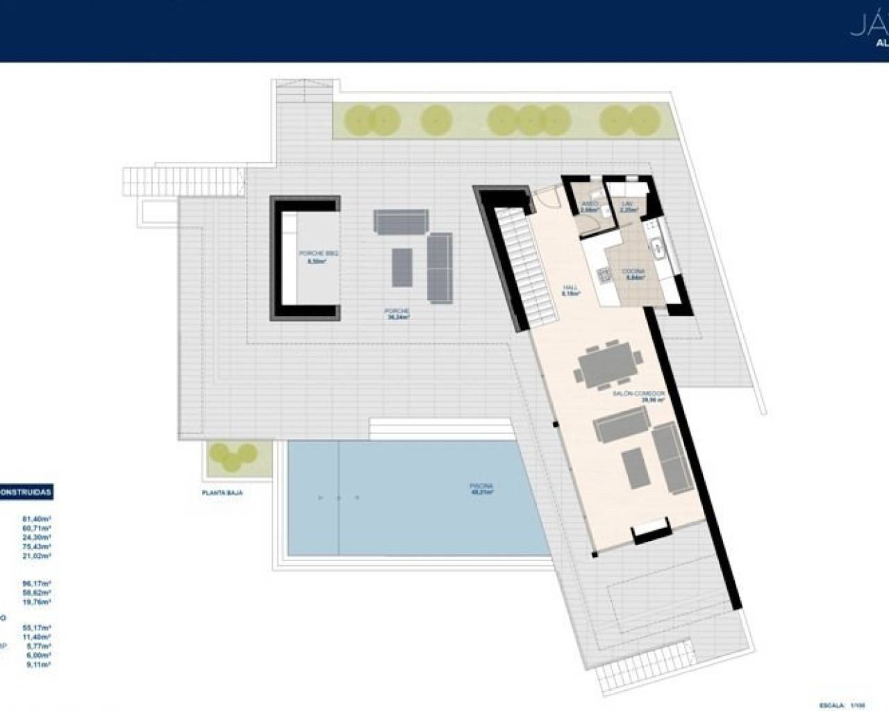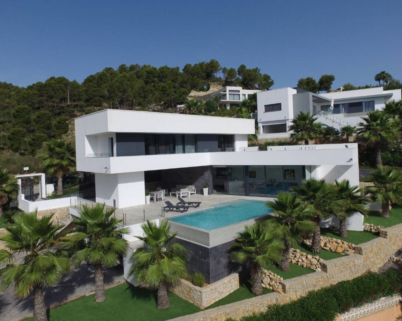 Moderna villa de lujo con vistas al mar en venta en Javea Esta moderna villa ofrece un cómodo entorno residencial en una excelente ubicación en Javea, con vistas despejadas a las verdes colinas y al mar Mediterráneo. En días claros, el panorama se extiende incluso hasta la isla de Ibiza. El diseño combina líneas limpias y arquitectura moderna con sutiles toques clásicos y materiales de alta calidad. Descripción La propiedad cuenta con un garaje doble con puerta automática y un amplio sótano. En la planta baja hay un amplio salón-comedor, una cocina totalmente equipada con lavadero y un aseo de invitados. A través de las grandes puertas correderas se accede a la terraza cubierta con zona de barbacoa y a la terraza solárium contigua con piscina infinita. En la planta superior hay tres amplios dormitorios y dos baños. El dormitorio principal tiene un baño en suite y acceso directo a la gran terraza de la azotea. Características Parcela completamente vallada con muros y verjasPuerta de acceso eléctrica y entrada peatonal independienteMucha luz naturalAire acondicionado central para toda la casaCalefacción mediante bomba de calor con apoyo de energía solarJardín aterrazado con plantas mediterráneas y sistema de riego centralizadoGaraje doble y amplio sótanoPor qué visitar esta villa Vistas al mar Mediterráneo hasta IbizaSin tiempo de espera para la construcciónEficiente energéticamente (etiqueta A)Moderna, cómoda y lujosaPiscina infinita con amplia terraza soláriumAmplios dormitorios con acceso a la azoteaCocina completa con electrodomésticos empotrados y mobiliario de alta calidadLa villa ofrece una combinación de confort moderno en una buena ubicación. Ideal para quienes buscan una vivienda de lujo en venta en Javea con vistas al mar. ¿Desea visitar esta villa? Concierte una cita con uno de nuestros agentes.