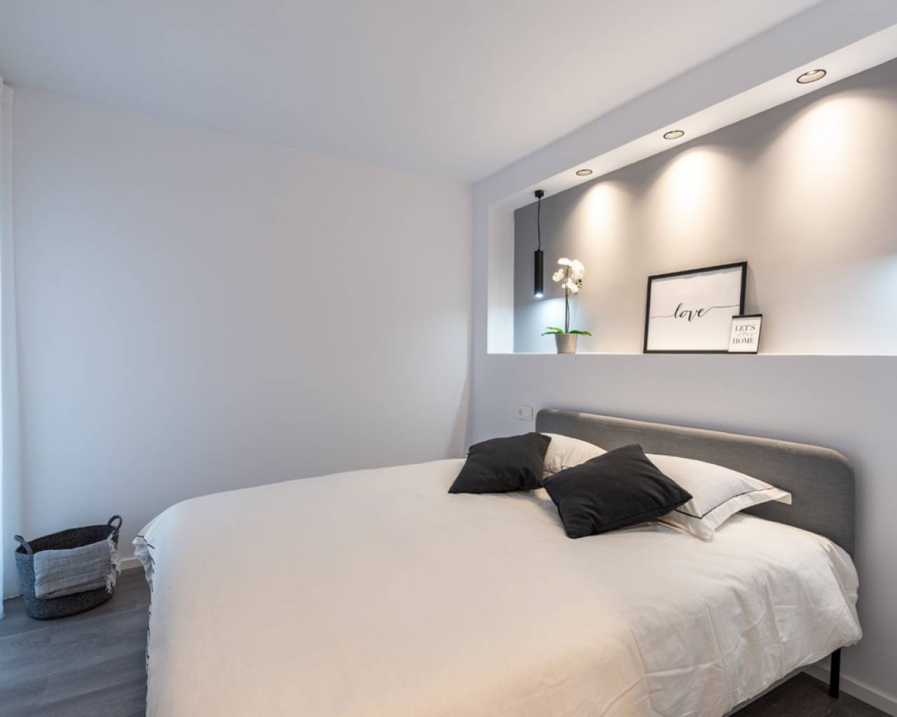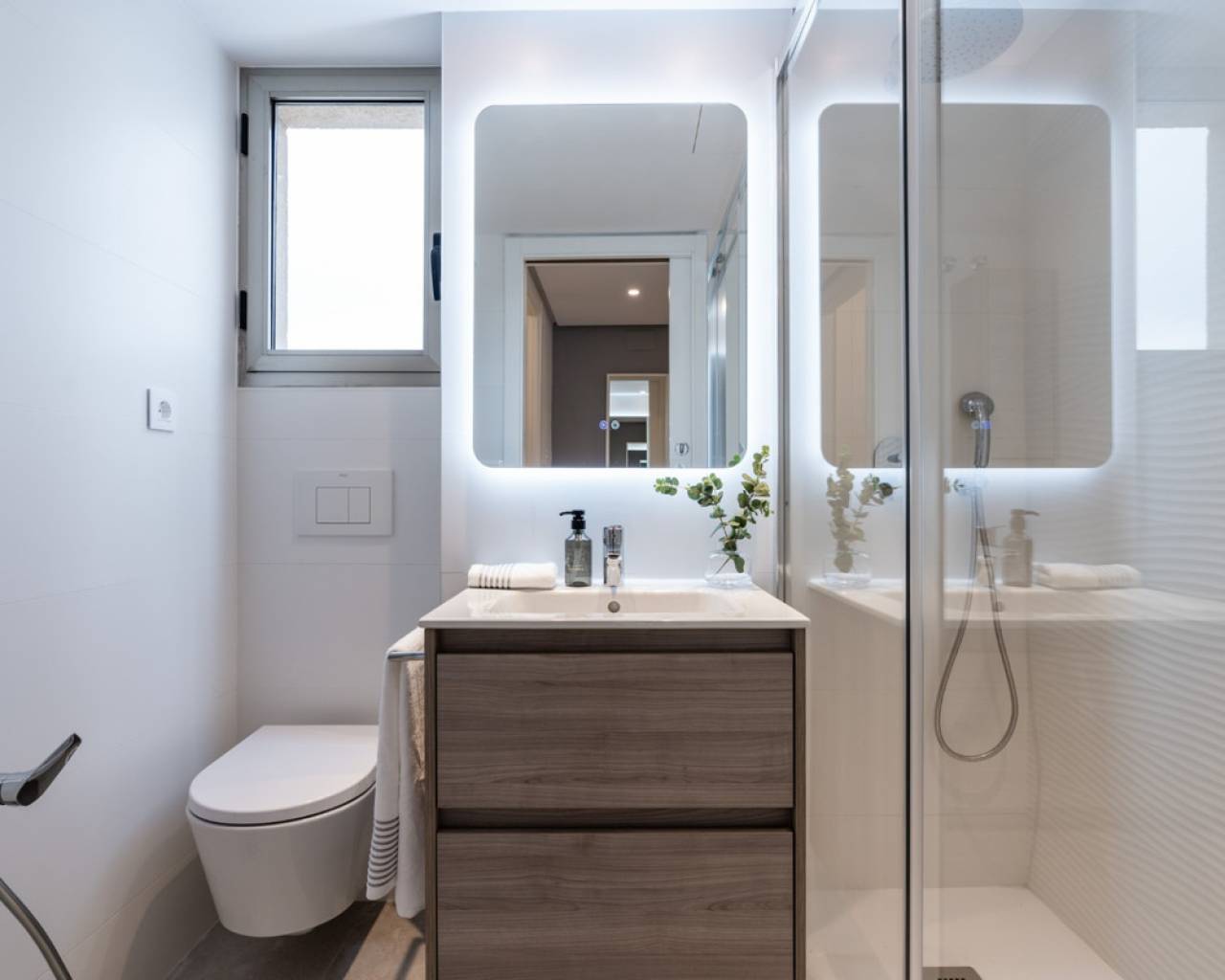 Atico dúplex con vistas al mar en la playa de arena de La Fossa, en Calpe. Gran terraza en la azotea, varios dormitorios, piscina y jacuzzi. Este ático se encuentra en primera línea de costa en Calpe, a solo unos pasos de la playa de arena de La Fossa. En las inmediaciones hay restaurantes, bares y servicios. Los grandes supermercados están a 400 metros. El edificio tiene 10 plantas, está equipado con ascensor y es totalmente accesible para sillas de ruedas. Los residentes pueden hacer uso de una piscina comunitaria, una piscina infantil y un jacuzzi. Descripción El ático se distribuye en dos plantas. En la planta baja hay un vestíbulo, dos dormitorios y dos baños, uno de ellos en suite. Ambos dormitorios dan acceso a una terraza cubierta. A través de la escalera interna se accede a la planta superior. Aquí se encuentran el salón-comedor, una cocina independiente, un dormitorio con vestidor y baño en suite, un aseo de invitados y la amplia terraza en la azotea. Desde esta terraza se disfruta de unas vistas panorámicas al mar Mediterráneo, al Peñón de Calpe y a las Salinas. El ático dispone de aire acondicionado frío/calor. Características Ático frente al mar en CalpeDos plantas con una distribución espaciosaDormitorios en suite + terrazas cubiertasGran azotea con vistas al marAire acondicionado frío/calorAscensorAccesible para sillas de ruedasPiscina, piscina infantil y jacuzziPor qué visitar este ático Ubicación única.Vistas al mar, al Peñón de Ifach y a las SalinasUna vivienda con una ubicación excepcional, justo en la playa y céntrica con respecto a los servicios. ¿Le gustaría visitar este ático? Concierte hoy mismo una cita con uno de nuestros agentes. Las fotos son de una vivienda piloto y muestran cómo quedará la vivienda tras la reforma.