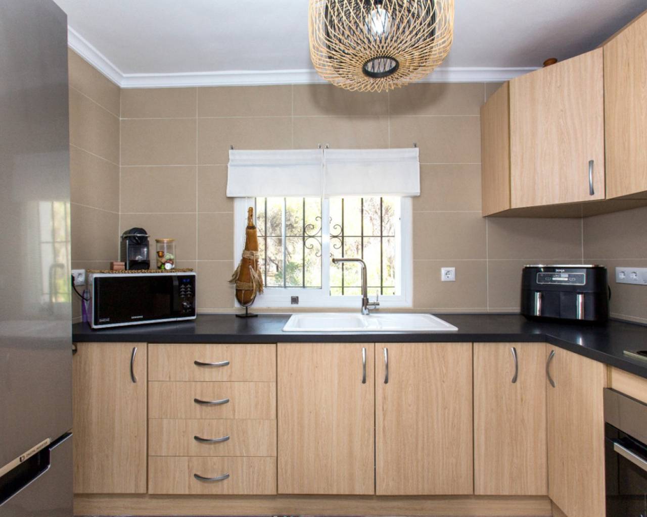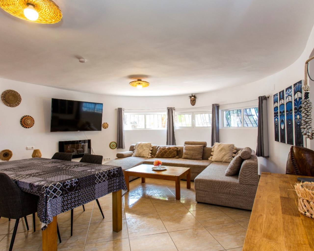Villa independiente con dos apartamentos separados, que se podrían unir, en venta en Benissa, en una amplia parcela llana, a poca distancia del mar En una tranquila zona residencial, justo al lado de un bosque privado con mucha paz y tranquilidad y con una orientación abierta al suroeste, se encuentra esta vivienda independiente a solo 700 metros del mar Mediterráneo y calas. Idealmente situado entre Calpe y Moraira. La vivienda fue construida originalmente en 1977, pero ha sido completamente renovada en 2022 y equipada con comodidades modernas. Descripción Esta vivienda se distribuye en dos plantas, conectadas por una escaleras exteriores. La planta superior cuenta con un amplio salón con chimenea, un comedor que da acceso a una agradable terraza con vistas al mar, una cocina totalmente equipada, dos dormitorios dobles y un cuarto de baño. En la planta baja hay un salón con comedor, una amplia cocina totalmente equipada, dos dormitorios dobles (uno de ellos con chimenea), un cuarto de baño, un aseo independiente y un lavadero con acceso al exterior. En el exterior, la parcela cuenta con una piscina de 8x4 metros automatizada con agua salada con terraza, un jacuzzi, ducha exterior caliente/frio, una cocina de verano con una terraza cubierta de 37m2 frente la piscina y varias zonas de descanso acogedoras. Hay una dependencia climatizada de 20m2 ideal para una oficina o pequeño gimnasio. El jardín es verde y fácil de mantener, con árboles frutales y otras plantas, con una iluminación nocturna muy bonita. La vivienda dispone de una cochera, una puerta de acceso automática y un amplio trastero. Características A solo 700 metros del marOrientación suroeste con vistas despejadas y al marRenovada en 2022Aire acondicionado en todas las habitacionesDoble acristalamiento, mosquiteras y persianasFibra ópticaLicencia turística (la planta baja se destina actualmente al alquiler vacacional)Gran parcela llana con jardín, árboles frutales y zonas de descansoPor qué visitar esta villa La ubicación: tranquila y rodeada de vegetación.Lista para entrar a vivir.Apta para residencia permanente y alquiler vacacionalIdeal para disfrutar de la vida al aire libreLa villa es una combinación ideal de ubicación, comodidad y distribución, lista para entrar a vivir. Reserve hoy mismo una visita con uno de nuestros agentes.