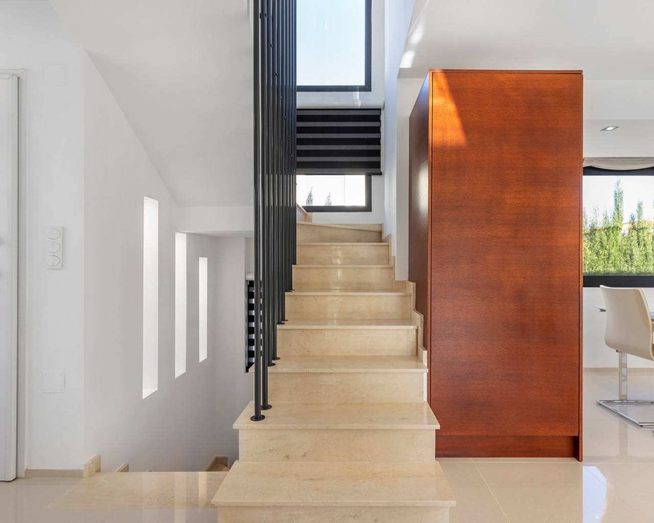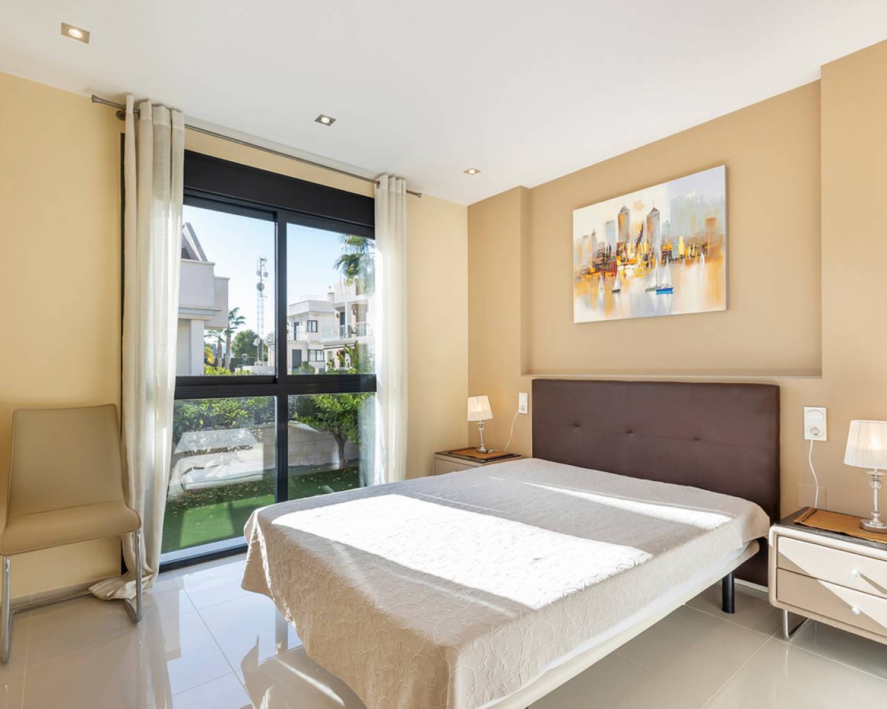 Villa de lujo en La Zenia, Orihuela Costa. Esta villa está situada en un residencial exclusivo y tiene su propia piscina privada y una parcela de 410m2. La vivienda cuenta con 250m2 construidos divididos en 4 plantas. En planta baja encontramos un amplio salón con cocina americana, 1 dormitorio, 1 baño y terraza con con salida a la piscina. En planta semi-sótano encontramos un salón con cocina americana, 2 dormitorios y 1 baño. Además esta planta cuenta con sauna y ducha. En planta primera encontramos 2 dormitorios, cada uno tiene uno baño en-suite y una amplia terraza. En la planta superior hay un amplio solarium de 46m2. La Zenia está cerca de Cabo Roig, Campoamor y Playa Flamenca. Se trata de una zona turística ubicada cerca de todos los servicios del famoso centro comercial La Zenia Boulevard. A pocos minutos de la N -332 y la autopista del Mediterráneo AP-7 en dirección Alicante y Cartagena. También existen alrededor de los campos de golf de Villamartín, Las Ramblas, Campoamor y Las Colinas.