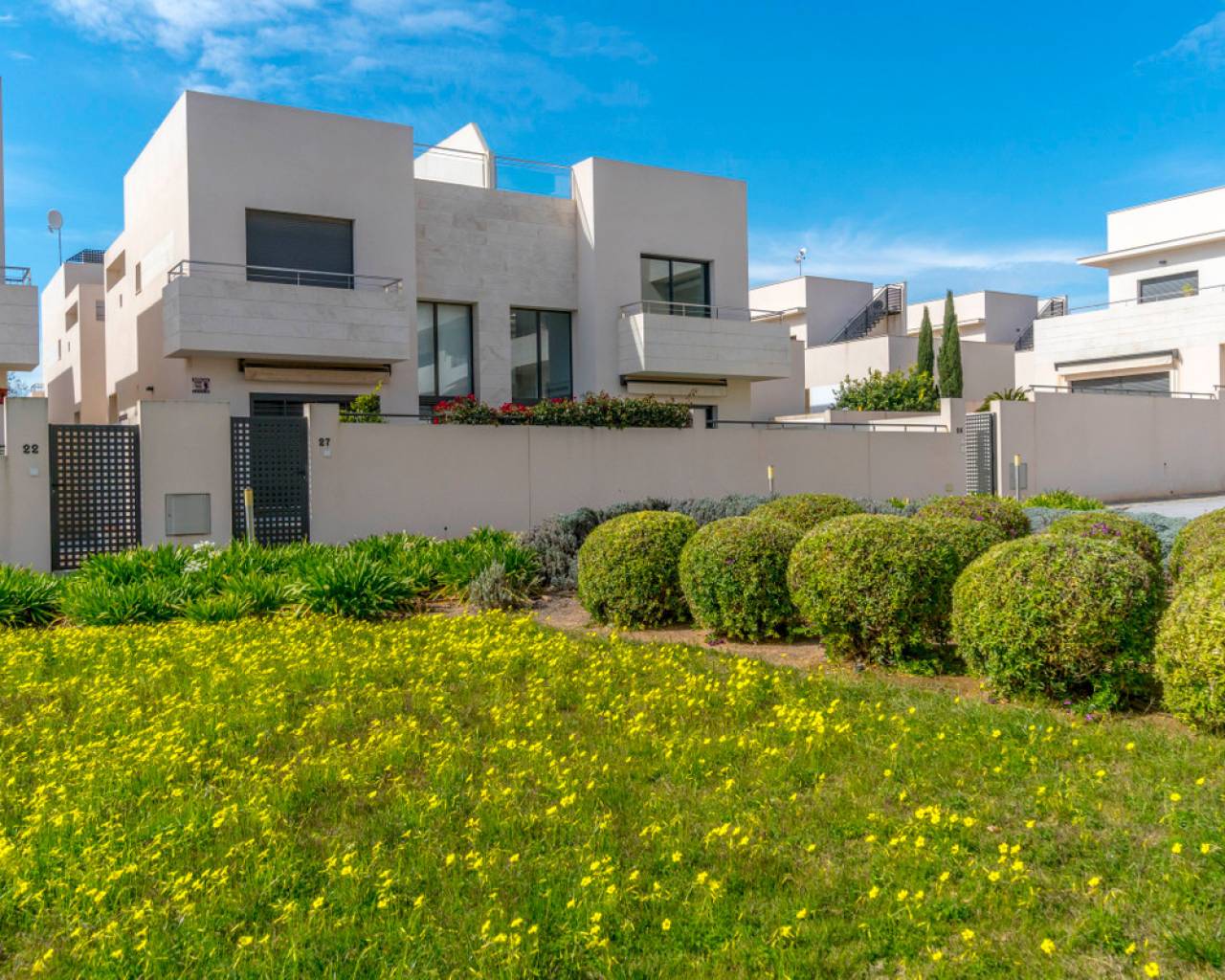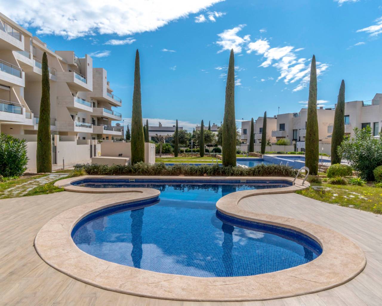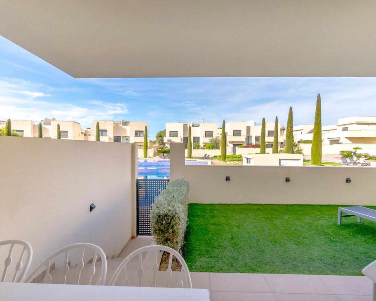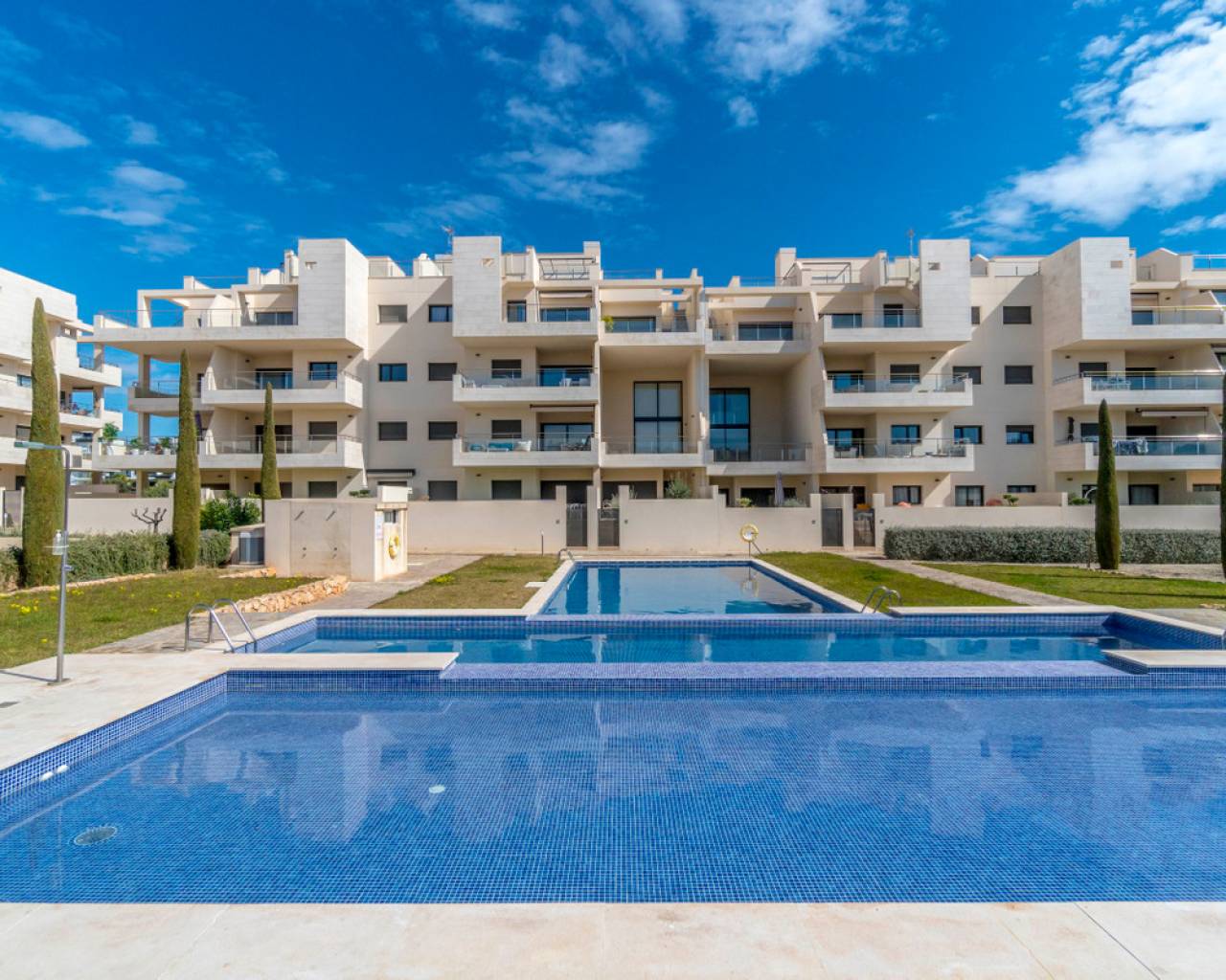 Moderno apartamento en Jardines de Montesolana, Orihuela Costa. Apartamento distribuido en dos habitaciones y dos baños. Dispone de un amplio salón-comedor con cocina americana y acceso directo al amplio jardín de 43m2 con vistas a las zonas comunes del residencial con orientación sur. Se encuentra en la urbanización de Jardines de Montesolana que dispone de piscina comunitaria y zonas ajardinadas. Este residencial se encuentra cerca del Centro Comercial La Zenia Boulevard (Orihuela Costa). La Zenia está cerca de Cabo Roig, Campoamor y Playa Flamenca. Se trata de una zona de cultivo, cerca de todas las comodidades y el famoso centro comercial La Zenia Boulevard. A pocos minutos de la N -332 y la autopista del Mediterráneo AP-7 en dirección Alicante y Cartagena. También existen alrededor de los campos de golf de Villamartín, Las Ramblas, Campoamor y Las Colinas.