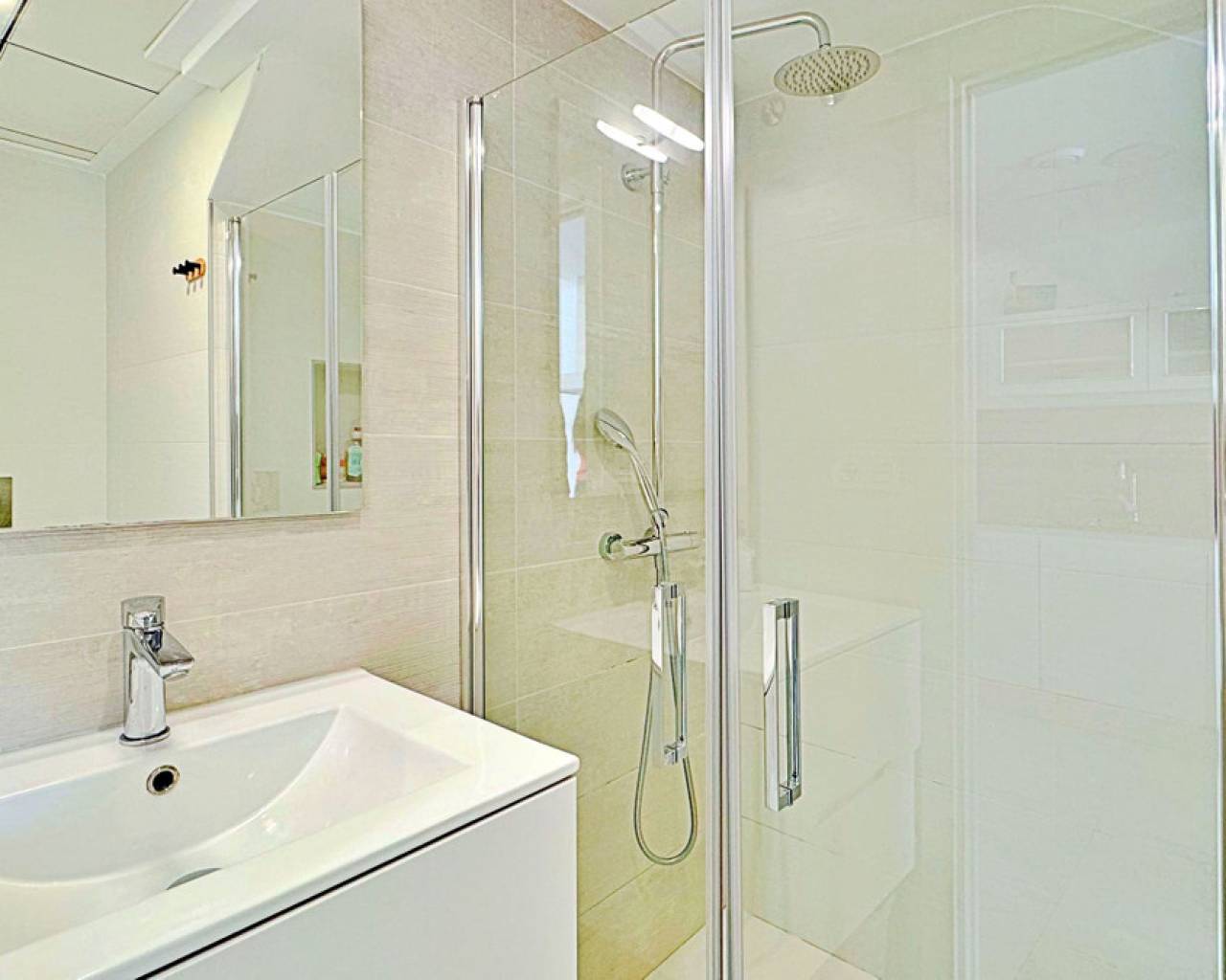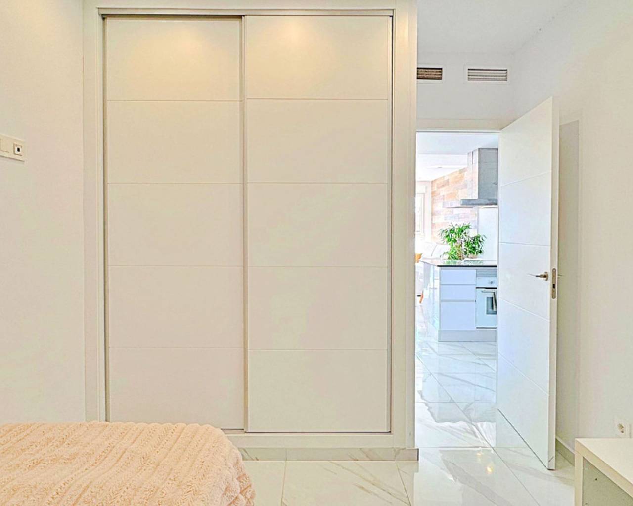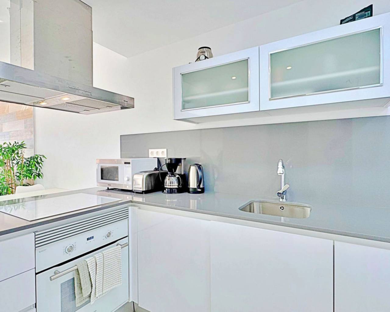 Este adosado dúplex de tres dormitorios y tres baños se encuentra en la exclusiva zona residencial de Los Balcones, en Torrevieja. La vivienda destaca por su diseño moderno, la luminosidad en cada estancia y sus amplias terrazas que permiten disfrutar del estilo de vida mediterráneo durante todo el año. En la planta baja, la vivienda dispone de un jardín privado de 22 m² con espacio para comedor exterior. El interior cuenta con un salón de concepto abierto, decorado con un elegante revestimiento en la pared principal, conectado a una cocina moderna totalmente equipada con electrodomésticos y barra americana. En esta planta también se sitúa un dormitorio con armario empotrado, actualmente adaptado como zona de trabajo, además de un baño completo con ducha. En la planta superior se encuentran dos dormitorios, ambos con armarios empotrados, siendo el principal muy luminoso y con acceso directo a una terraza privada con vistas a la urbanización y a la piscina. En esta planta se ubican también dos baños completos con acabados de alta calidad. La vivienda cuenta con un amplio solárium privado con vistas despejadas a la laguna de Torrevieja, equipado con zona chill-out, pérgola, barbacoa y tumbonas, perfecto para disfrutar de reuniones al aire libre o de la tranquilidad del entorno. El residencial ofrece amplias zonas comunes con piscina comunitaria de gran tamaño rodeada de palmeras y zonas verdes, lo que genera un ambiente ideal tanto para familias como para quienes buscan un entorno relajado. La urbanización de Los Balcones es una de las más consolidadas de Torrevieja, con todos los servicios al alcance: supermercados, colegios, farmacias, zonas deportivas y el Hospital Universitario de Torrevieja. Las playas de Punta Prima y Torrevieja se encuentran a menos de 4 km, lo que convierte esta propiedad en una excelente opción tanto como residencia permanente como para inversión vacacional.
