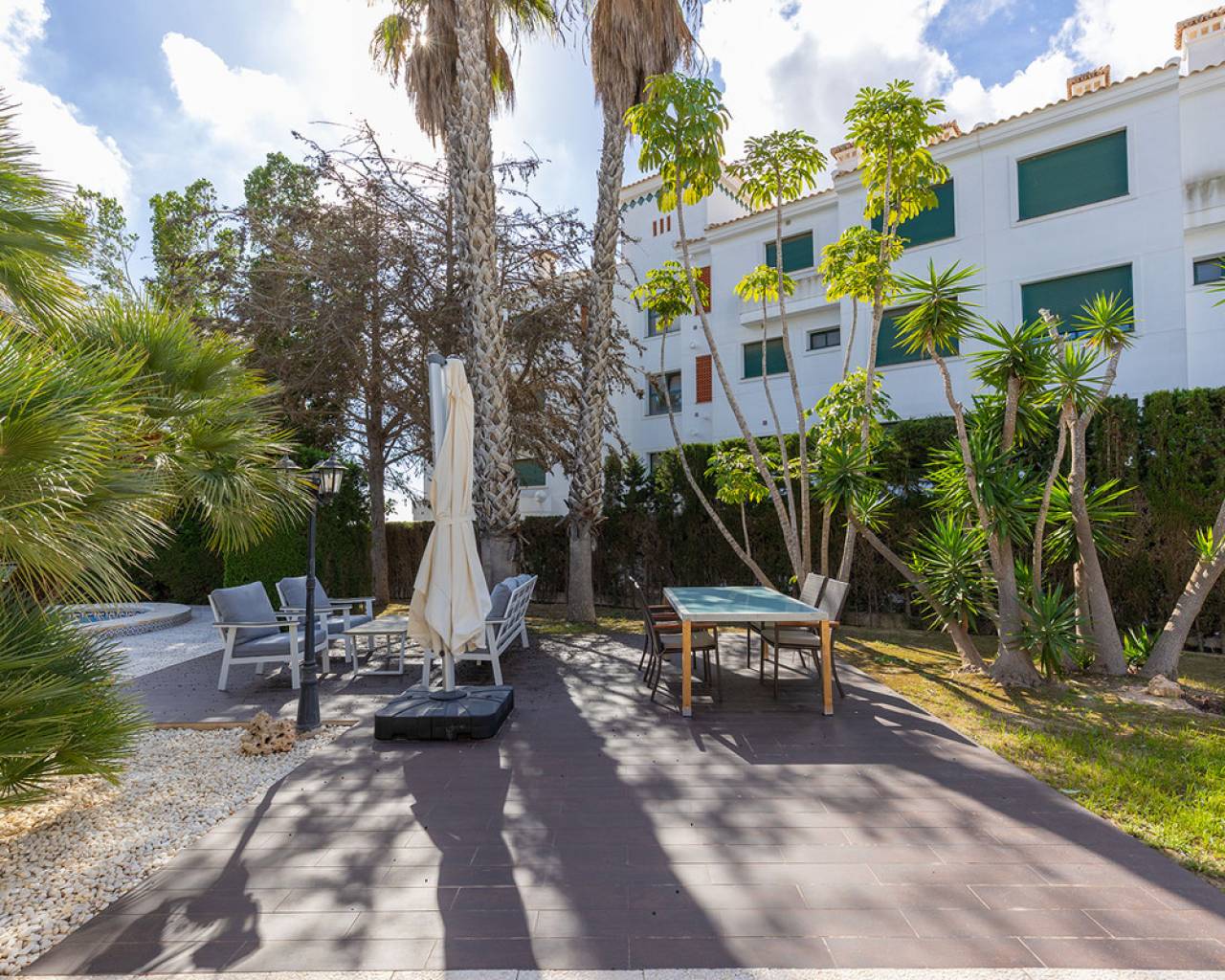 Magnífico chalet independiente en Las Filipinas (urb. Villamartín), situado sobre una amplia parcela de 1.510 m² que ofrece total privacidad y un entorno natural privilegiado. Con 366 m² construidos, esta vivienda combina amplitud, comodidad y funcionalidad, distribuyéndose en cinco dormitorios, tres baños, un luminoso salón y un comedor independiente, ideales para una vida familiar confortable. La propiedad cuenta con garaje cerrado y trastero, además de una espectacular piscina privada orientada al sur que disfruta del sol durante todo el día. El jardín, cuidadosamente ajardinado, rodea la vivienda y crea un ambiente tranquilo y verde, perfecto para el relax o para disfrutar al aire libre. Entre sus características destacan la calefacción individual, amplios espacios interiores y exteriores, y una distribución pensada para el máximo confort. Ubicada a solo 4-5 km de las playas de la Costa Blanca Sur (unos 8-10 minutos en coche), esta vivienda se encuentra también muy cerca del centro comercial La Zenia Boulevard, con una gran variedad de tiendas, restaurantes y zonas de ocio. La urbanización está perfectamente comunicada con la autopista AP-7 y la carretera N-332. En las inmediaciones hay supermercados, bares, restaurantes y varios campos de golf, lo que convierte esta propiedad en una excelente opción de compra tanto para residencia habitual como para vacaciones o inversión.