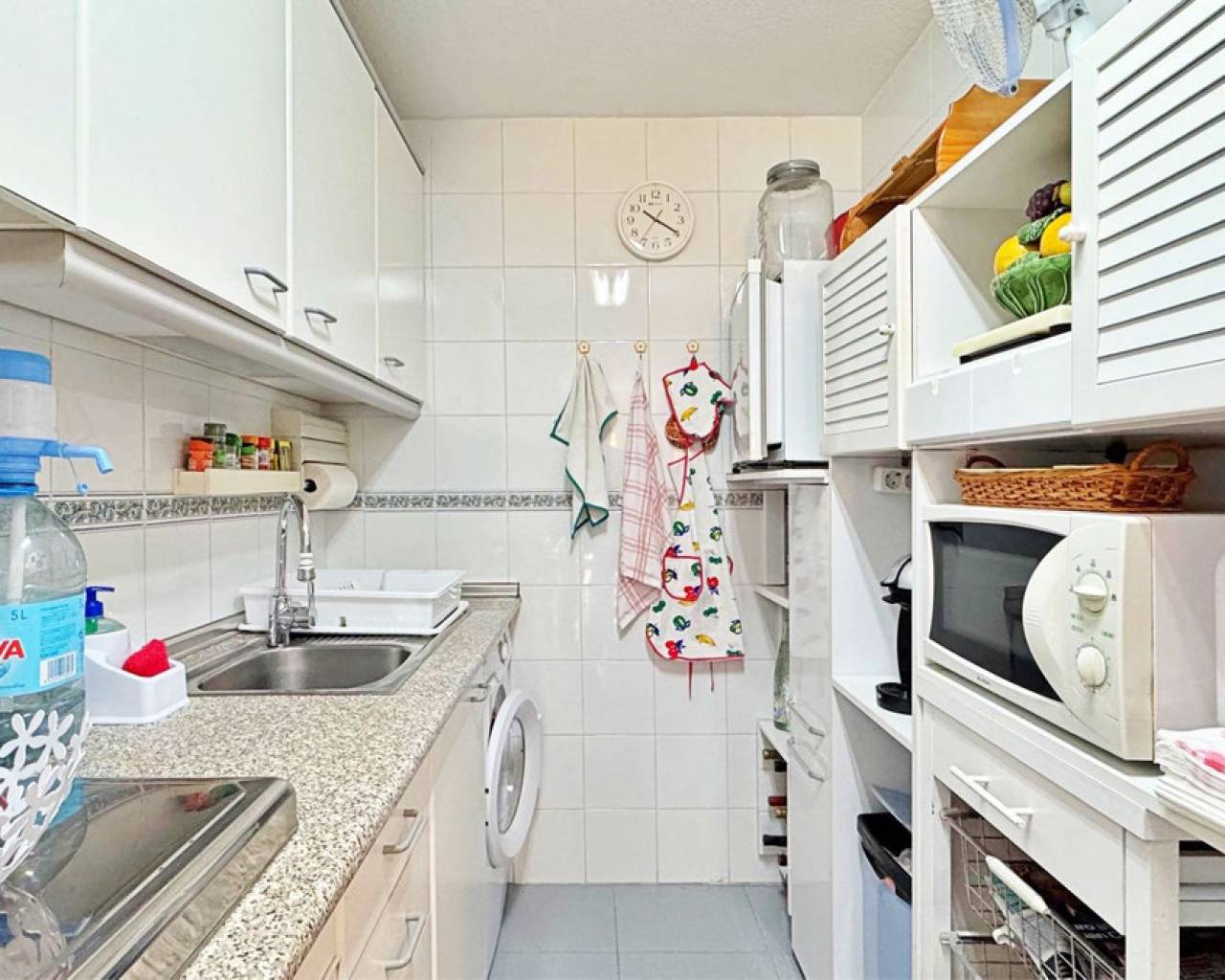 Apartamento en venta en Rocío del Mar, Torrevieja, situado en una exclusiva zona residencial junto a Punta Prima, a tan solo 200 metros del mar. Esta vivienda de 43 m² se encuentra dentro de una urbanización privada con piscina comunitaria y ofrece un ambiente tranquilo y familiar durante todo el año. El apartamento está en excelente estado de conservación y destaca por su orientación sur, que garantiza una luminosidad excepcional durante todo el día. Dispone de un acogedor salón comedor con salida a una terraza acristalada ideal para disfrutar del clima mediterráneo, cocina completamente equipada, un dormitorio doble con armario empotrado y un baño completo con bañera y ventilación natural. La terraza ofrece agradables vistas laterales al mar y espacio suficiente para colocar una mesa y varias sillas. Entre sus características adicionales se incluyen aire acondicionado en el salón, toldos instalados, suelos de plaqueta, edificio con ascensor y acceso adaptado. La vivienda se entrega lista para entrar a vivir. La urbanización cuenta con una amplia piscina comunitaria rodeada de zonas de descanso, en un entorno seguro y cuidado. Su ubicación es inmejorable, a pocos pasos del mar y muy cerca de todos los servicios como supermercados, restaurantes, transporte público y zonas de ocio. Este apartamento en Rocío del Mar es una excelente oportunidad de compra tanto para residencia habitual como para disfrutarlo como vivienda vacacional o como inversión con alta rentabilidad en una de las zonas más demandadas de la costa de Torrevieja.