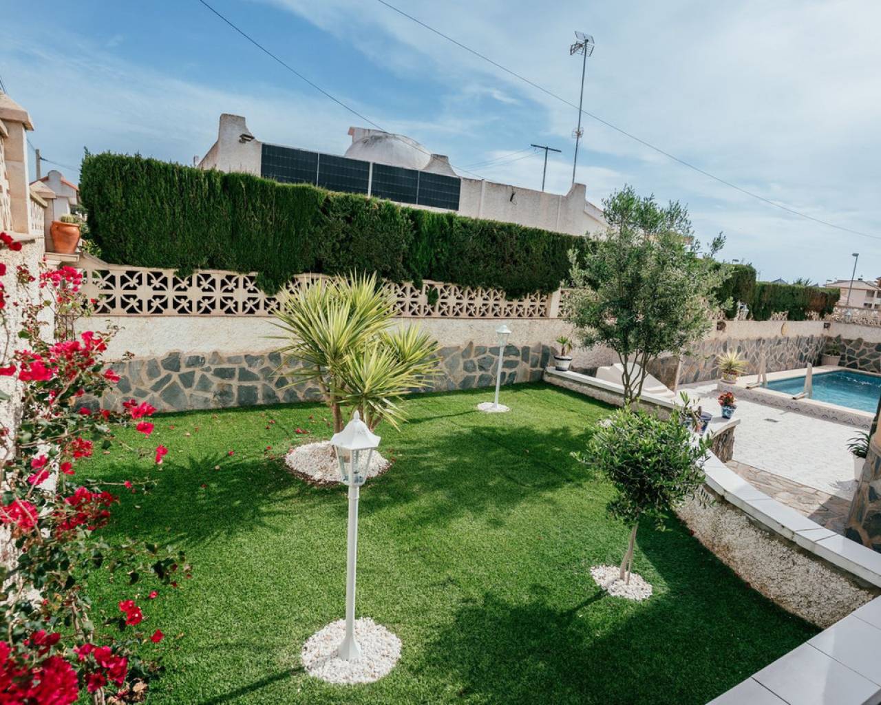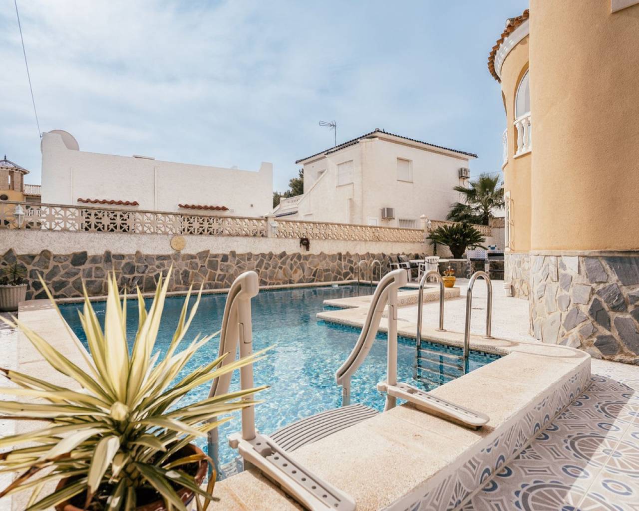Casa Española de Estilo Cachemir en un Distrito Exclusivo de Villas Ubicada en un distrito exclusivo de villas, esta casa española de estilo Cachemir se encuentra entre tres campos de golf, a solo 10 minutos en coche de la playa. Ofrece una combinación única de lujo y tranquilidad, estando cerca de centros de servicios pero lo suficientemente alejada para disfrutar de la paz y el silencio en su calle. La casa es luminosa y espaciosa, con tres dormitorios y dos baños en la primera planta. Además, en la planta inferior, hay una gran sala de juegos/sala de estar, un dormitorio adicional y un baño. Esta configuración es ideal para familias grandes o grupos de amigos que buscan un lugar cómodo para relajarse. La propiedad cuenta con una piscina bien cuidada, que es más grande que las piscinas estándar, un área de barbacoa y un jardín, perfecto para pasar noches de verano al aire libre. Todo el conjunto crea un oasis de paz y relajación. Las características más destacadas de esta propiedad son: -Ubicación: Situada entre tres campos de golf, a 6 km de la playa, con orientación noreste. -Espacio: Tres dormitorios y dos baños en la primera planta, un dormitorio y un baño adicionales abajo. -Sala de Juegos/Sala de Estar: Un espacio amplio para relajarse y entretenerse. -Piscina y Barbacoa: Una piscina bien cuidada y un área de barbacoa en la propiedad. -Ubicación: Cerca de centros de servicios pero tranquila y pacífica. Esta casa es una excelente opción tanto para aquellos que buscan un lugar lujoso para vivir como para inversores que desean generar ingresos a través de alquileres vacacionales.