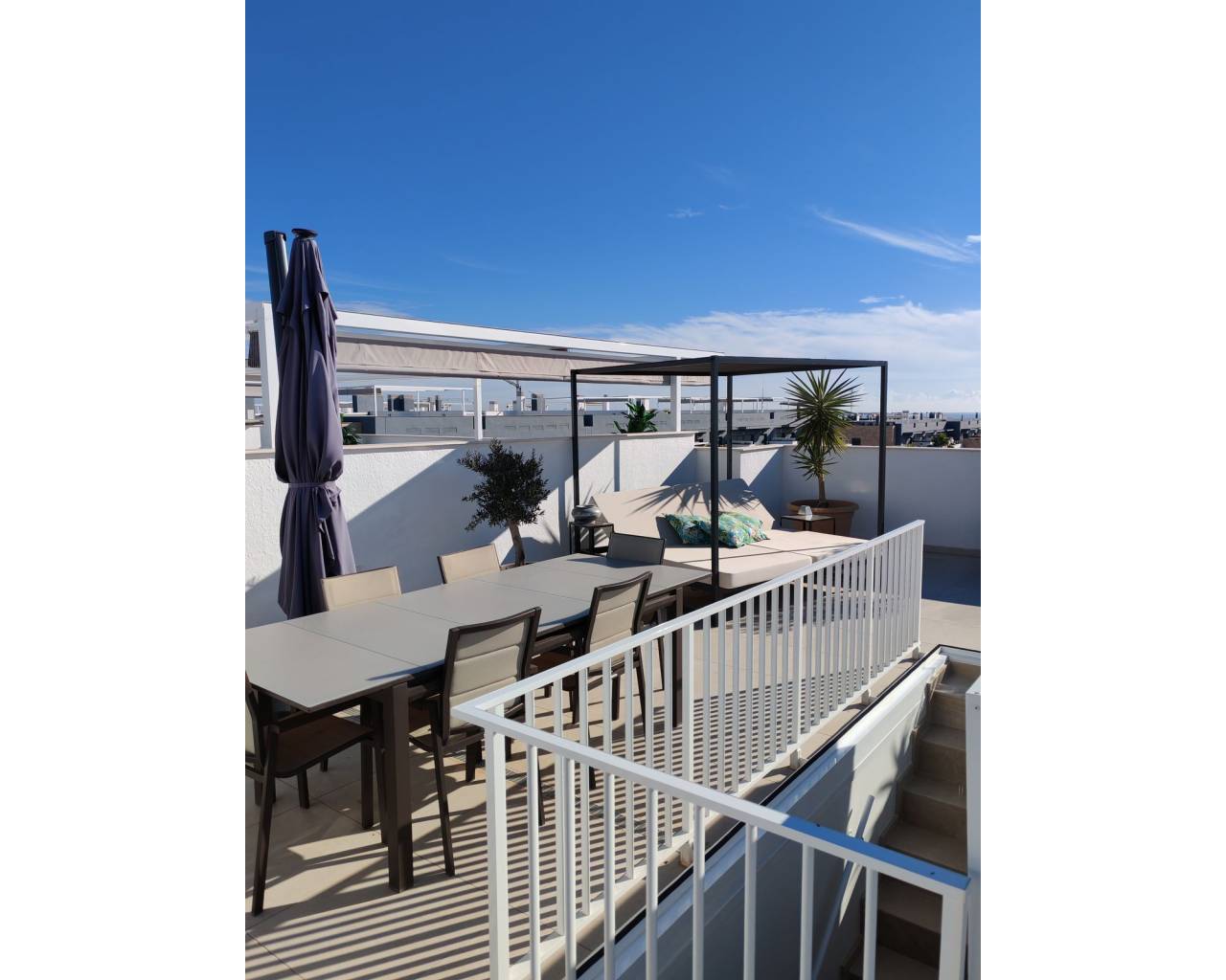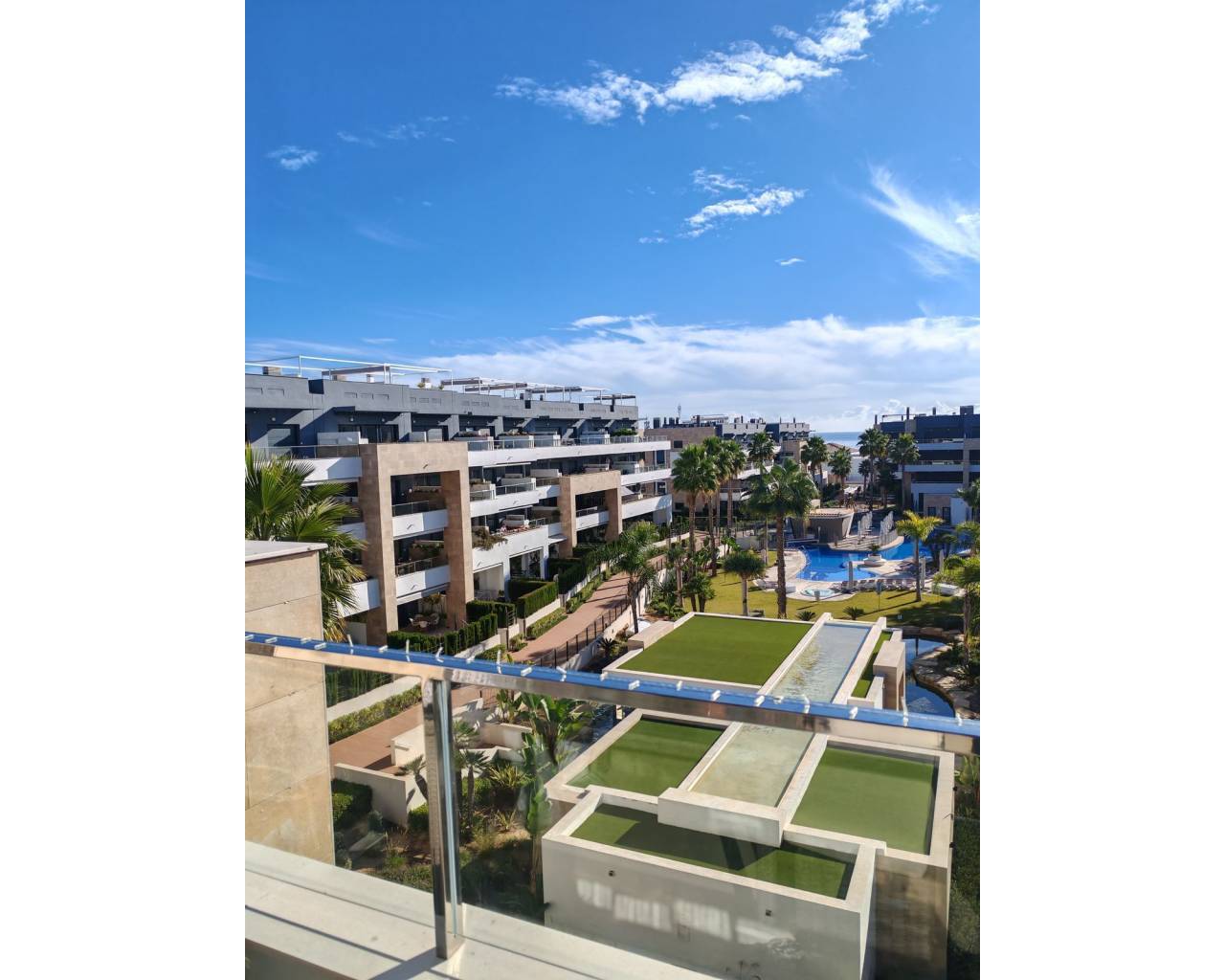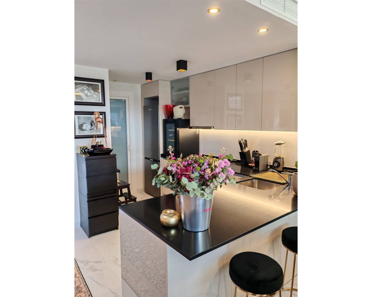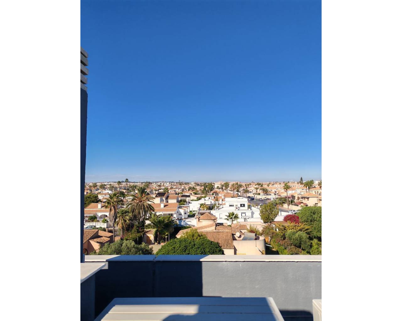 Dispone de 2 dormitorios y 2 baños, uno de ellos en suite. Amplio balcón con toldo y solárium privado con increíbles vistas al mar y a Orihuela Costa.
