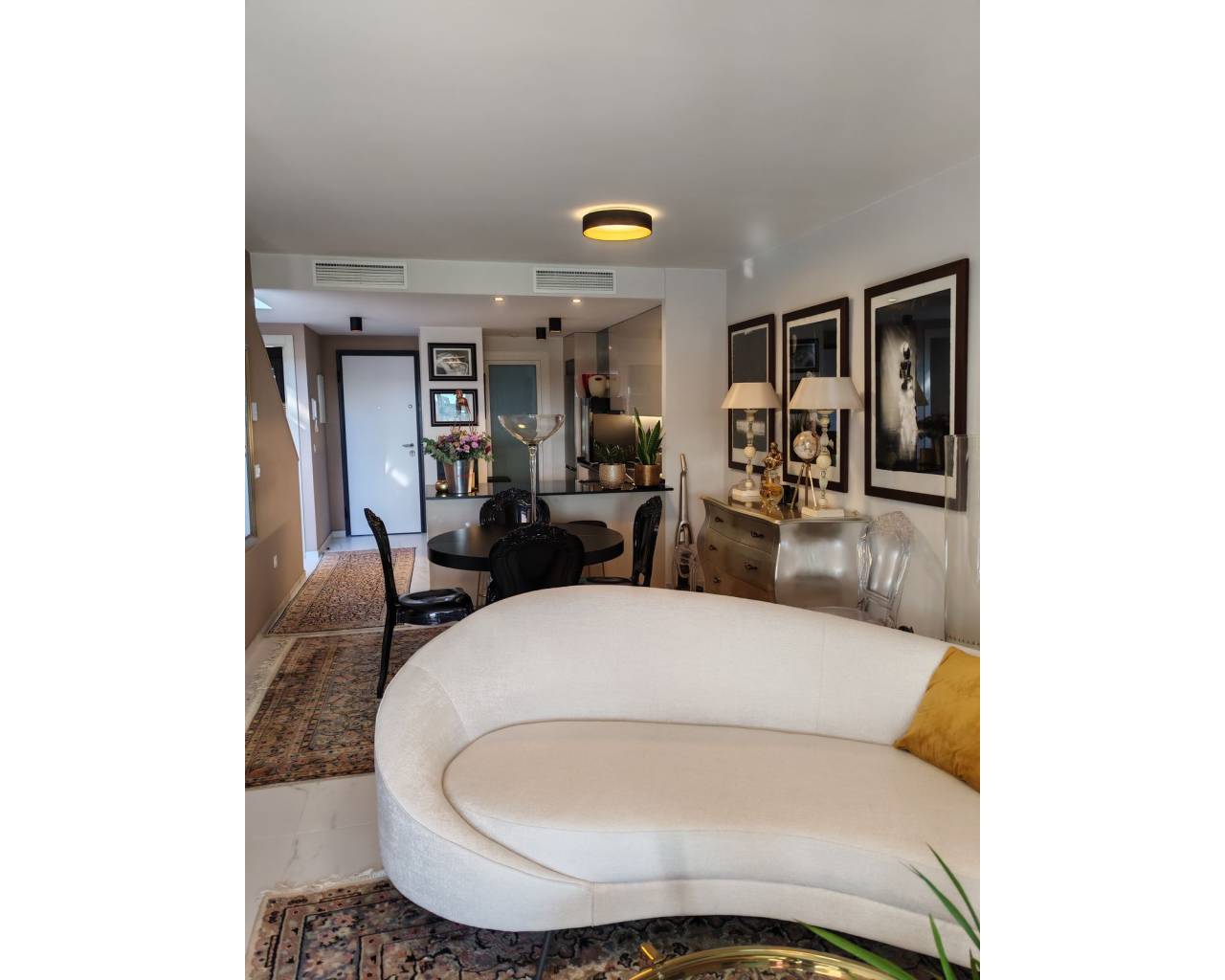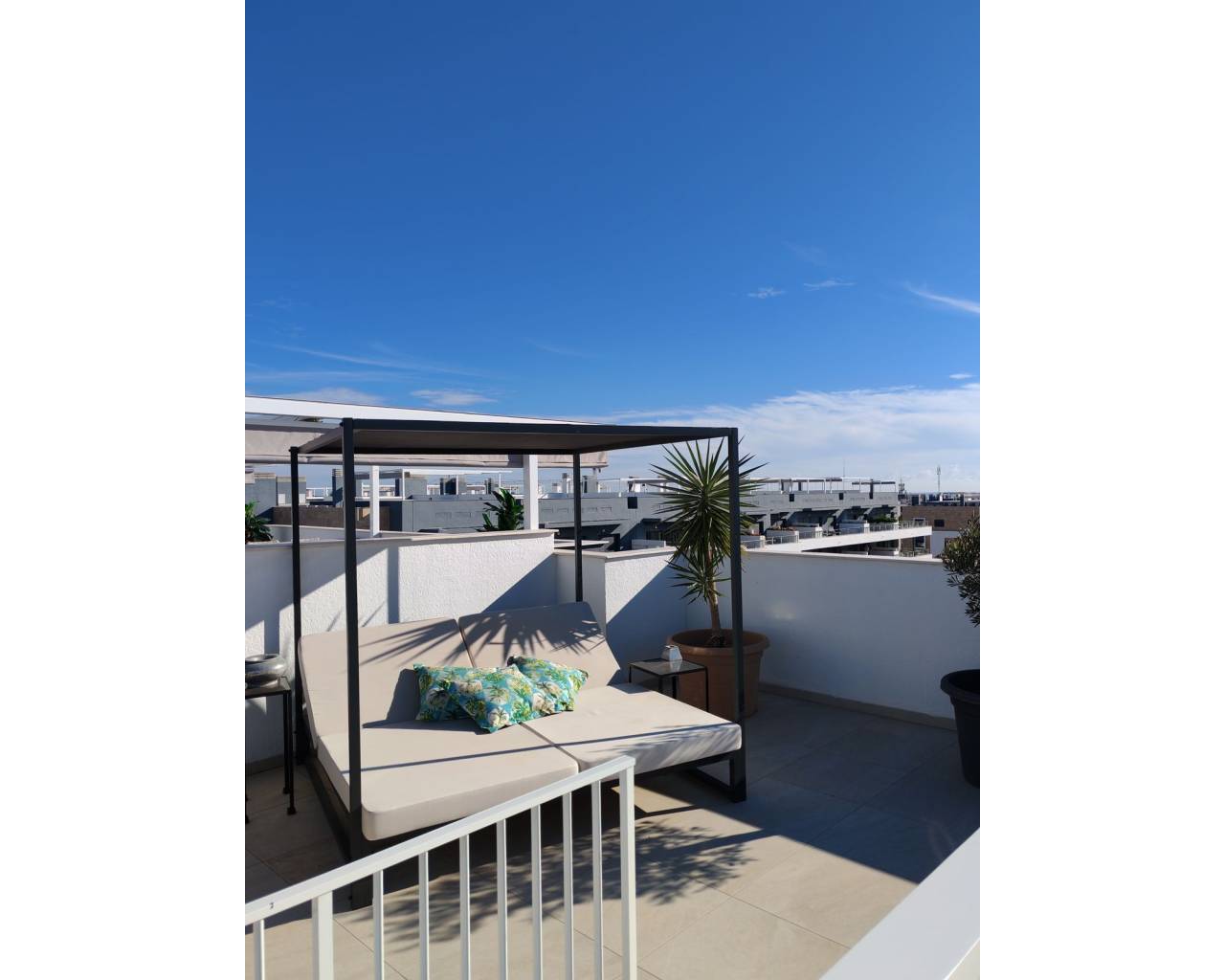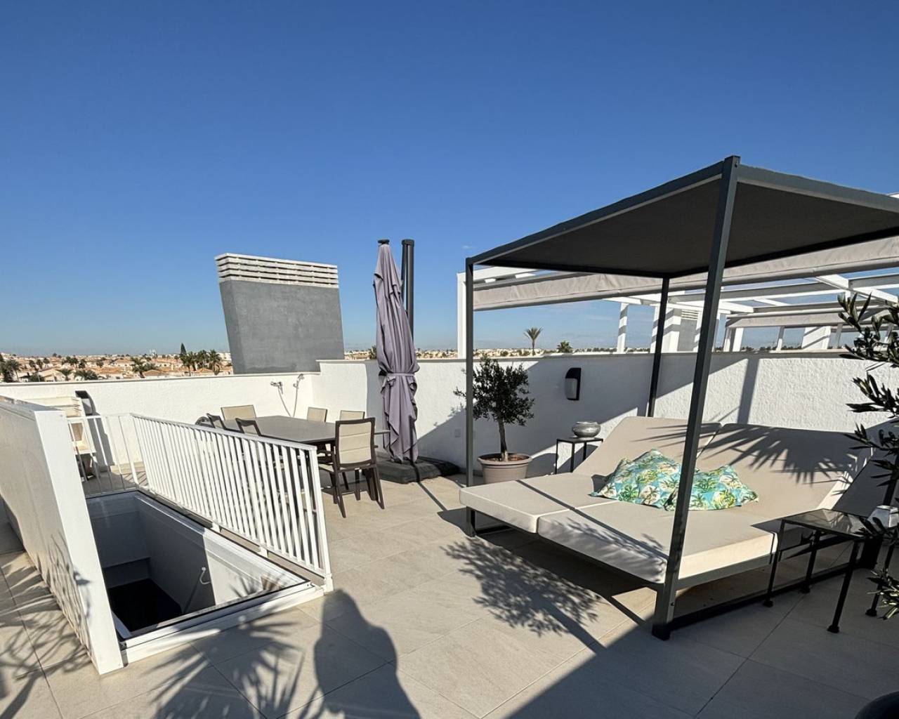 Dispone de 2 dormitorios y 2 baños, uno de ellos en suite. Amplio balcón con toldo y solárium privado con increíbles vistas al mar y a Orihuela Costa.