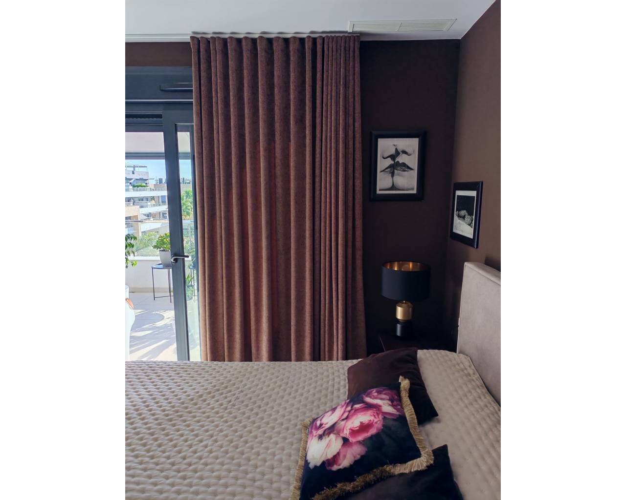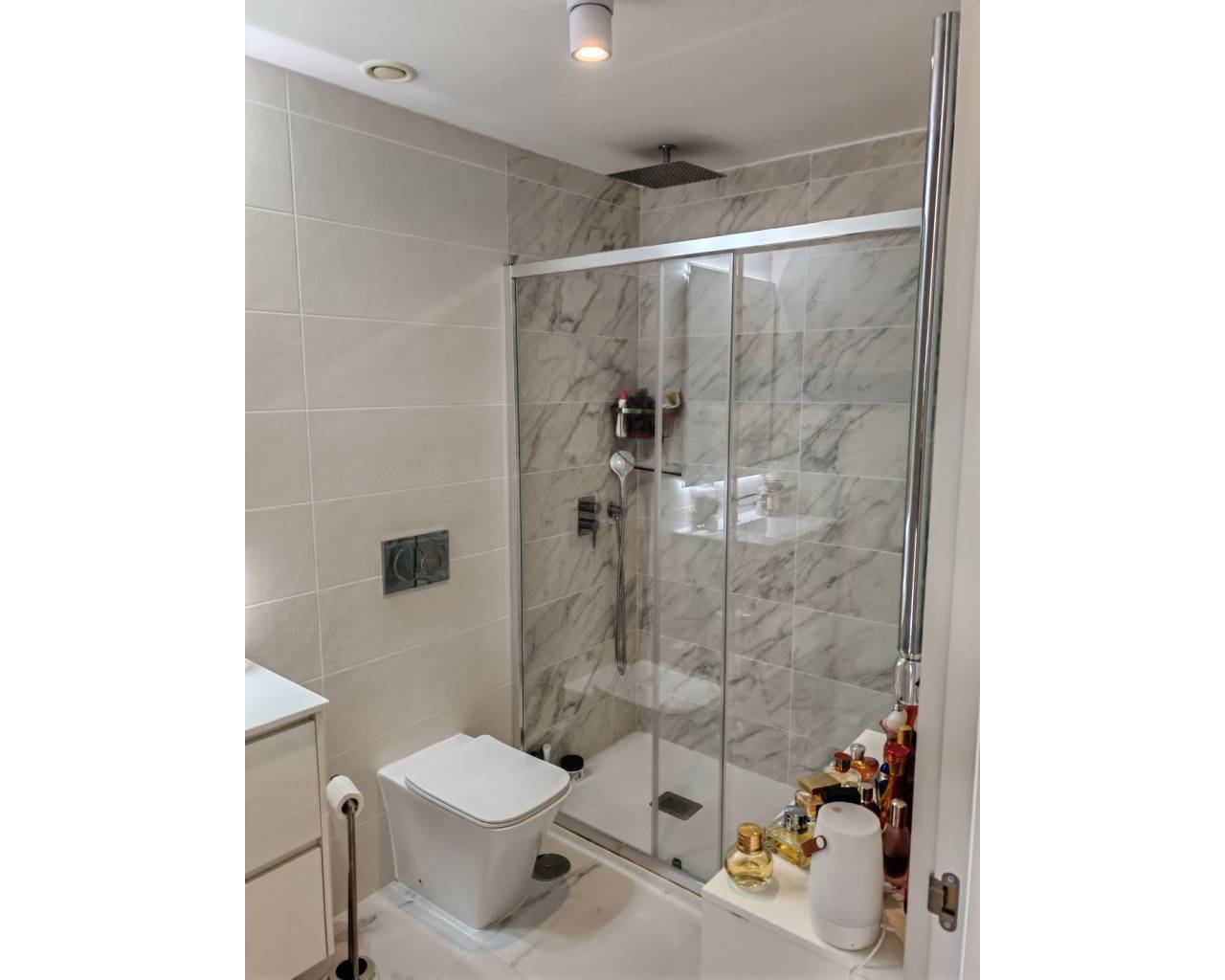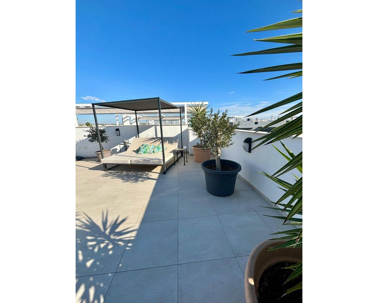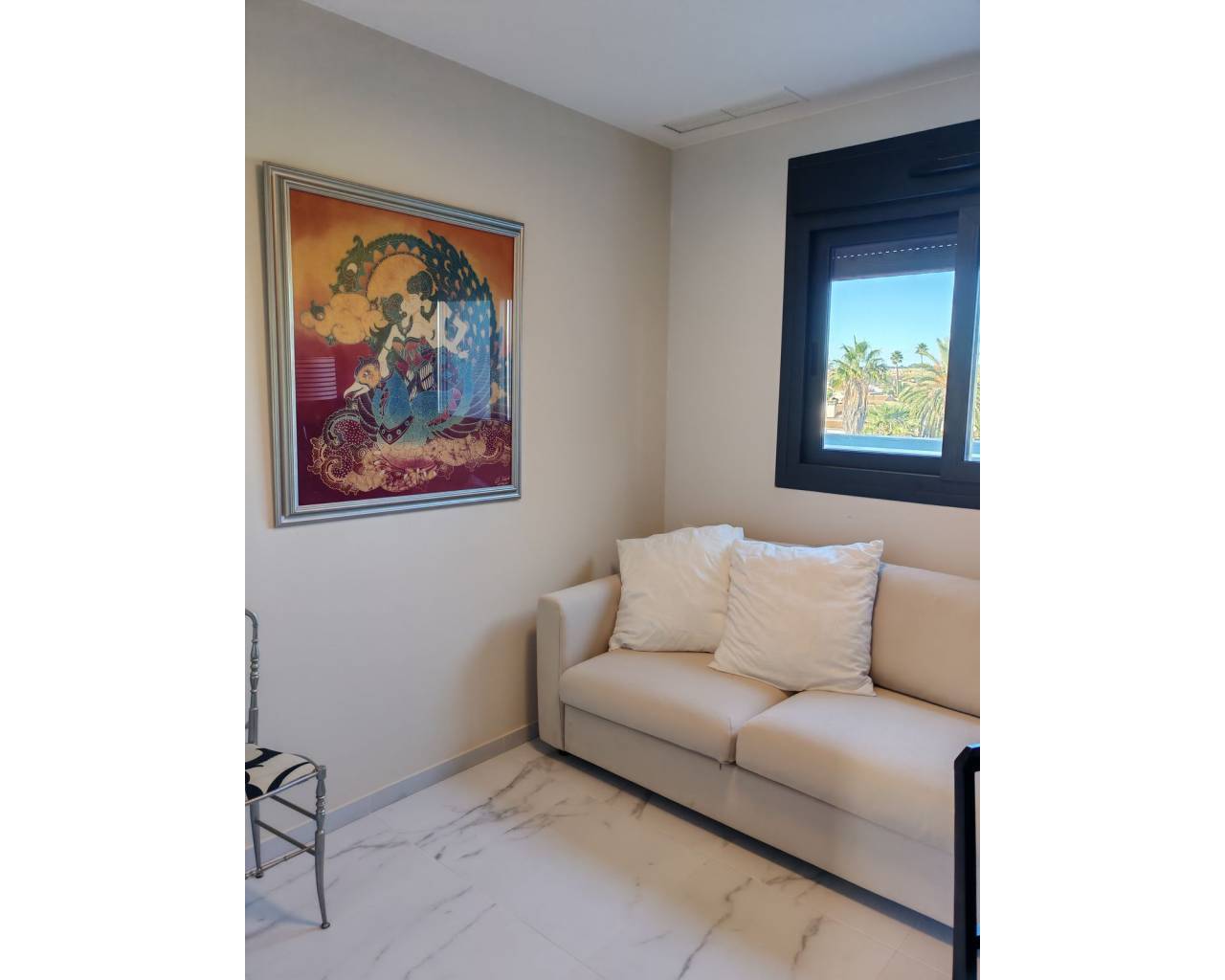 Dispone de 2 dormitorios y 2 baños, uno de ellos en suite. Amplio balcón con toldo y solárium privado con increíbles vistas al mar y a Orihuela Costa.