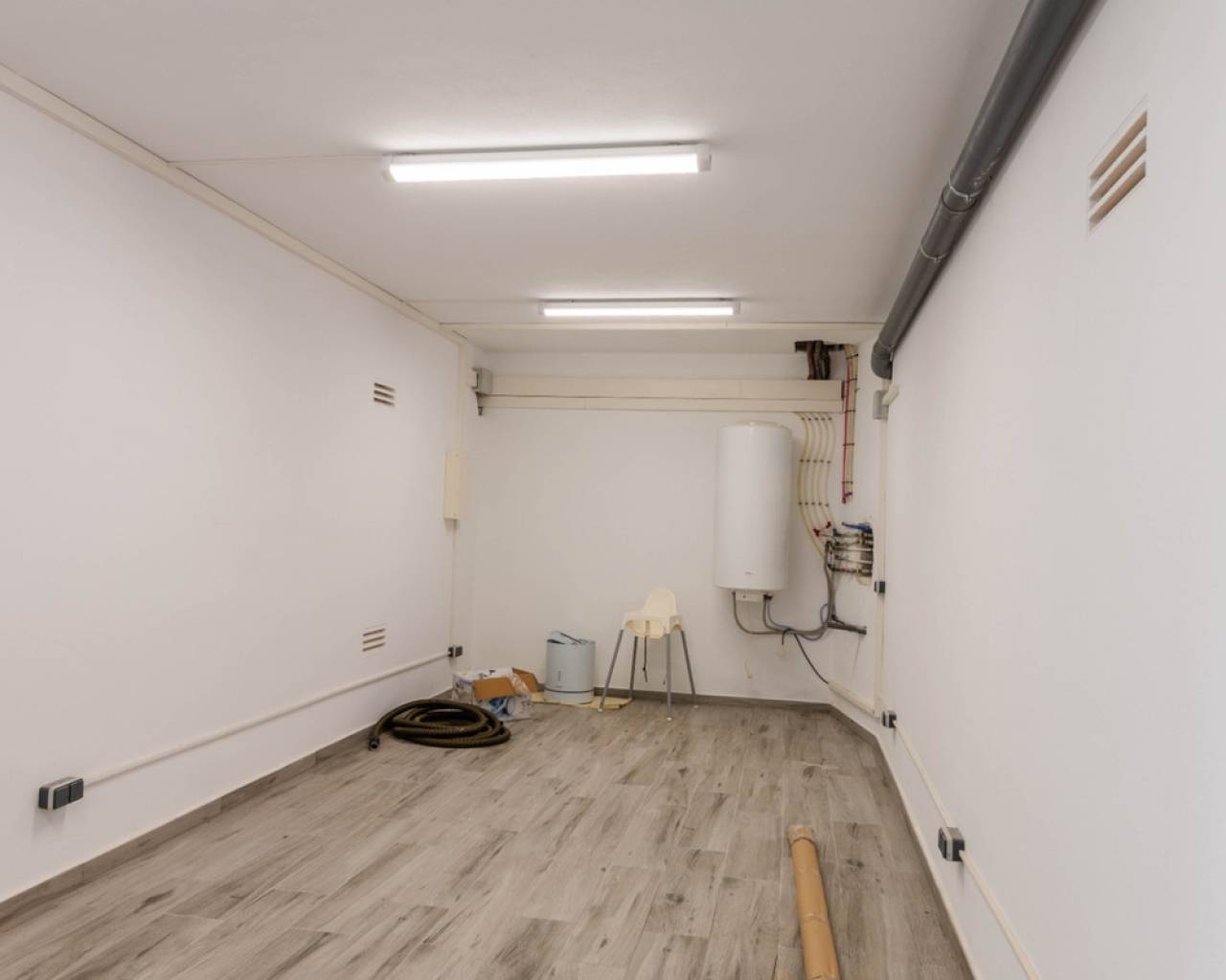 El chalet consta, en la planta baja: gran salón-comedor, cocina con lavadero contiguo y un aseo de invitados. Arriba hay 3 amplios dormitorios y 2 baños (uno ensuite). Todos los dormitorios tienen acceso a la gran azotea. Amplio sótano con garaje con puerta eléctrica. Calefacción mediante bomba de calor y energía solar. Sistema de aire acondicionado central.