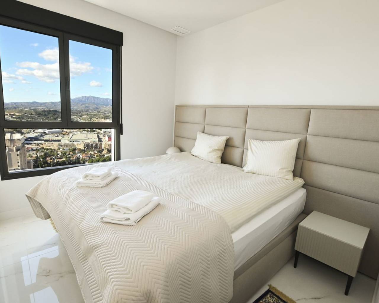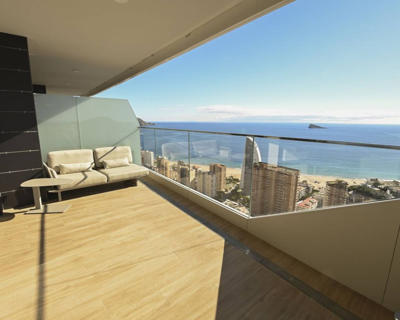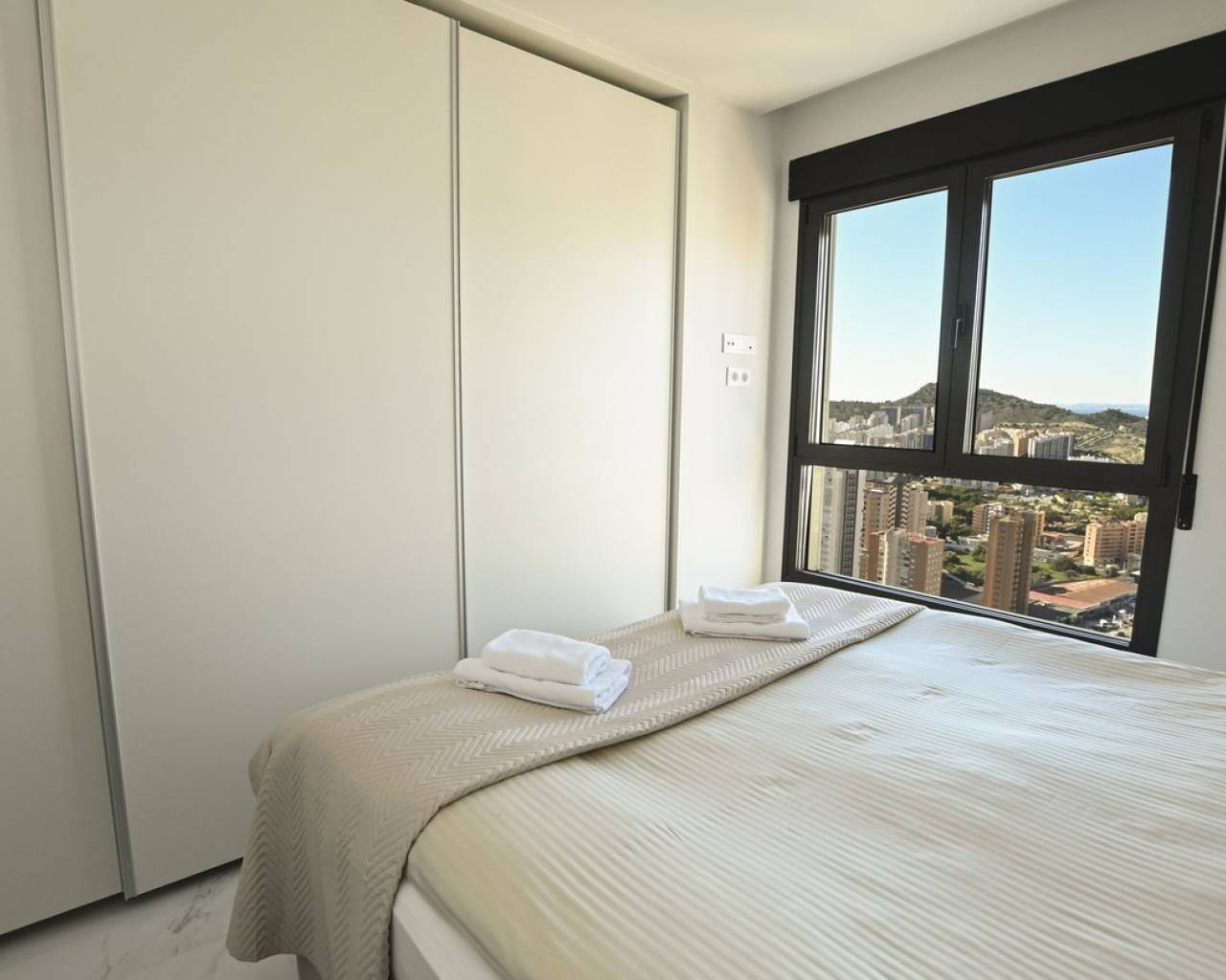Piso de lujo con vistas al mar en la planta 28 de Benidorm. ¡Una oferta única para los amantes del diseño moderno y el confort! Eche un vistazo a este moderno piso de 102,21 m² situado en la planta 28 de una prestigiosa torre acristalada, votada como la mejor promoción residencial de Europa en los International Property Awards 2024. El espacio se ha creado pensando en la comodidad, y el piso en sí impresiona por su distribución funcional y sus soluciones de lujo. La zona habitable alberga un amplio salón con zona de comedor conectado a una moderna cocina abierta con isla, tres elegantes dormitorios para mayor privacidad y comodidad, dos cuartos de baño en suite, decorados en un estilo contemporáneo, una terraza de 26,63 m² con impresionantes vistas al mar Mediterráneo y un práctico lavadero junto a la cocina. El precio de la vivienda también incluye una plaza de garaje de 13,5 m² y un lavadero de 4,62 m². El piso se terminó de construir a finales de 2023 y destaca por su aire acondicionado por conductos con bomba de calor y frío, instalación de aerotermia de alta eficiencia energética, doble acristalamiento con puente térmico y protección solar, cocina equipada con electrodomésticos Balay de alta gama, persianas eléctricas, videoportero y puerta de entrada antirrobo, armarios empotrados, suelos porcelánicos y elegante carpintería de madera. Un prestigioso complejo lleno de relax y actividad. La urbanización ofrece lujosas instalaciones que cumplirán las expectativas de los clientes más exigentes: Una piscina para adultos y niños, un spa y dos jacuzzis, Parque infantil y pista de atletismo, Pistas de pádel y una pista de petanca, Piscina climatizada y moderno gimnasio con vistas panorámicas al mar en la planta 26 del bloque. Ubicación excepcional - el corazón de Benidorm. La propiedad se encuentra a sólo 10 minutos a pie de la hermosa playa de Poniente. Benidorm ofrece excelentes condiciones climáticas durante todo el año, una amplia gama de atracciones como los campos de golf Sierra Cortina, parques de atracciones (Terra Mítica, Aqualandia, Mundomar), animados bares, casinos y centros comerciales con una oferta gastronómica internacional. Es una gran opción para familias, aquellos que buscan unas vacaciones de lujo e inversores que buscan invertir su capital en una propiedad del más alto nivel. Reserve su visita hoy mismo y descubra un piso único que combina modernidad, lujo y unas vistas incomparables del Mediterráneo.