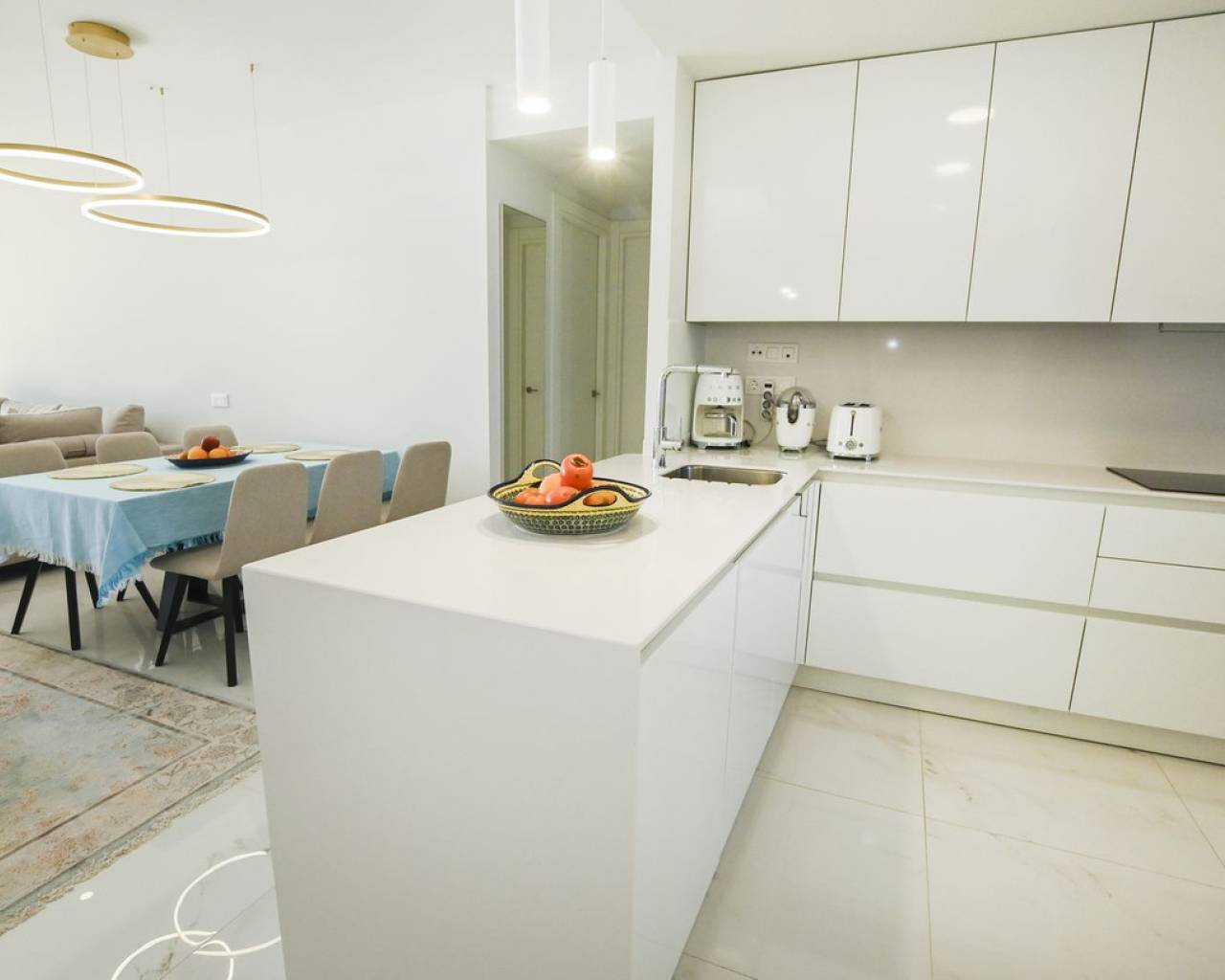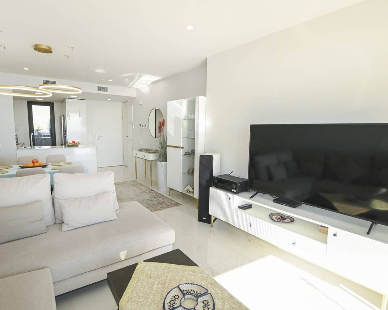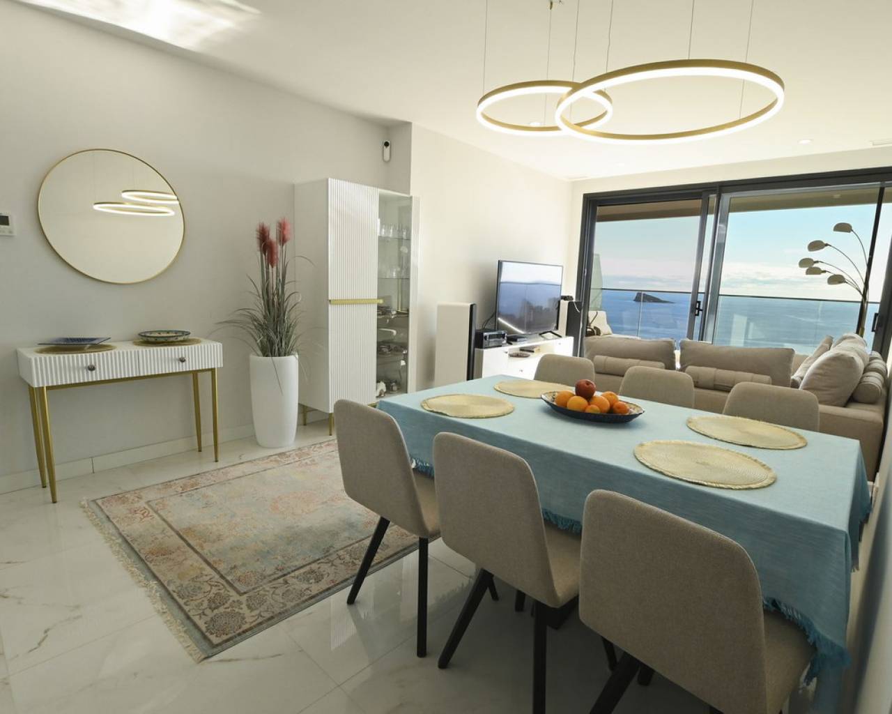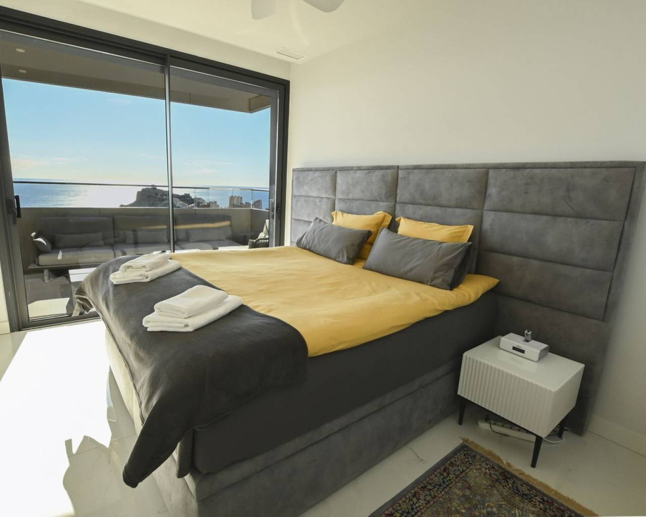 Piso de lujo con vistas al mar en la planta 28 de Benidorm. ¡Una oferta única para los amantes del diseño moderno y el confort! Eche un vistazo a este moderno piso de 102,21 m² situado en la planta 28 de una prestigiosa torre acristalada, votada como la mejor promoción residencial de Europa en los International Property Awards 2024. El espacio se ha creado pensando en la comodidad, y el piso en sí impresiona por su distribución funcional y sus soluciones de lujo. La zona habitable alberga un amplio salón con zona de comedor conectado a una moderna cocina abierta con isla, tres elegantes dormitorios para mayor privacidad y comodidad, dos cuartos de baño en suite, decorados en un estilo contemporáneo, una terraza de 26,63 m² con impresionantes vistas al mar Mediterráneo y un práctico lavadero junto a la cocina. El precio de la vivienda también incluye una plaza de garaje de 13,5 m² y un lavadero de 4,62 m². El piso se terminó de construir a finales de 2023 y destaca por su aire acondicionado por conductos con bomba de calor y frío, instalación de aerotermia de alta eficiencia energética, doble acristalamiento con puente térmico y protección solar, cocina equipada con electrodomésticos Balay de alta gama, persianas eléctricas, videoportero y puerta de entrada antirrobo, armarios empotrados, suelos porcelánicos y elegante carpintería de madera. Un prestigioso complejo lleno de relax y actividad. La urbanización ofrece lujosas instalaciones que cumplirán las expectativas de los clientes más exigentes: Una piscina para adultos y niños, un spa y dos jacuzzis, Parque infantil y pista de atletismo, Pistas de pádel y una pista de petanca, Piscina climatizada y moderno gimnasio con vistas panorámicas al mar en la planta 26 del bloque. Ubicación excepcional - el corazón de Benidorm. La propiedad se encuentra a sólo 10 minutos a pie de la hermosa playa de Poniente. Benidorm ofrece excelentes condiciones climáticas durante todo el año, una amplia gama de atracciones como los campos de golf Sierra Cortina, parques de atracciones (Terra Mítica, Aqualandia, Mundomar), animados bares, casinos y centros comerciales con una oferta gastronómica internacional. Es una gran opción para familias, aquellos que buscan unas vacaciones de lujo e inversores que buscan invertir su capital en una propiedad del más alto nivel. Reserve su visita hoy mismo y descubra un piso único que combina modernidad, lujo y unas vistas incomparables del Mediterráneo.